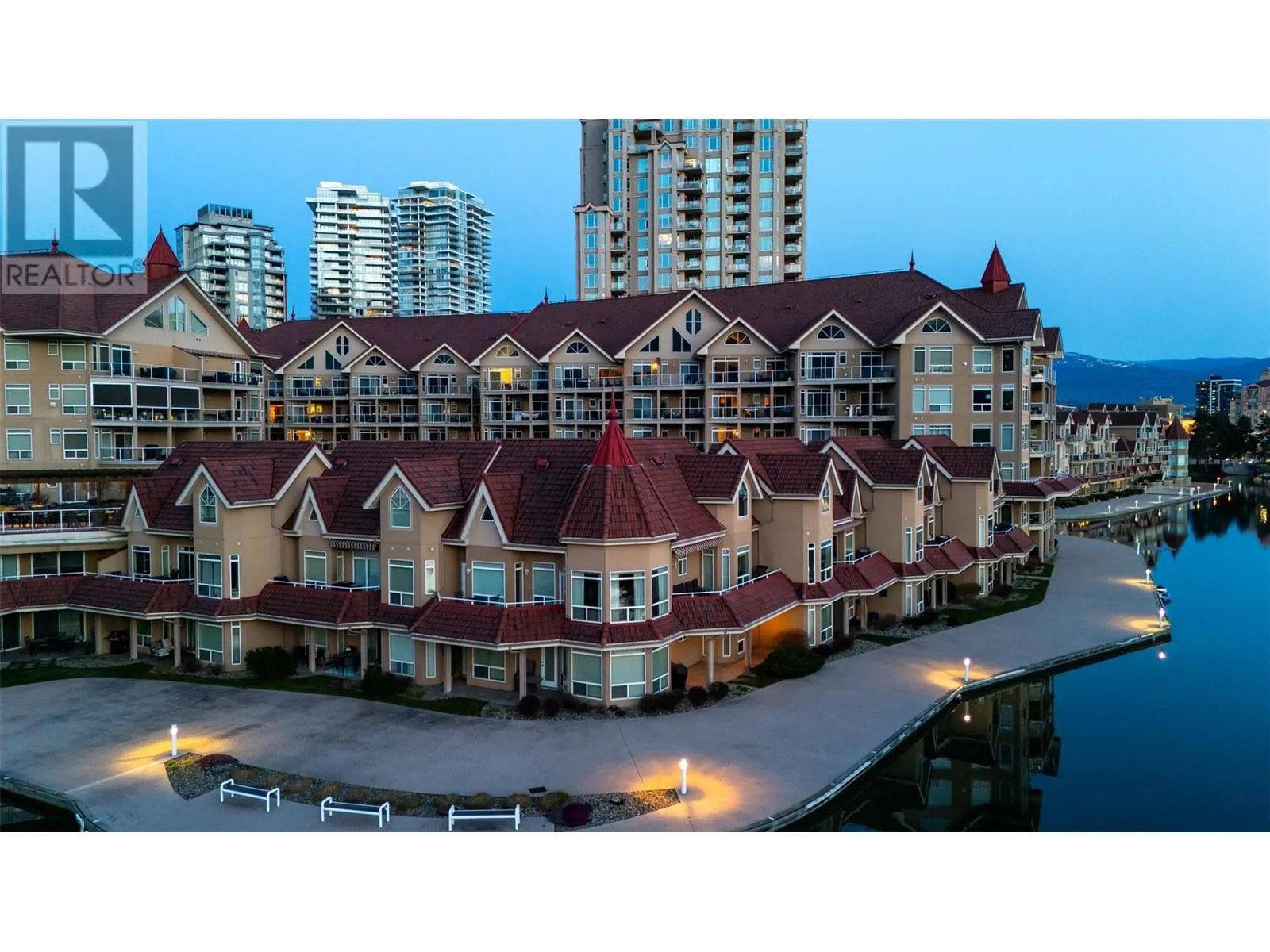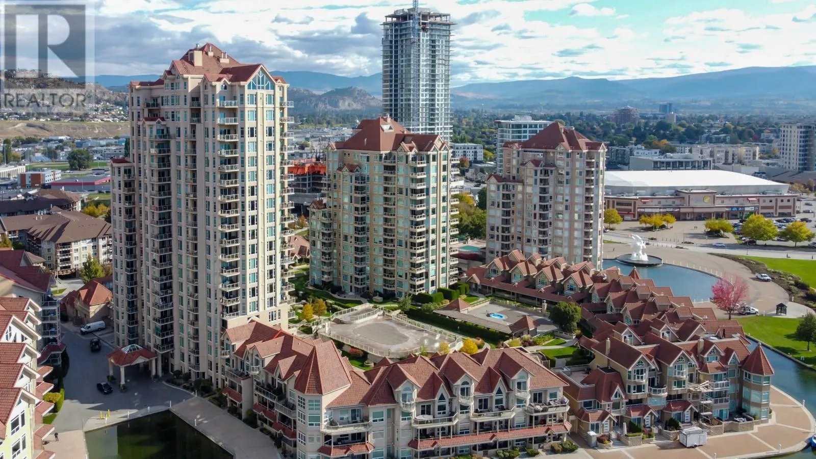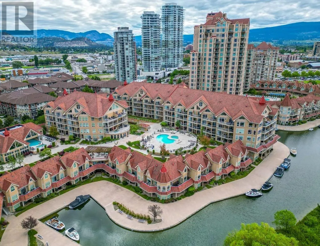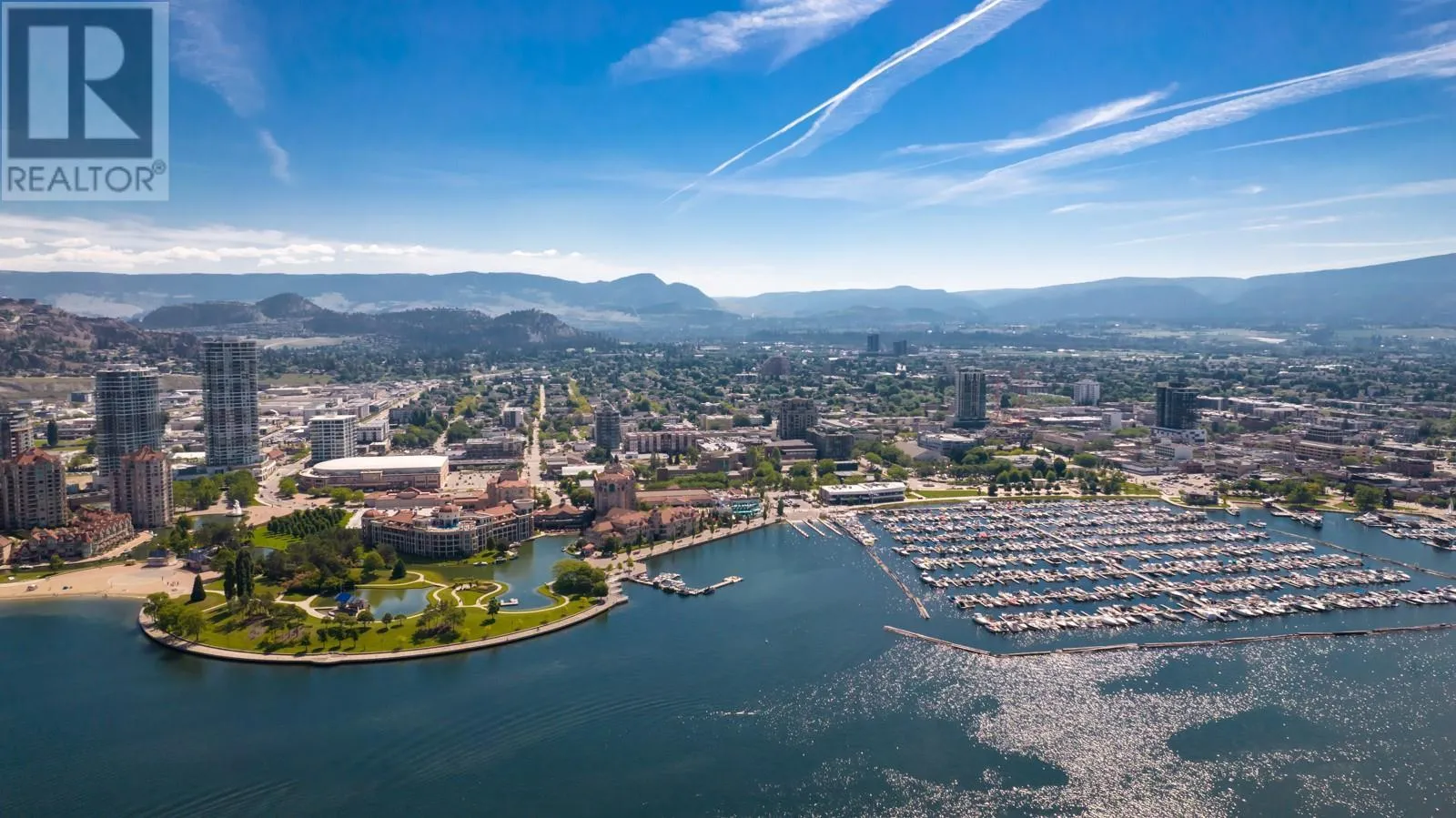 LOCATION, LOCATION, LOCATION! Experience the best of waterfront living in this beautifully appointed corner townhome in downtown Kelowna. Boasting unobstructed views of Okanagan Lake, the beach, and the bird sanctuary, this charming two-story residence offers privacy and luxury in an unbeatable location. Featuring an open concept design with soaring vaulted ceilings, this home includes three spacious bedrooms, with the primary suite conveniently located on the main level. Upstairs, you'll find two additional bedrooms, a den, and an award-winning bathroom, along with access to the pool, gym, and entertainment area. The stunning kitchen is finished with granite countertops, and the living spaces are enhanced with designer drapery. Step outside to two private balconies that overlook the lagoon, boardwalk, and sandy beaches - perfect for soaking in Okanagan sunsets. Two secured side by side parking stalls just steps from the entrance. Pet-friendly, this luxury townhome is a rare investment opportunity in one of Kelownaâs most desirable waterfront locations. Enjoy the vibrant downtown lifestyle, just moments from the cityâs best restaurants, breweries, and Knox Mountain. Donât miss this chance to own a waterfront oasis in the heart of Kelowna! (id:27476)