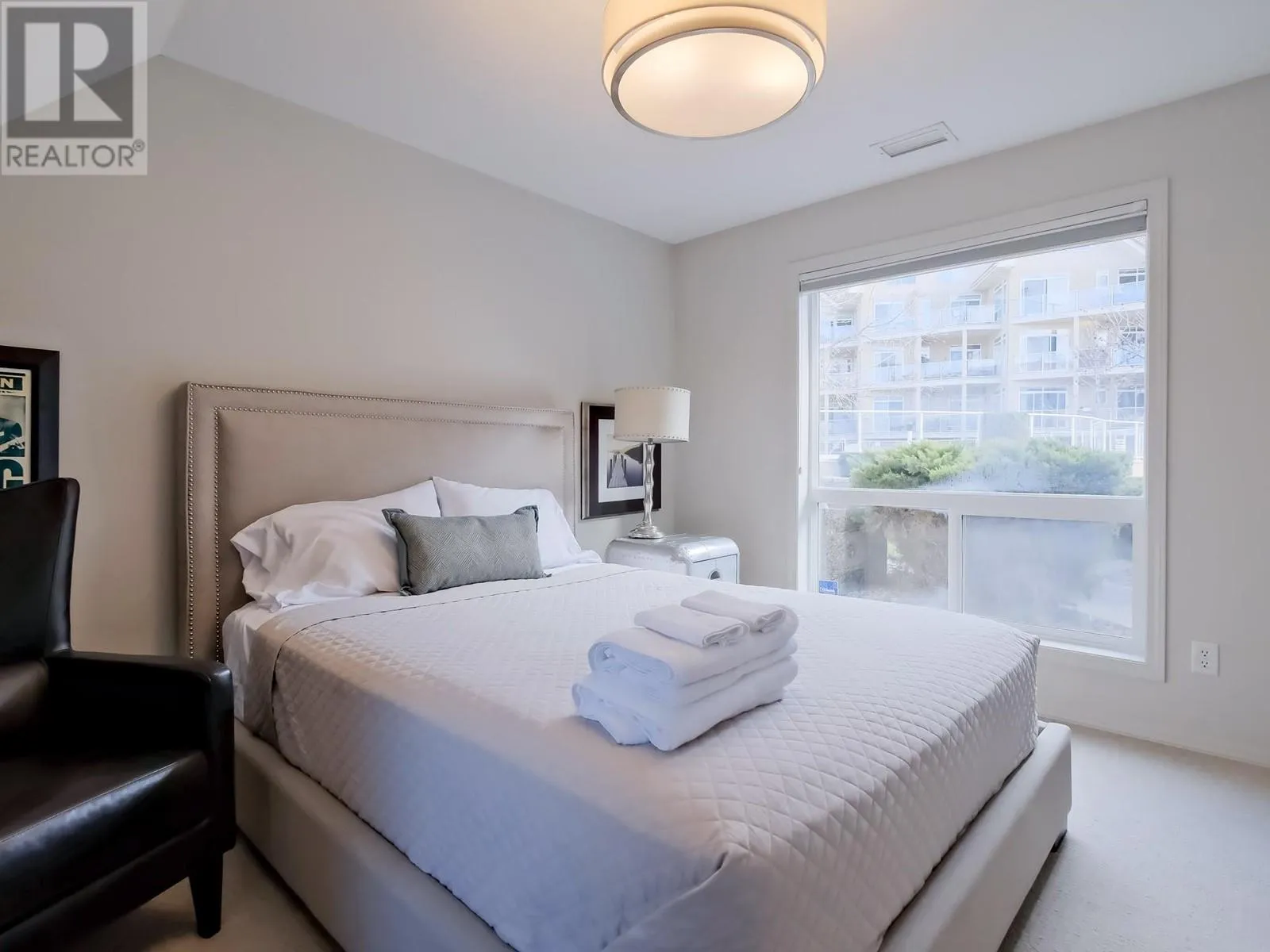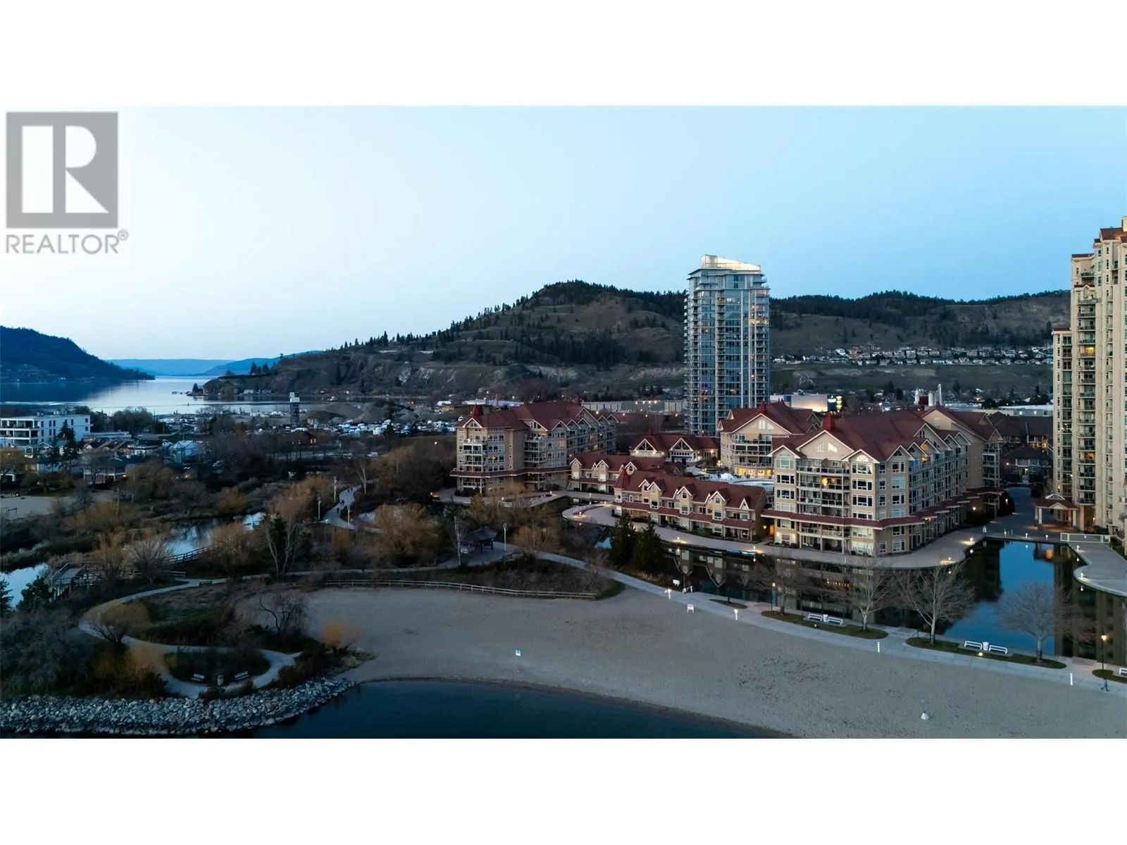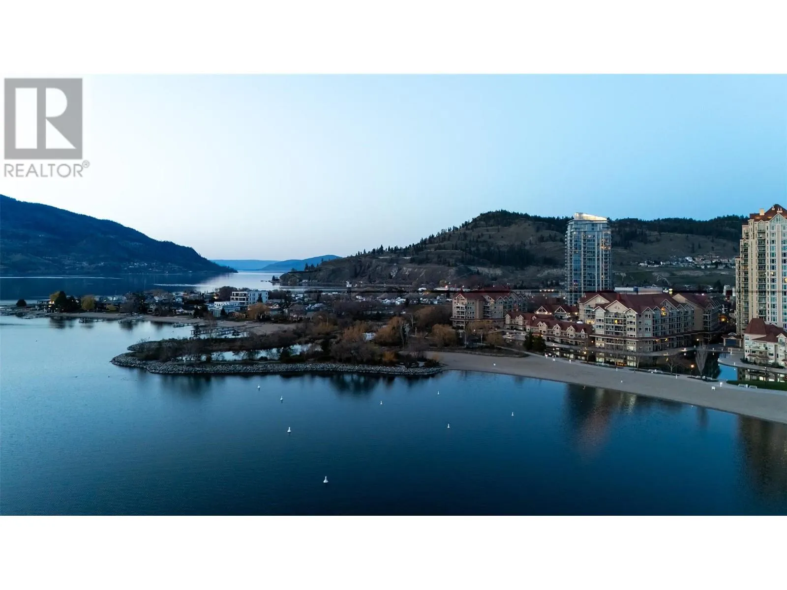 LOCATION, LOCATION, LOCATION! Experience the best of waterfront living in this beautifully appointed corner townhome in downtown Kelowna. Boasting unobstructed views of Okanagan Lake, the beach, and the bird sanctuary, this charming two-story residence offers privacy and luxury in an unbeatable location. Featuring an open concept design with soaring vaulted ceilings, this home includes three spacious bedrooms, with the primary suite conveniently located on the main level. Upstairs, you'll find two additional bedrooms, a den, and an award-winning bathroom, along with access to the pool, gym, and entertainment area. The stunning kitchen is finished with granite countertops, and the living spaces are enhanced with designer drapery. Step outside to two private balconies that overlook the lagoon, boardwalk, and sandy beaches - perfect for soaking in Okanagan sunsets. Two secured side by side parking stalls just steps from the entrance. Pet-friendly, this luxury townhome is a rare investment opportunity in one of Kelownaâs most desirable waterfront locations. Enjoy the vibrant downtown lifestyle, just moments from the cityâs best restaurants, breweries, and Knox Mountain. Donât miss this chance to own a waterfront oasis in the heart of Kelowna! (id:27476)