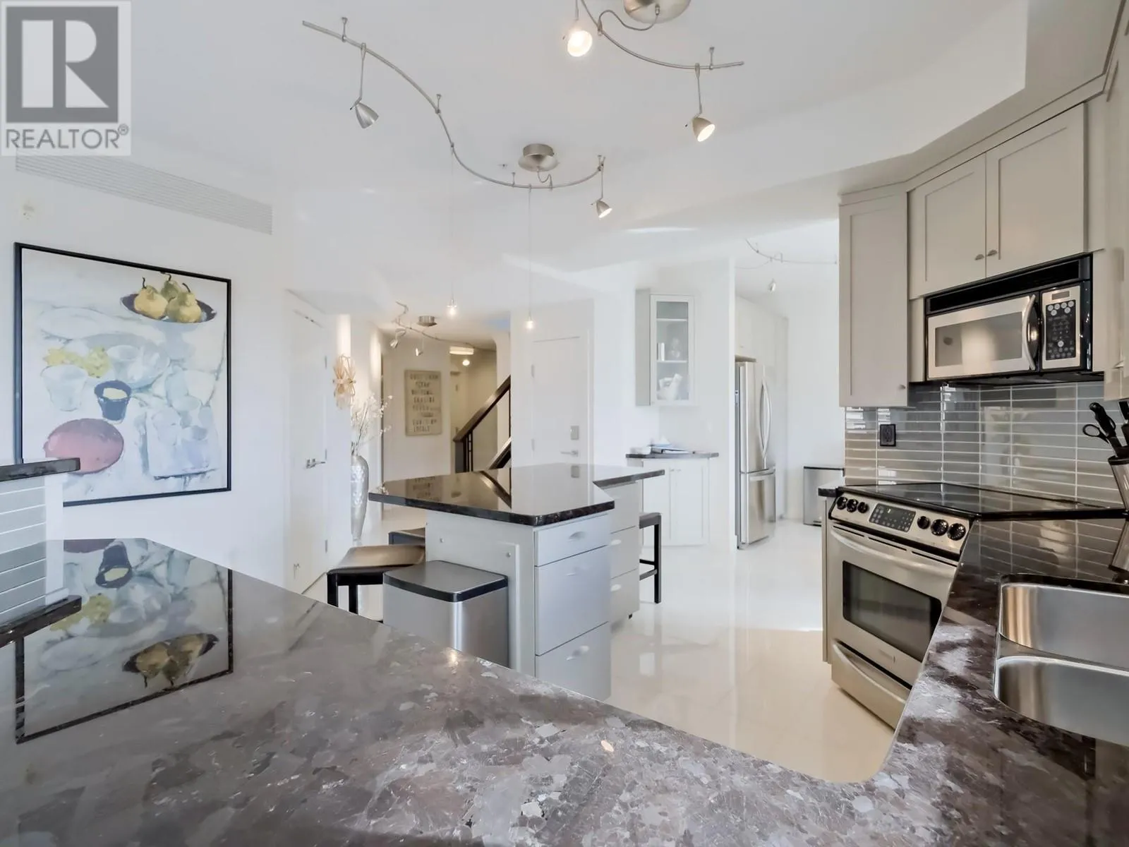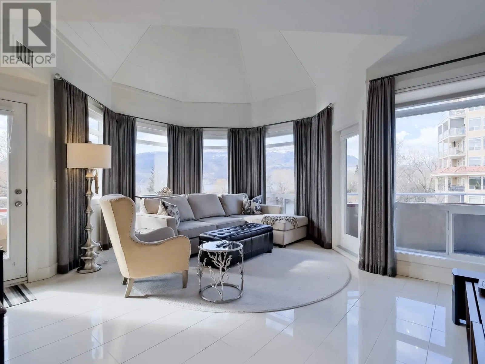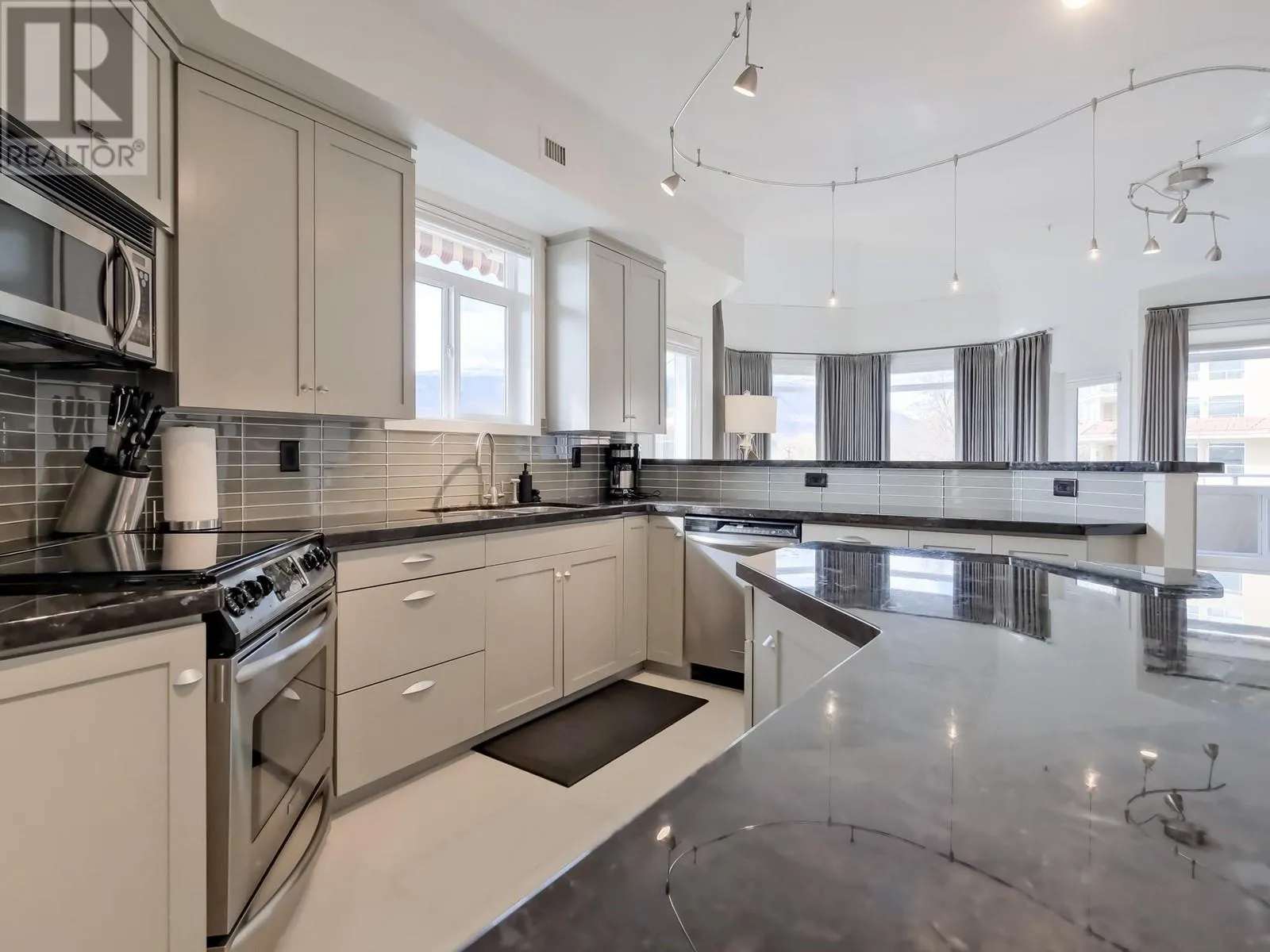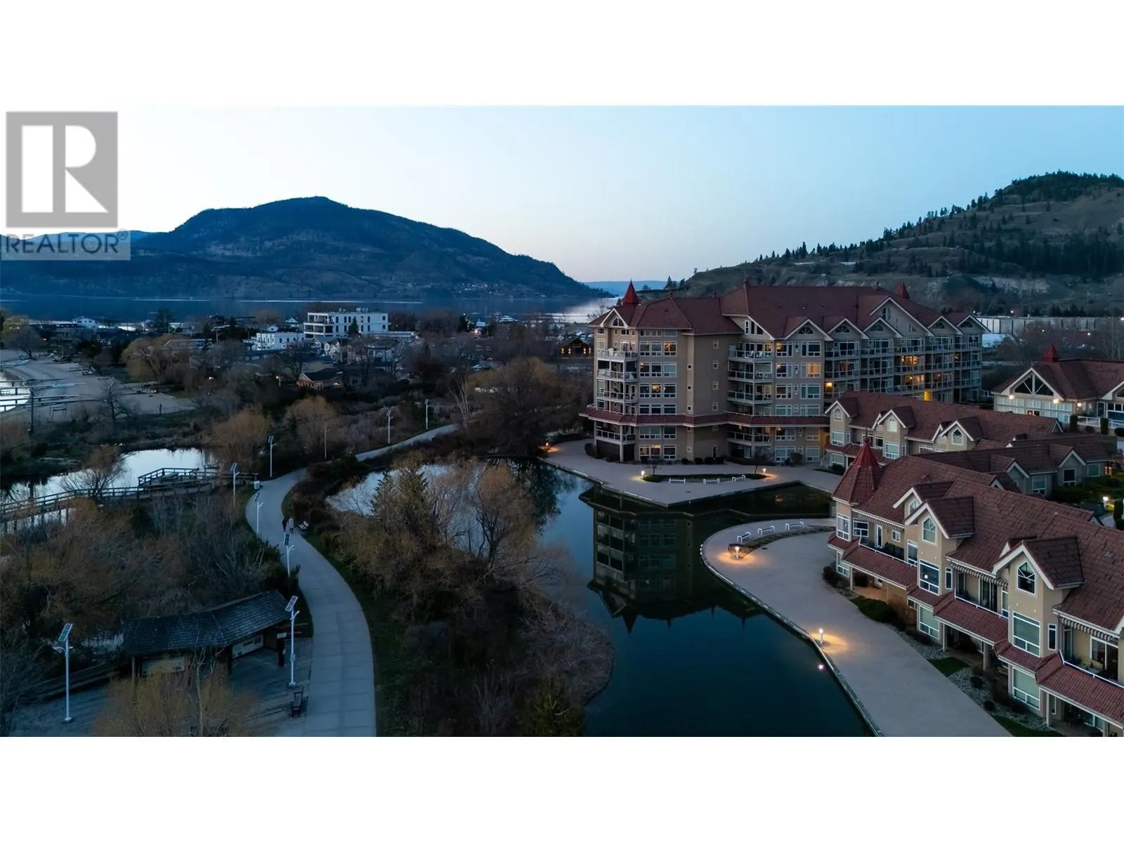 LOCATION, LOCATION, LOCATION! Experience the best of waterfront living in this beautifully appointed corner townhome in downtown Kelowna. Boasting unobstructed views of Okanagan Lake, the beach, and the bird sanctuary, this charming two-story residence offers privacy and luxury in an unbeatable location. Featuring an open concept design with soaring vaulted ceilings, this home includes three spacious bedrooms, with the primary suite conveniently located on the main level. Upstairs, you'll find two additional bedrooms, a den, and an award-winning bathroom, along with access to the pool, gym, and entertainment area. The stunning kitchen is finished with granite countertops, and the living spaces are enhanced with designer drapery. Step outside to two private balconies that overlook the lagoon, boardwalk, and sandy beaches - perfect for soaking in Okanagan sunsets. Two secured side by side parking stalls just steps from the entrance. Pet-friendly, this luxury townhome is a rare investment opportunity in one of Kelownaâs most desirable waterfront locations. Enjoy the vibrant downtown lifestyle, just moments from the cityâs best restaurants, breweries, and Knox Mountain. Donât miss this chance to own a waterfront oasis in the heart of Kelowna! (id:27476)