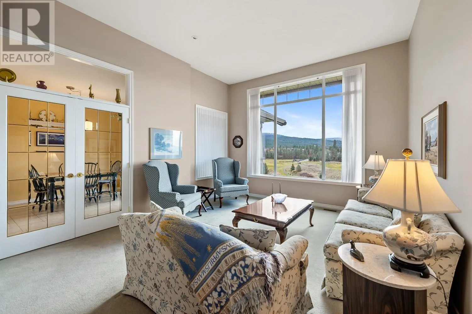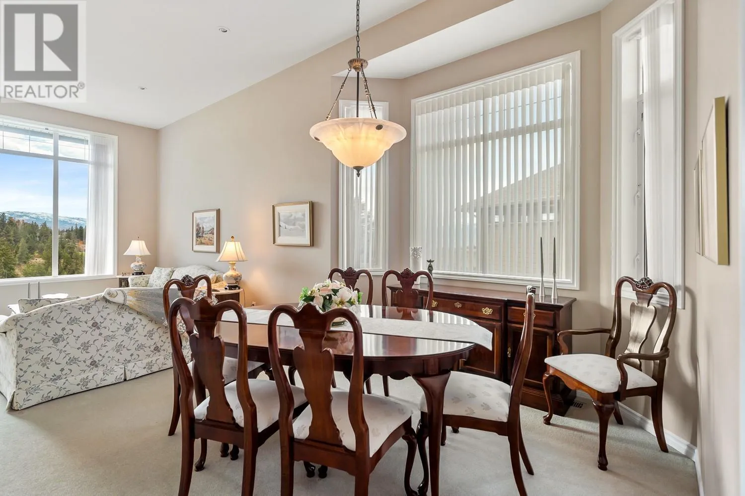 The address says it allâGallaghers is the Pinnacle of Luxury, nestled in the low mountains, orchards and vineyards of East Kelowna. This gated community of 644 homes and two golf courses, includes craft rooms, auditorium, games room, library, swimming pool with hot tub, and a gym. Operational maintenance of these facilities, roads, parks and infrastructure is supported by the 14 Stratas and the Golf Course. The Golf Clubhouse features a restaurant overlooking the Course and valley. This luxury townhome, offered by the original owner, includes the very finest in design and decor including extra heat vents, sound proofing, pre wiring for a security system, double interior glass doors for privacy, and many recent upgrades. The extra wide garage features space for a golf cart, epoxy floor paint, and recessed galvanized floor grates with drains. Uniquely positioned, backing south overlooking the Pinnacle Golf Course with breathtaking views of the canyon, city and lake beyond; this is truly one of a kind lifestyle opportunity! (id:27476)