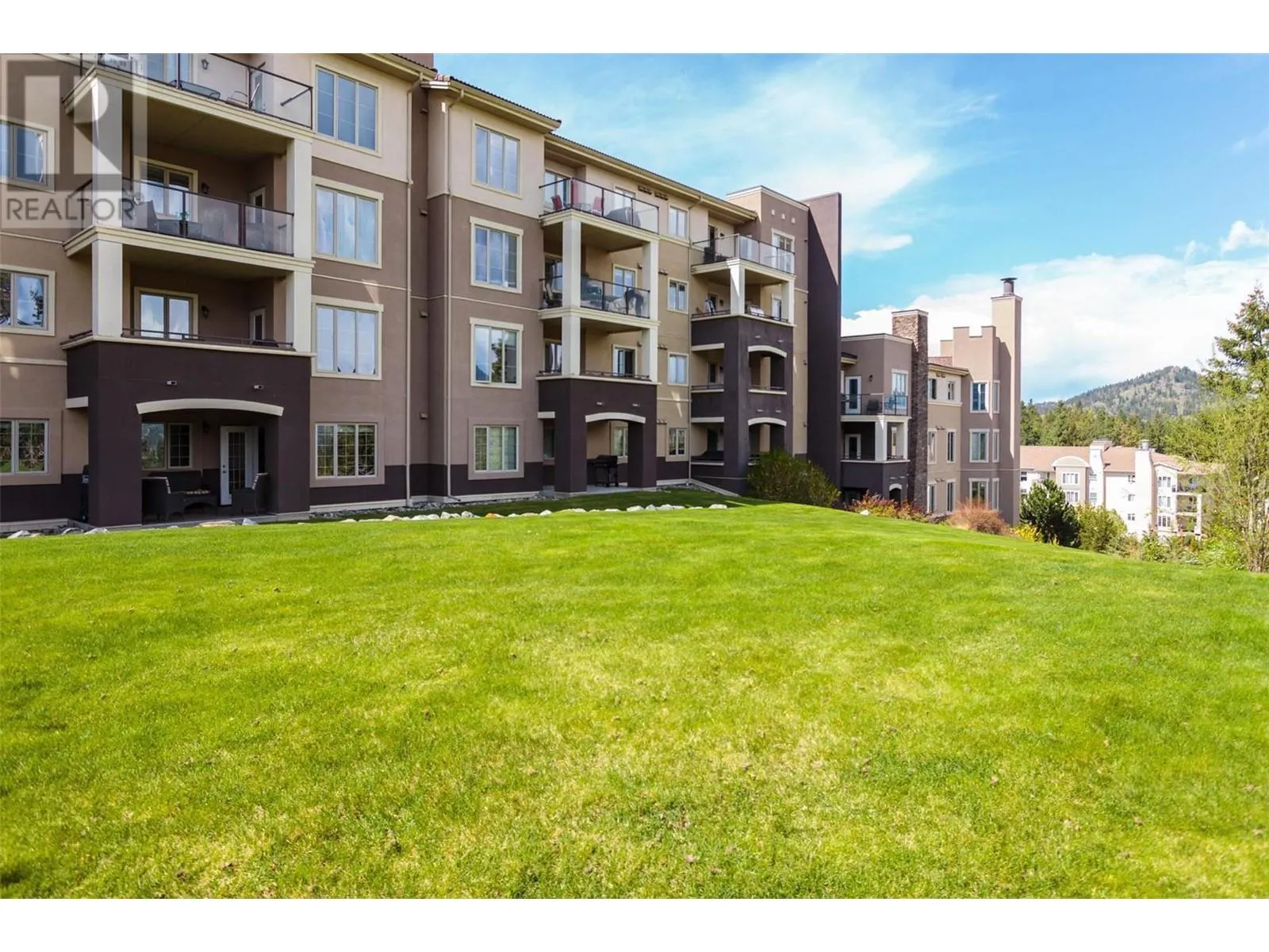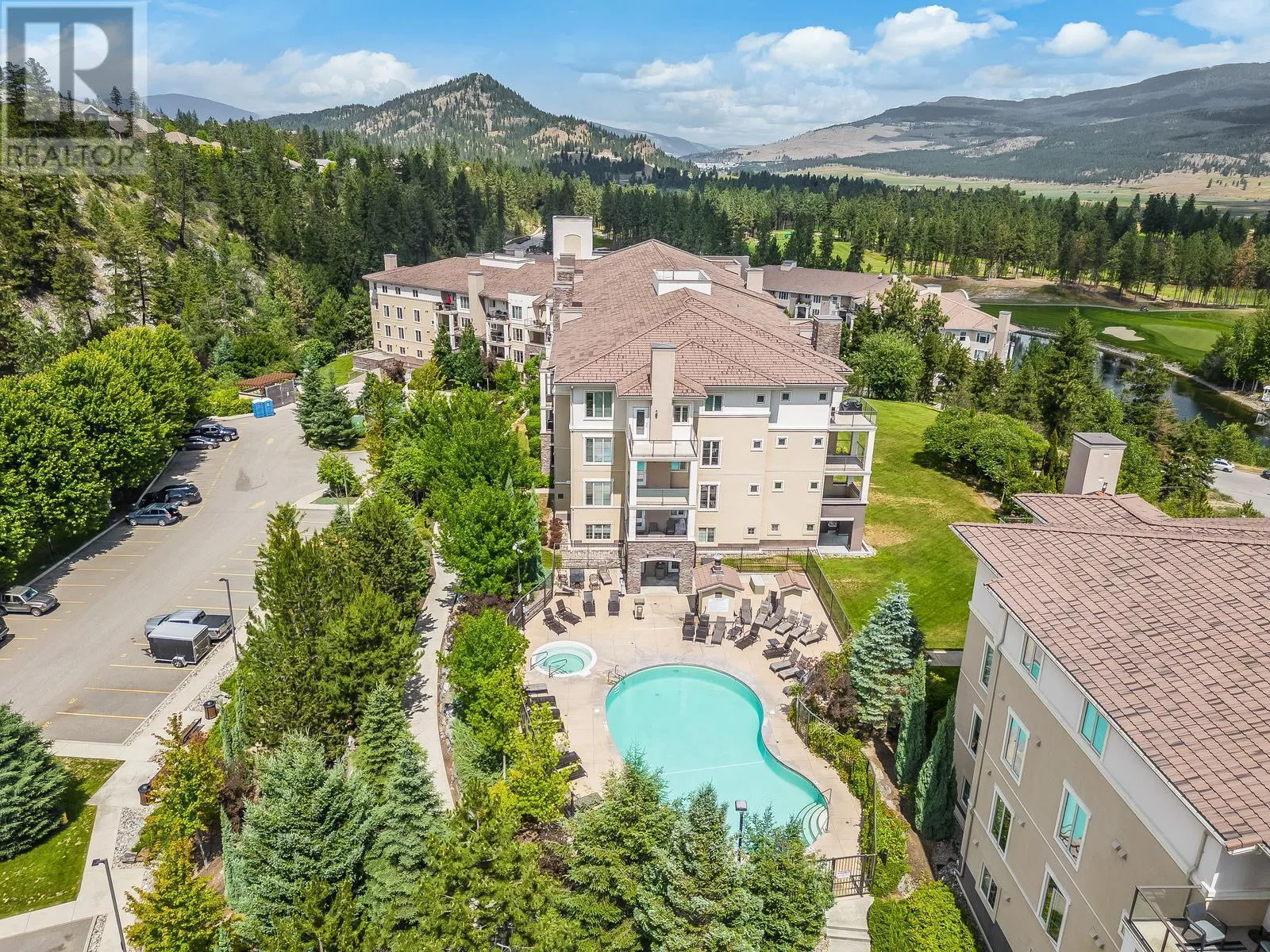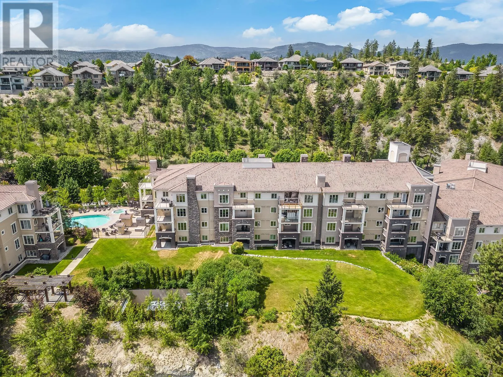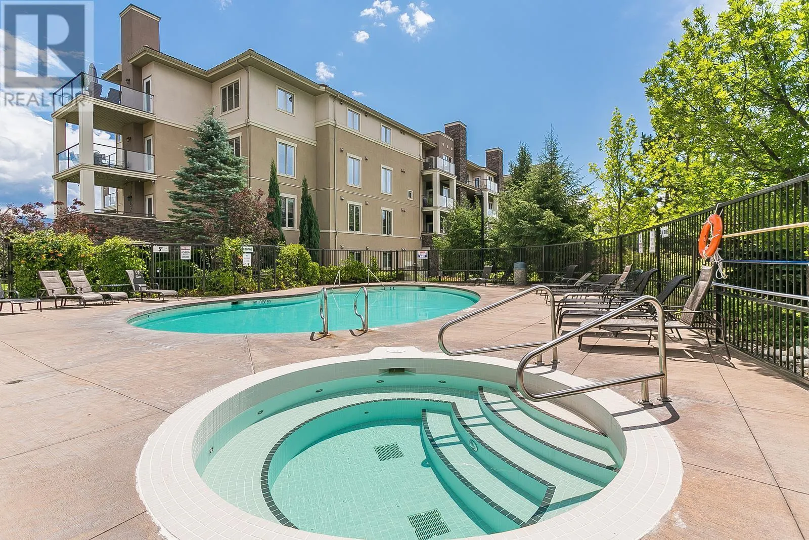 PINNACLE POINTE - This 2 bedroom, 2 bathroom unit is a rare find. A spacious living area, opening to a large walkout backyard with beautiful mountain views, located on third floor with quick access to the meeting office, fitness gym and outdoor pool/hot tub amenities. A well maintained unit, fully furnished, great for a turn key rental. Updated flooring, paint and appliances. Great location, close to transit, UBC Okanagan Campus, airport, shopping, restaurants, parks, trails, golf course and more. All furniture, bedding & towels included! One underground parking stall. Bike storage room. Excellent place for investors, students, and golfers. (id:27476)