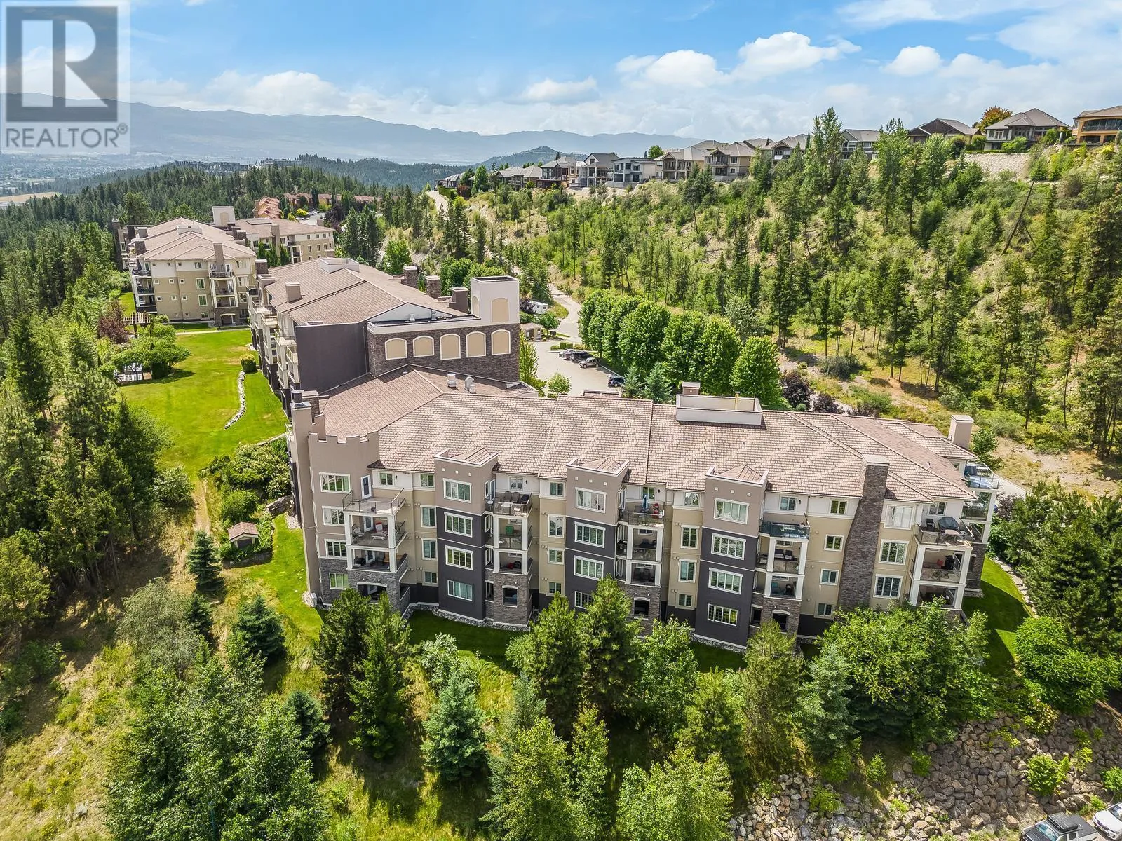 PINNACLE POINTE - This 2 bedroom, 2 bathroom unit is a rare find. A spacious living area, opening to a large walkout backyard with beautiful mountain views, located on third floor with quick access to the meeting office, fitness gym and outdoor pool/hot tub amenities. A well maintained unit, fully furnished, great for a turn key rental. Updated flooring, paint and appliances. Great location, close to transit, UBC Okanagan Campus, airport, shopping, restaurants, parks, trails, golf course and more. All furniture, bedding & towels included! One underground parking stall. Bike storage room. Excellent place for investors, students, and golfers. (id:27476)