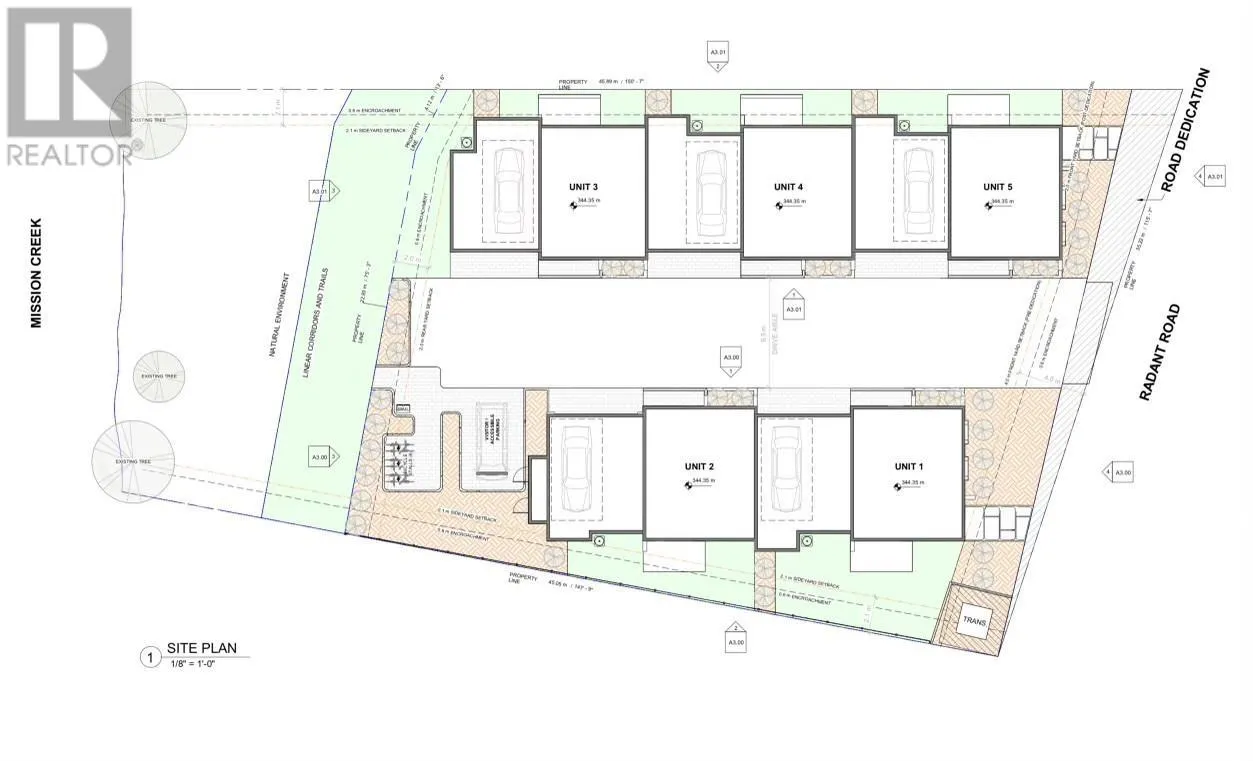 Exceptional Development Opportunity in the Heart of Lower Mission 569 Radant Road, Kelowna | Prime MF1 Zoning! Unlock the full potential of this rare and highly sought-after property in Kelownaâs prestigious Lower Mission. Located at 569 Radant Road, this large, level lot offers a prime opportunity for multi-family development in one of the cityâs most vibrant and rapidly evolving neighbourhoods. Preliminary design plans are already in place for a five-unit townhouse project, each thoughtfully designed with 3 bedrooms, 2 bathrooms, a private garage, and expansive rooftop patiosâperfectly tailored for todayâs discerning urban buyers. For developers seeking flexibility, this property offers even more: the lot is large enough to be subdivided into two MF1-zoned parcels, allowing for a variety of smaller-scale multifamily configurations. Whether you proceed with the existing plans or reimagine the site to suit your own vision, the development possibilities are exceptional. Backing onto Mission Creek and just steps from the newly revitalized Truswell Beach access, the location is second to none. Residents will enjoy walkable access to Okanagan Lake, the H2O Adventure + Fitness Centre, vibrant Pandosy Village, boutique shopping, popular restaurants, breweries, and scenic walking trails. 569 Radant Road represents a rare blend of location, zoning, and scaleâmaking it one of the most compelling development opportunities currently available in Kelowna. (id:27476)