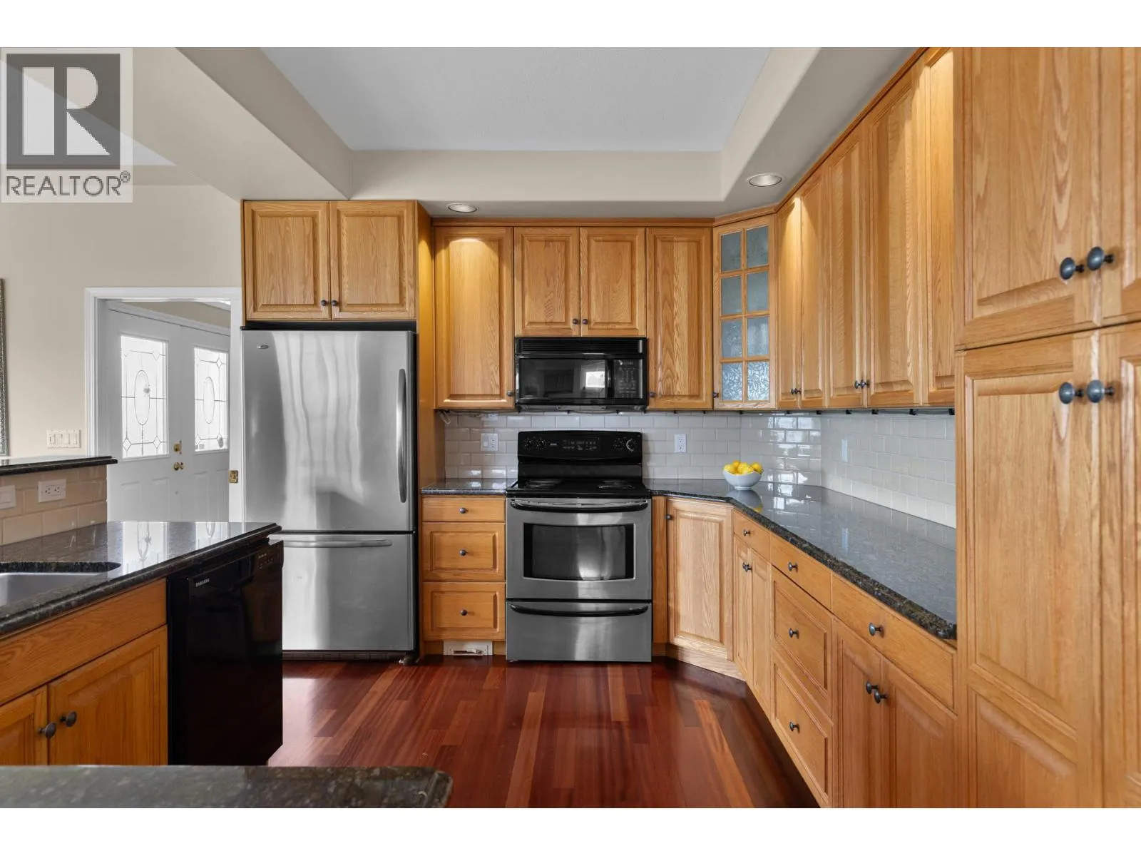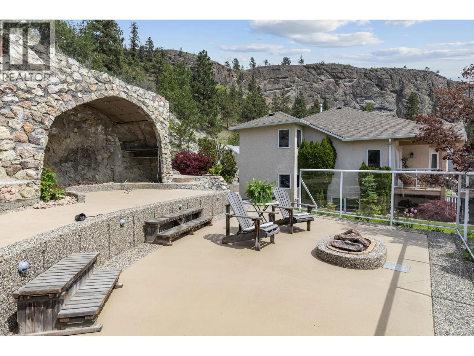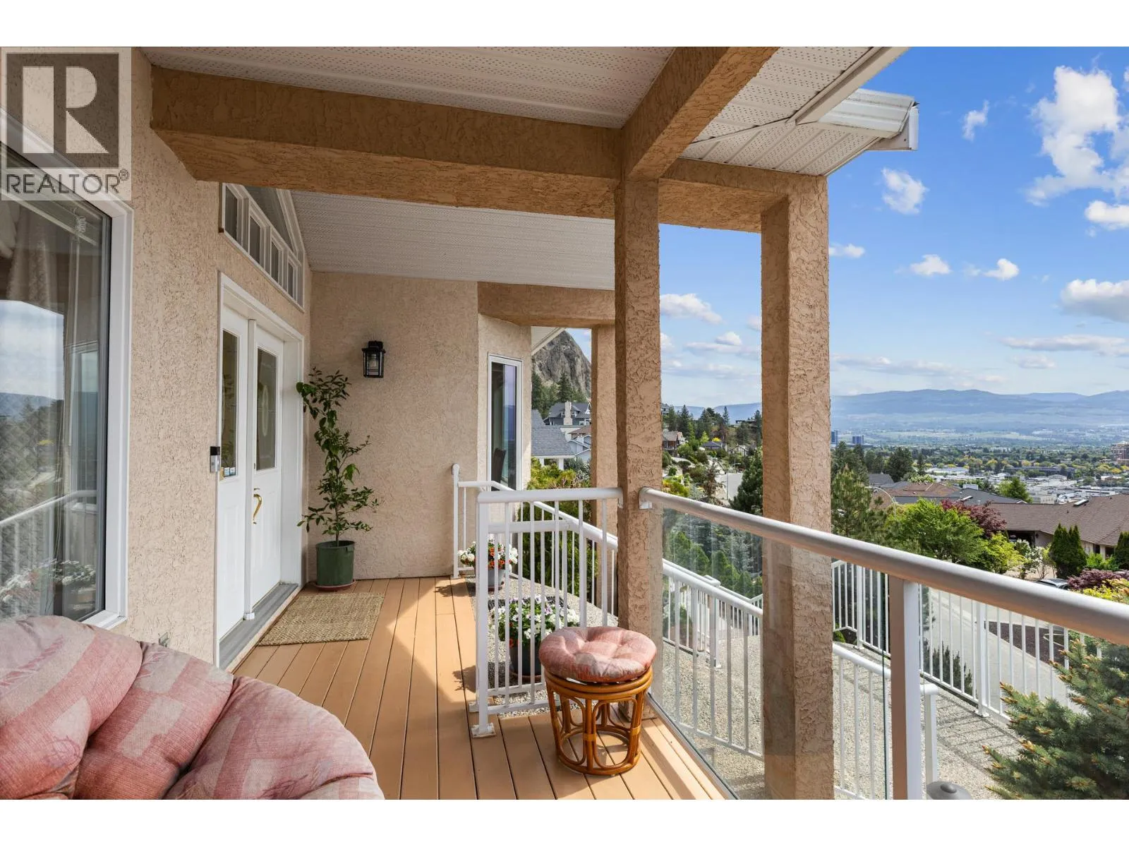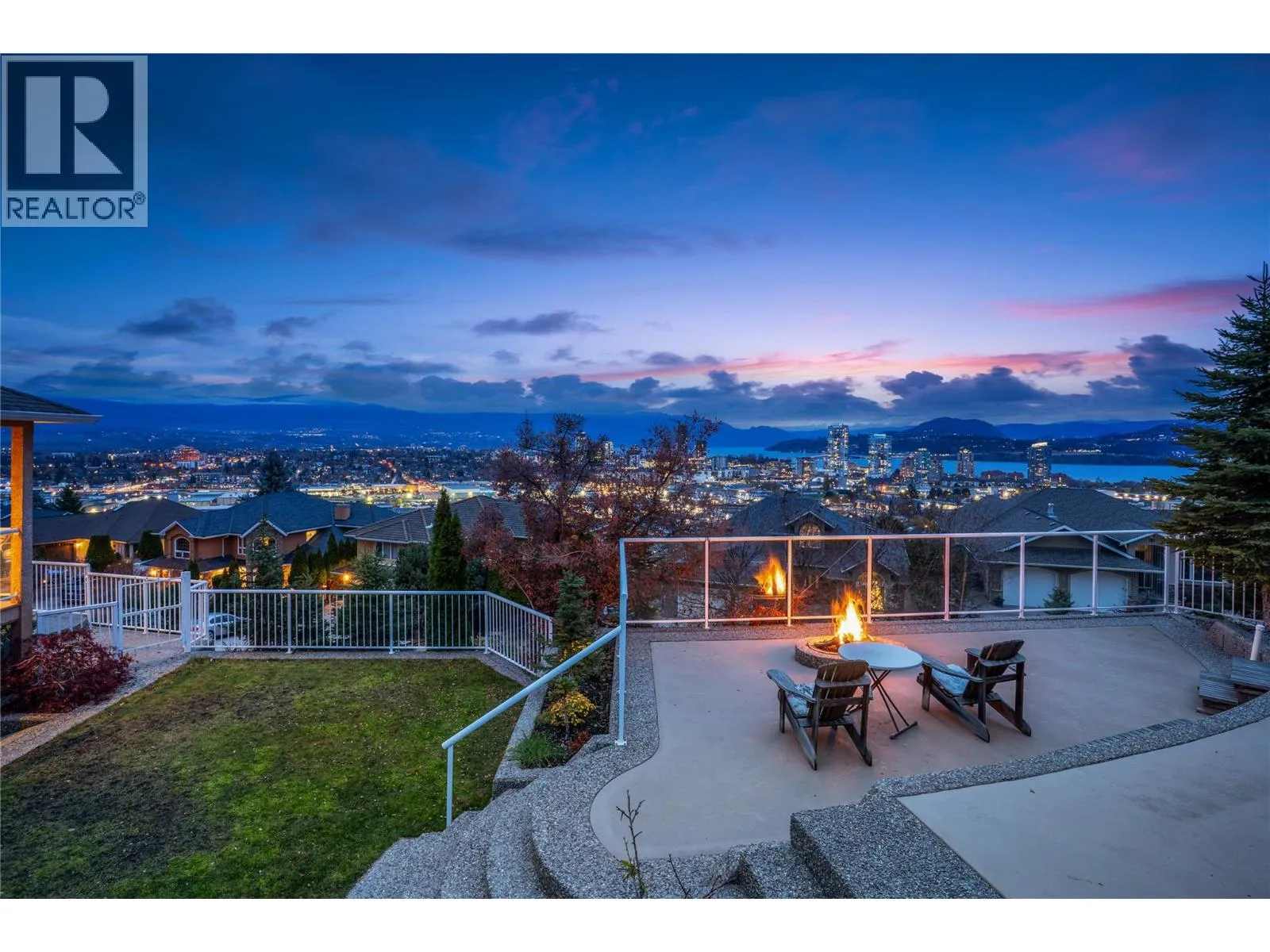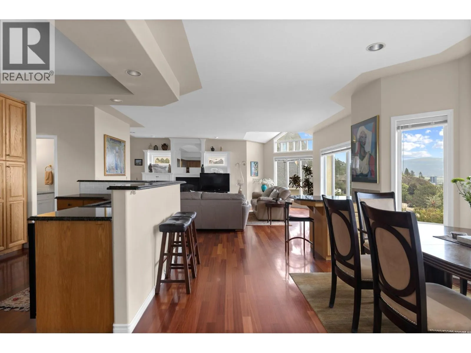 A Rare Gem on Mount Royal! Welcome to one the Cityâs most prestigious and centrally located neighbourhoods adjacent to Knox Mountain Park with 367 HA of natural beauty! Located minutes from downtown, yet worlds away with breathtaking panoramic views of the Kelowna skyline and Okanagan lake. This southwest-facing masterpiece offers ever-changing vistas through expansive windows and thoughtfully designed open-concept spaces. A unique front-to-back split layout spans four distinct levels, blending style and functionality throughout.The main level features a spacious great room, cozy dining nook, private office, enclosed den, and a formal dining areaâperfect for both entertaining and everyday living. Upstairs, retreat to the luxurious primary suite, complete with a five-piece ensuite. The lower levels offer versatile living with two additional bedrooms and a full bath, while the walk-out guest suite includes two more bedrooms, a generous family room, and a kitchenetteâideal for visitors or extended family. Step outside to a private, park-like oasis on .88 acres, with beautifully landscaped pathways and artistic rock walls leading to a secluded observation deck with natural gas firepit and an area pre-wired for a hot tub. The rear yard features a custom built 50ft waterfall - bringing both visual and audible beauty to this natural paradise. Extensive storage in crawl space. Experience the ultimate in privacy, comfort, and natural beautyâthis is Mount Royal living at its finest. (id:27476)