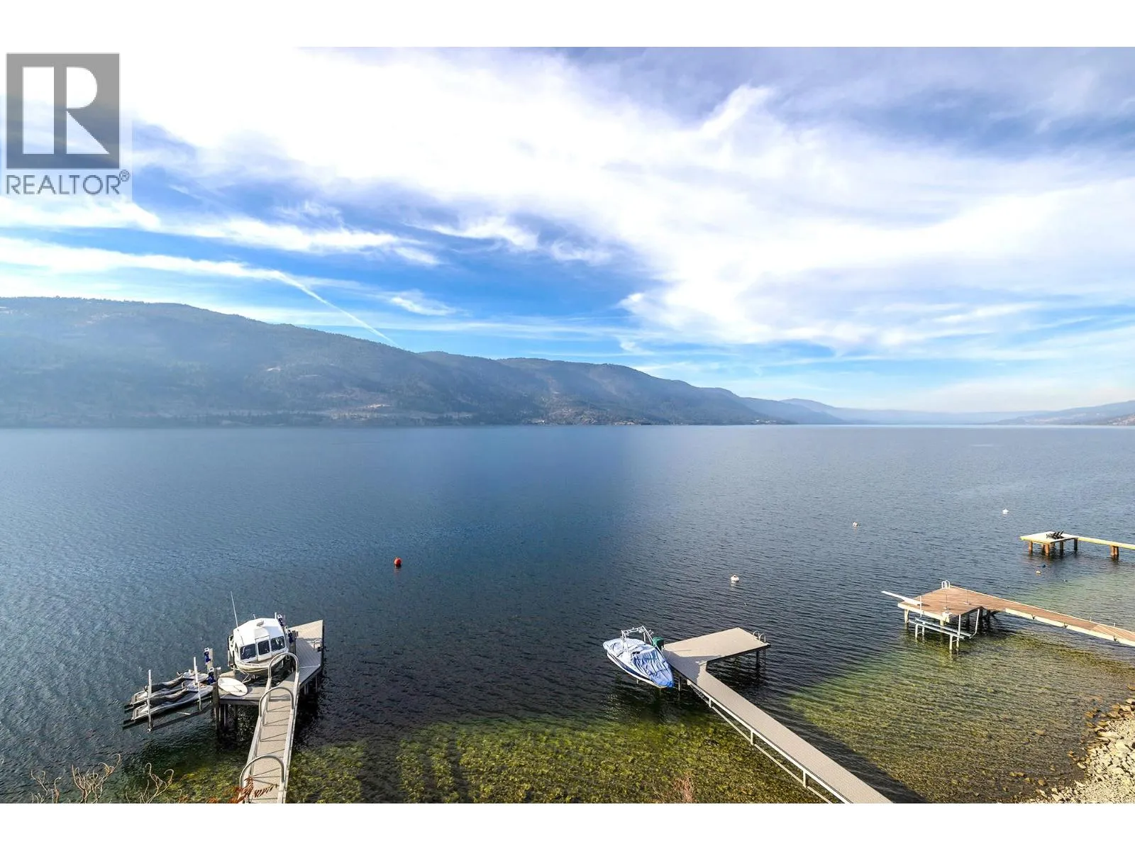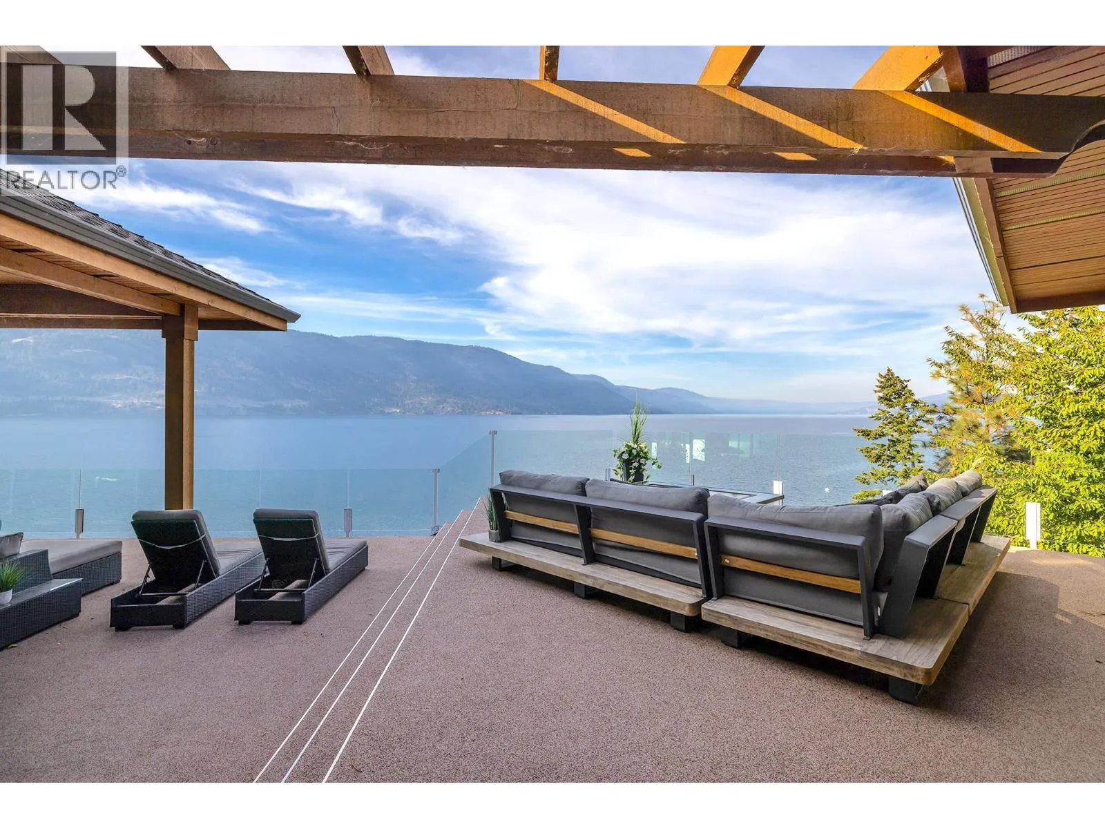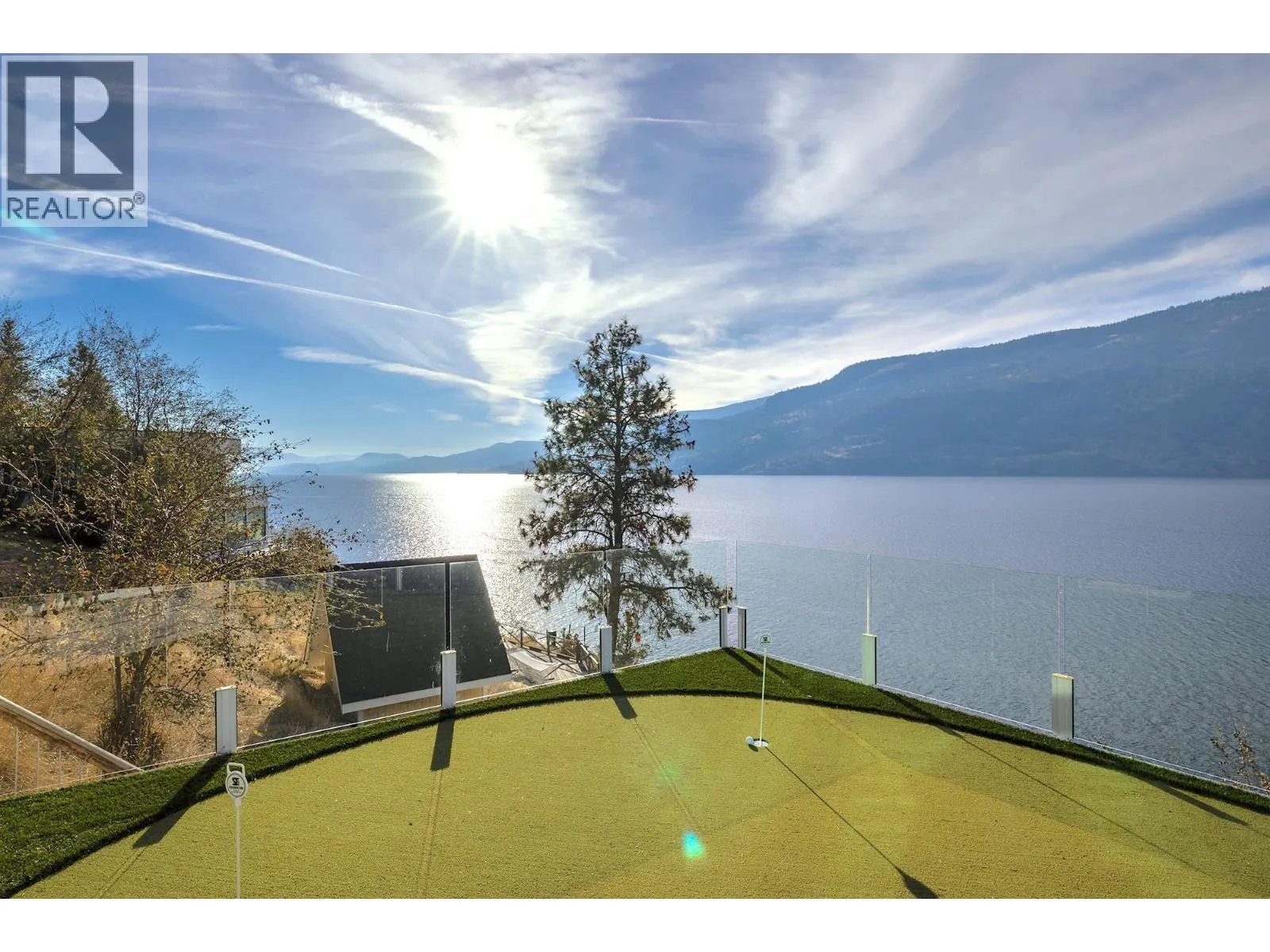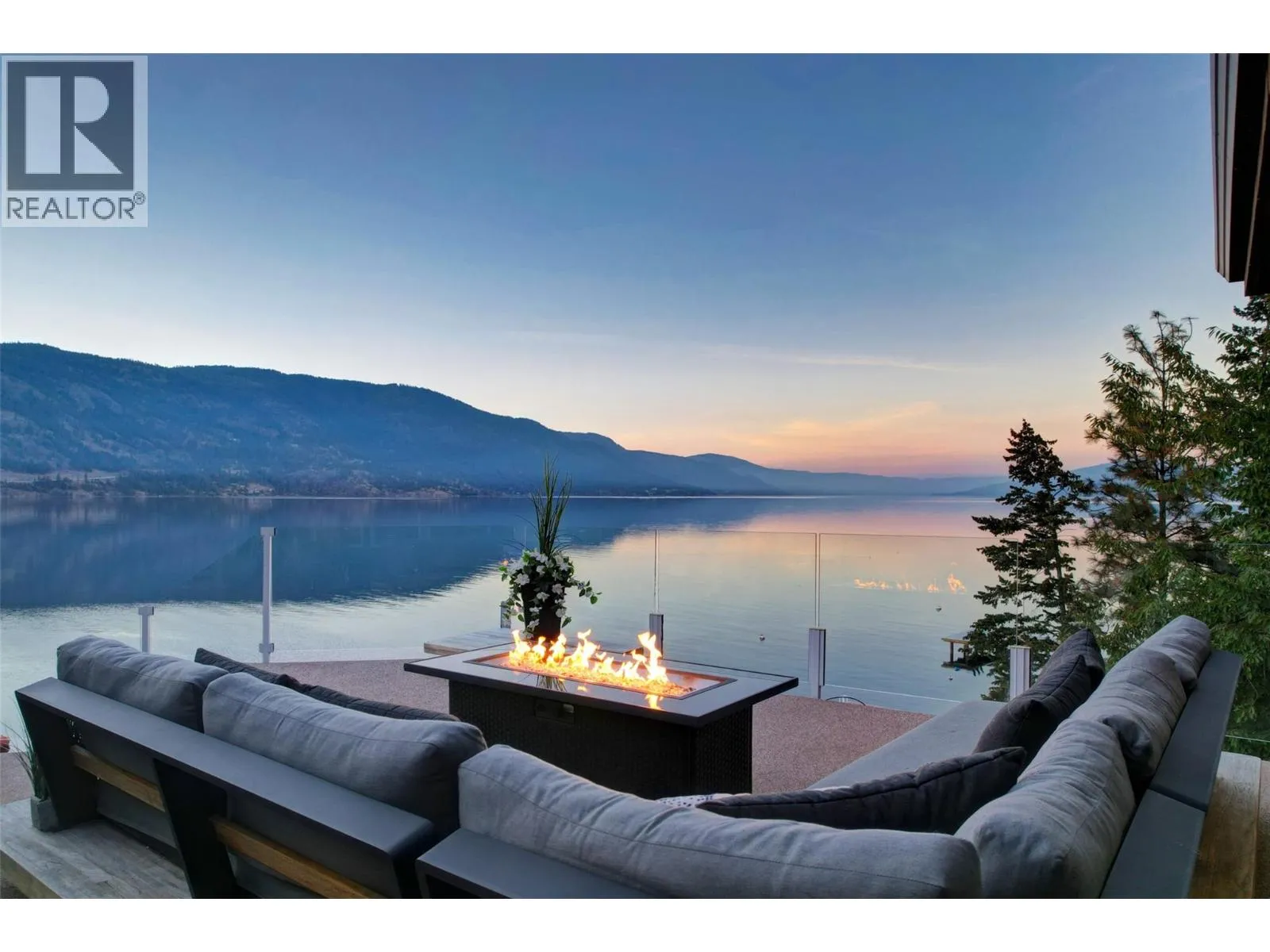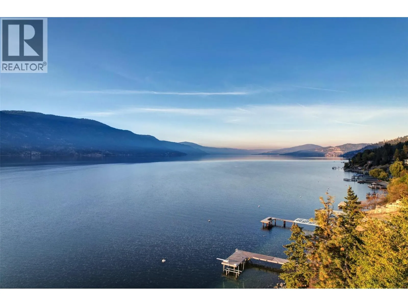 A Seamless Blend of Architecture and Nature with Panoramic Lake Views Perfectly integrated into the landscape, this stunning lakeside home captures the essence of Okanagan livingâideal as a summer escape or year-round retreat. With two spacious levels, approx. 2,000 sq. ft. of patio space, and a private wharf, it's built for lakeside enjoyment. Inside, a sun-filled, modern interior features floor-to-ceiling windows that frame breathtaking views. The chefâs kitchen boasts an illuminated live-edge island, Wolf appliances, a wine fridge, and Dacor wine station. A unique circular open fire pit anchors the living room, while the expansive wraparound patio offers glass railings, multiple lounging areas, and a mini putting green. The lower level includes four bedrooms, a luxurious primary suite with 6-piece en suite, a gym, home theatre, office, and patio with hot tub. At the waterâs edge, an aluminum dock includes a boat lift and dual Sea-Doo lift. The four-car tandem garage includes an extra-tall bay for RV or boat storage. A separate two-bedroom in-law suite, connected via hallway, offers excellent privacy. Located in McKinley Landing, just minutes from Kelowna International Airport, UBCO, Okanagan Golf Club, and downtown Kelowna. (id:27476)