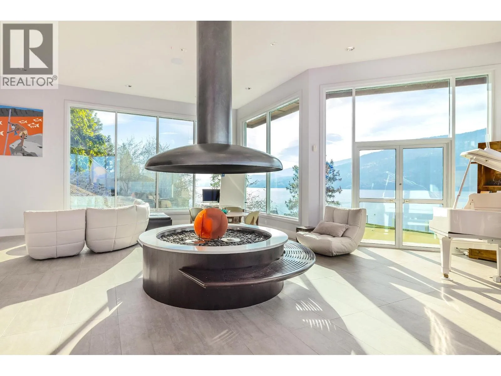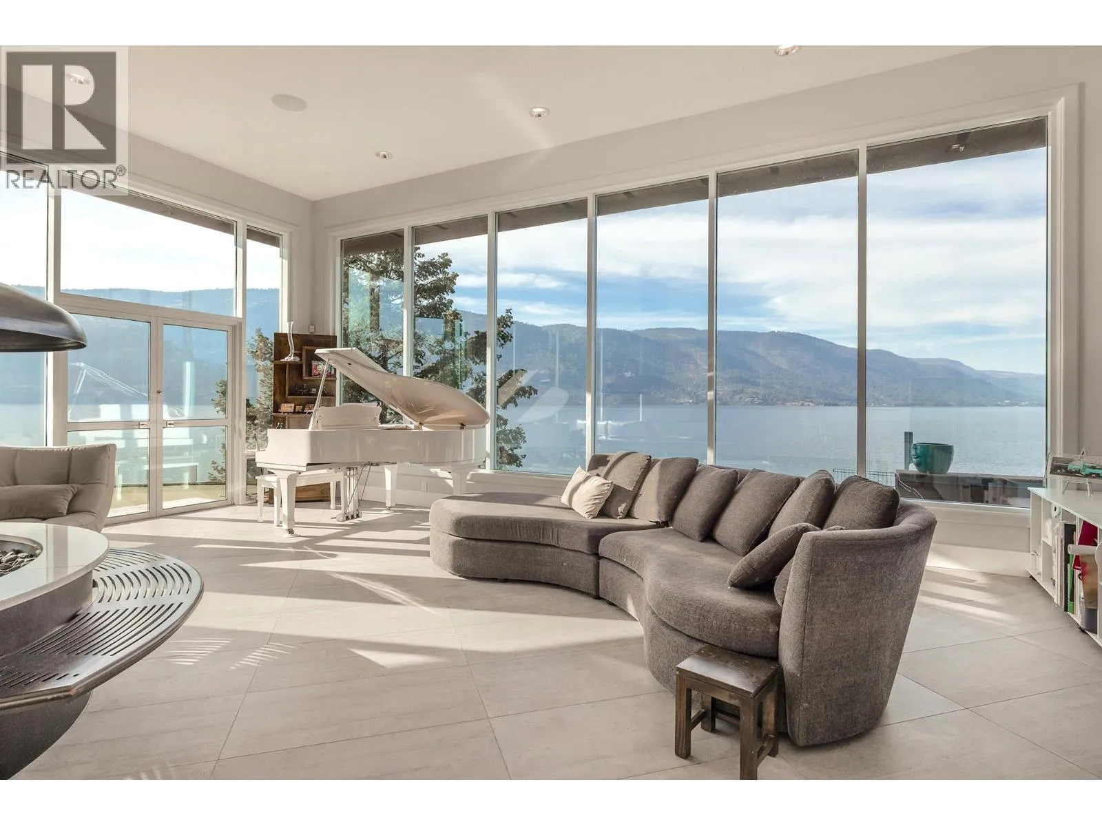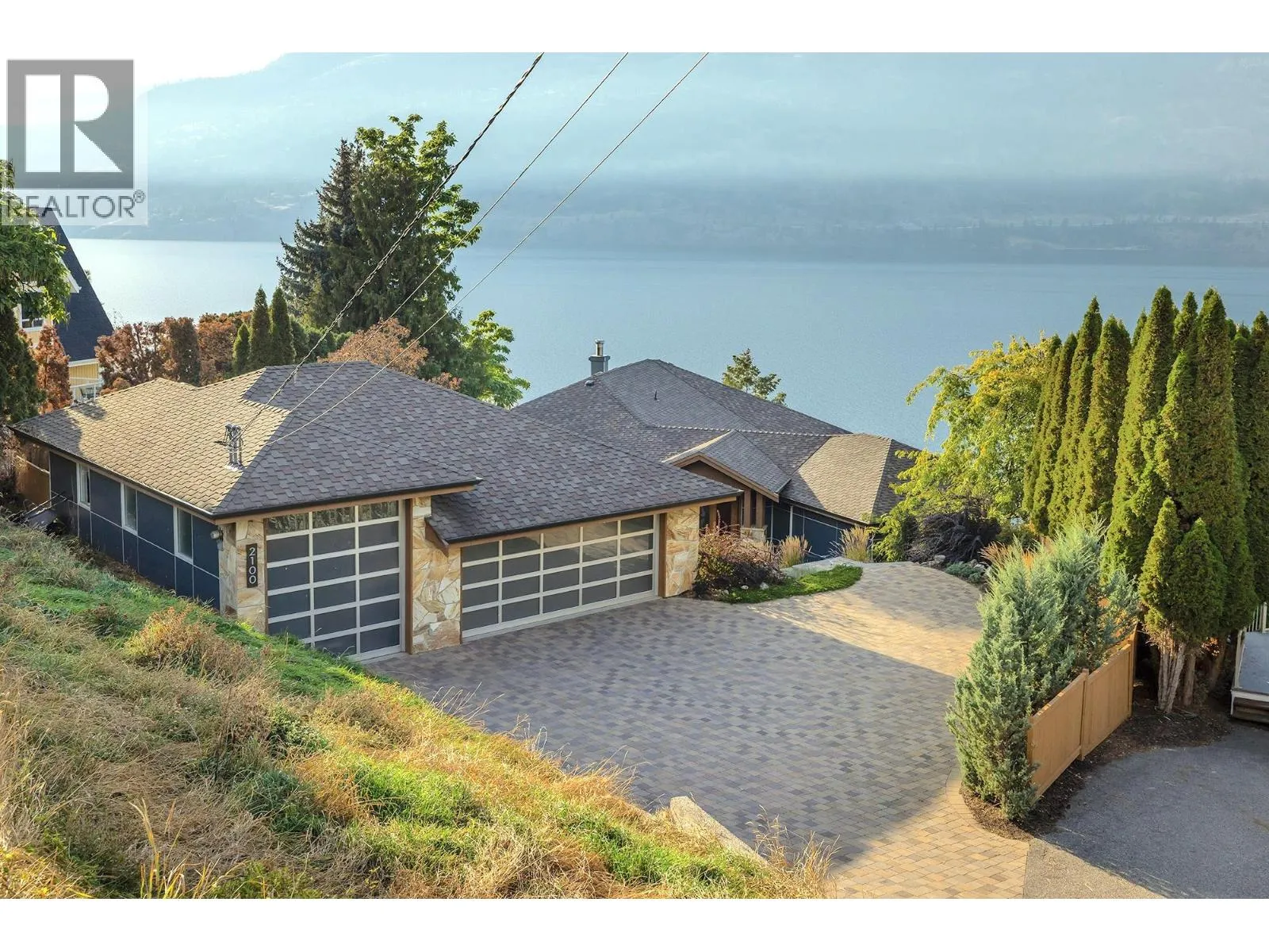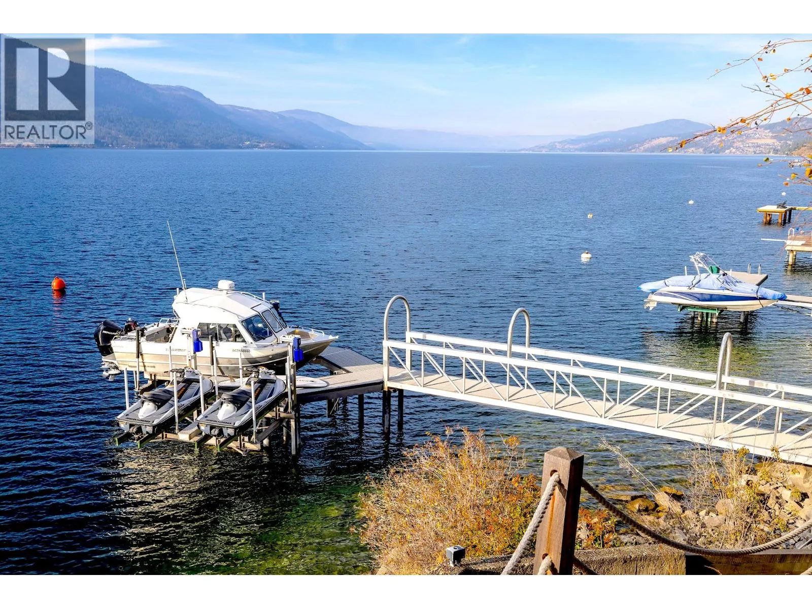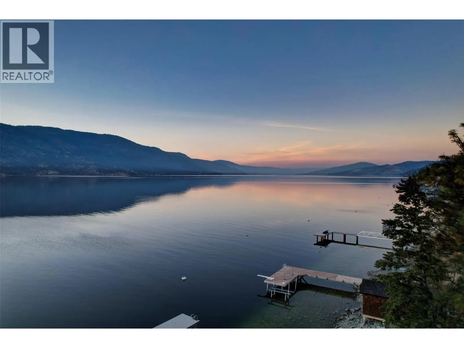 A Seamless Blend of Architecture and Nature with Panoramic Lake Views Perfectly integrated into the landscape, this stunning lakeside home captures the essence of Okanagan livingâideal as a summer escape or year-round retreat. With two spacious levels, approx. 2,000 sq. ft. of patio space, and a private wharf, it's built for lakeside enjoyment. Inside, a sun-filled, modern interior features floor-to-ceiling windows that frame breathtaking views. The chefâs kitchen boasts an illuminated live-edge island, Wolf appliances, a wine fridge, and Dacor wine station. A unique circular open fire pit anchors the living room, while the expansive wraparound patio offers glass railings, multiple lounging areas, and a mini putting green. The lower level includes four bedrooms, a luxurious primary suite with 6-piece en suite, a gym, home theatre, office, and patio with hot tub. At the waterâs edge, an aluminum dock includes a boat lift and dual Sea-Doo lift. The four-car tandem garage includes an extra-tall bay for RV or boat storage. A separate two-bedroom in-law suite, connected via hallway, offers excellent privacy. Located in McKinley Landing, just minutes from Kelowna International Airport, UBCO, Okanagan Golf Club, and downtown Kelowna. (id:27476)