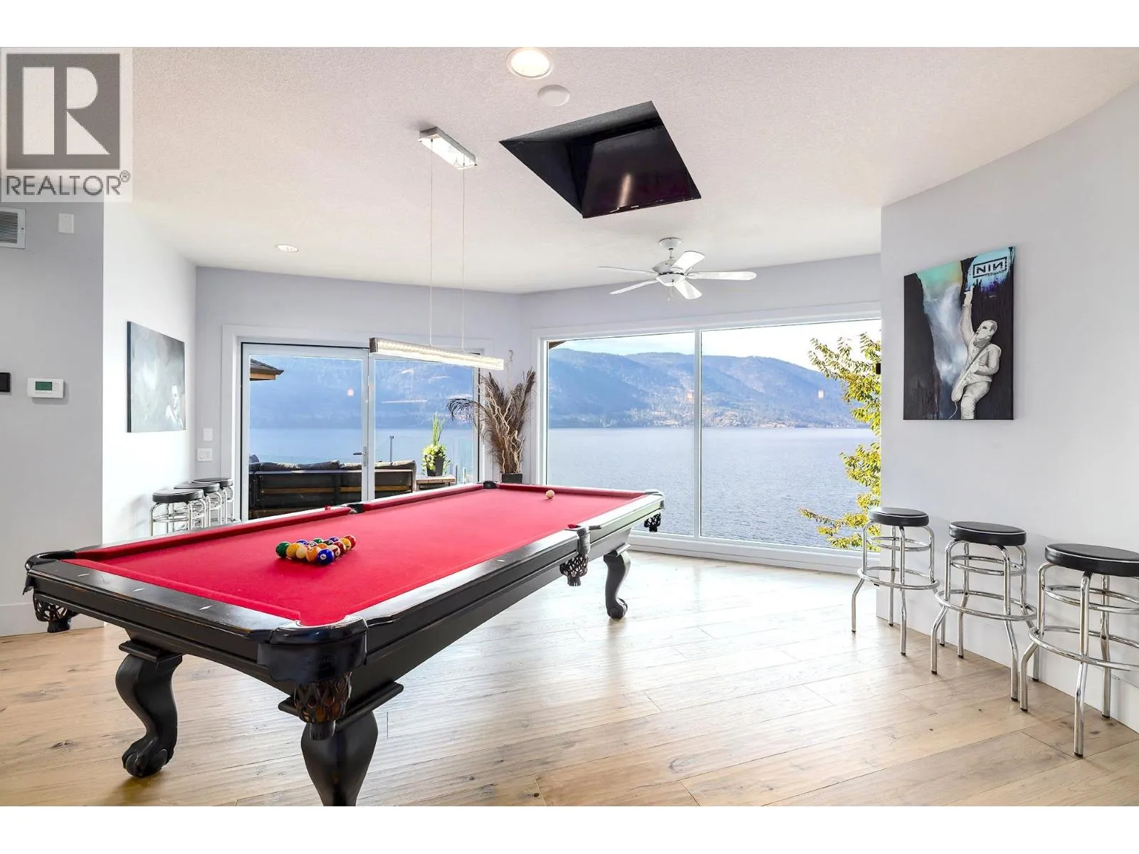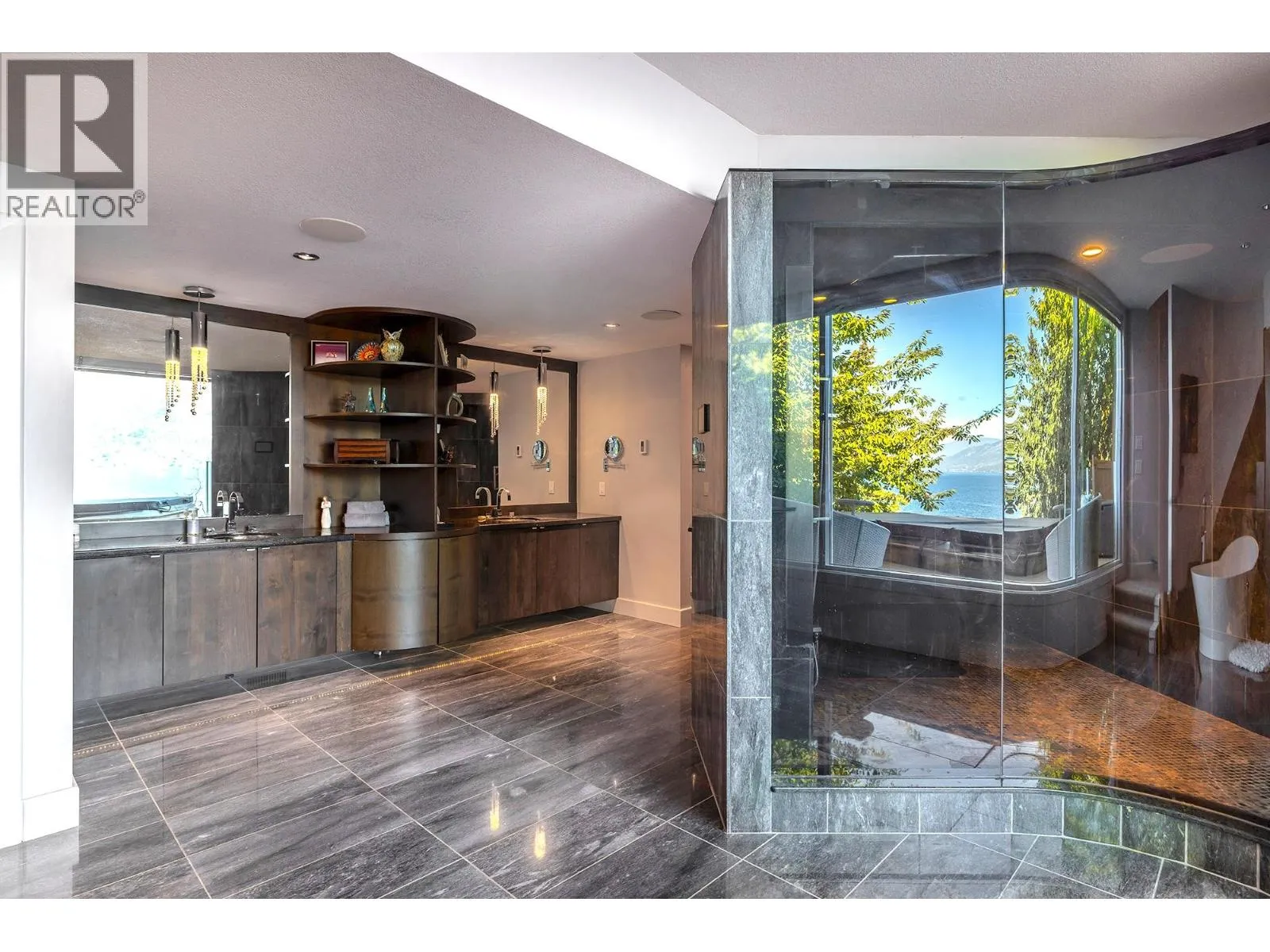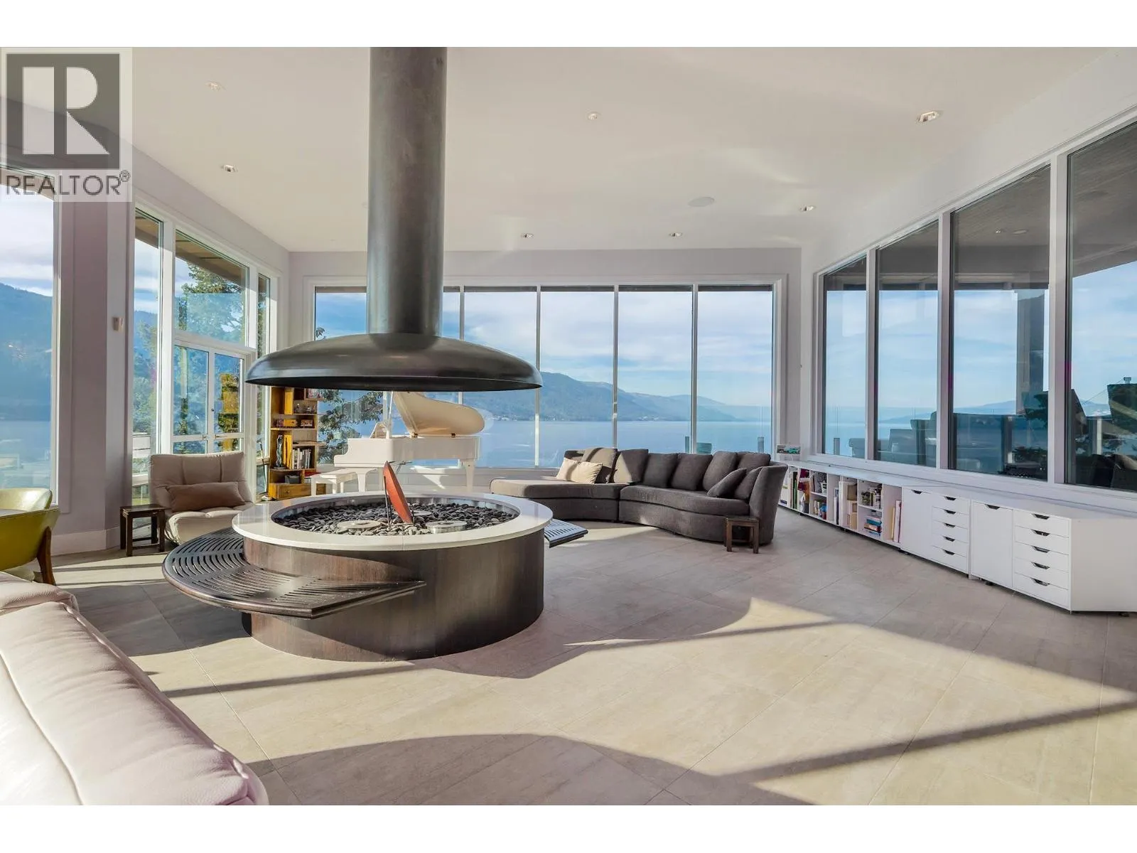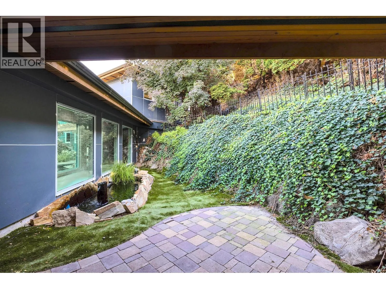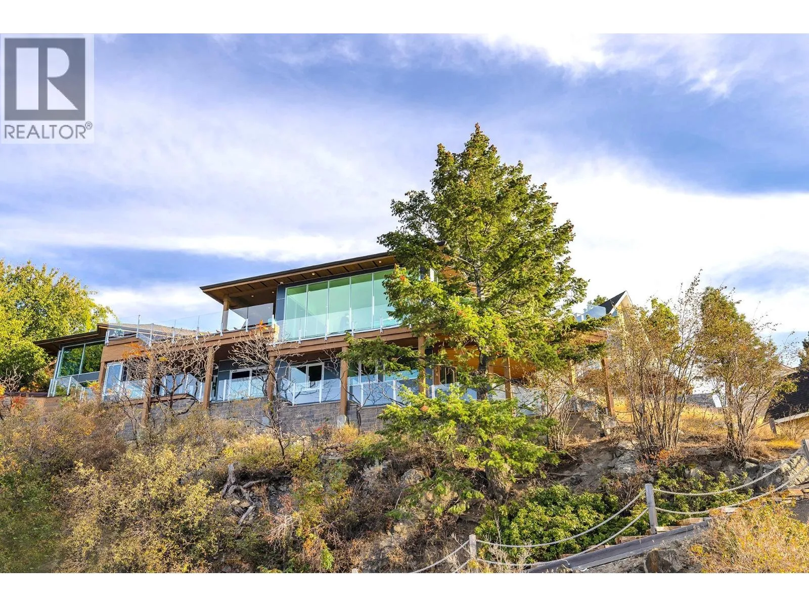 A Seamless Blend of Architecture and Nature with Panoramic Lake Views Perfectly integrated into the landscape, this stunning lakeside home captures the essence of Okanagan livingâideal as a summer escape or year-round retreat. With two spacious levels, approx. 2,000 sq. ft. of patio space, and a private wharf, it's built for lakeside enjoyment. Inside, a sun-filled, modern interior features floor-to-ceiling windows that frame breathtaking views. The chefâs kitchen boasts an illuminated live-edge island, Wolf appliances, a wine fridge, and Dacor wine station. A unique circular open fire pit anchors the living room, while the expansive wraparound patio offers glass railings, multiple lounging areas, and a mini putting green. The lower level includes four bedrooms, a luxurious primary suite with 6-piece en suite, a gym, home theatre, office, and patio with hot tub. At the waterâs edge, an aluminum dock includes a boat lift and dual Sea-Doo lift. The four-car tandem garage includes an extra-tall bay for RV or boat storage. A separate two-bedroom in-law suite, connected via hallway, offers excellent privacy. Located in McKinley Landing, just minutes from Kelowna International Airport, UBCO, Okanagan Golf Club, and downtown Kelowna. (id:27476)