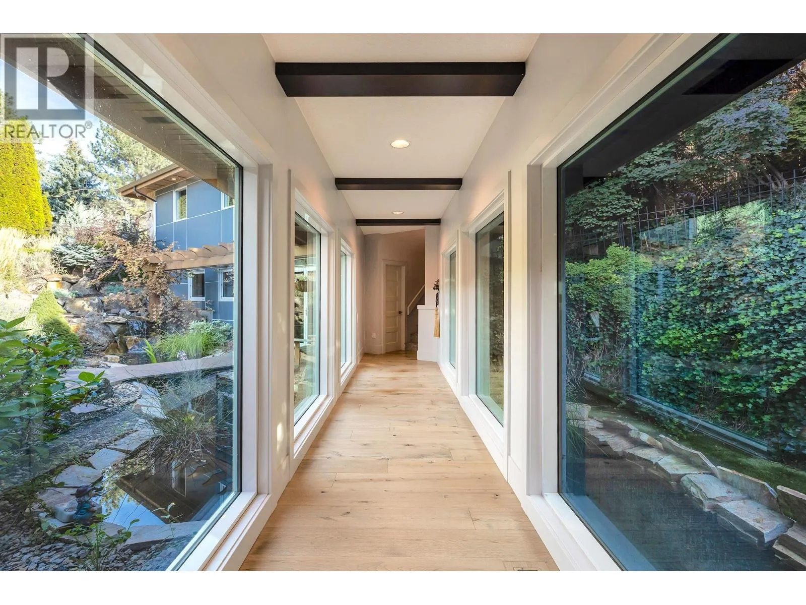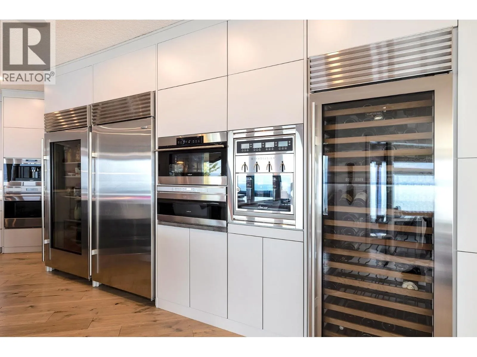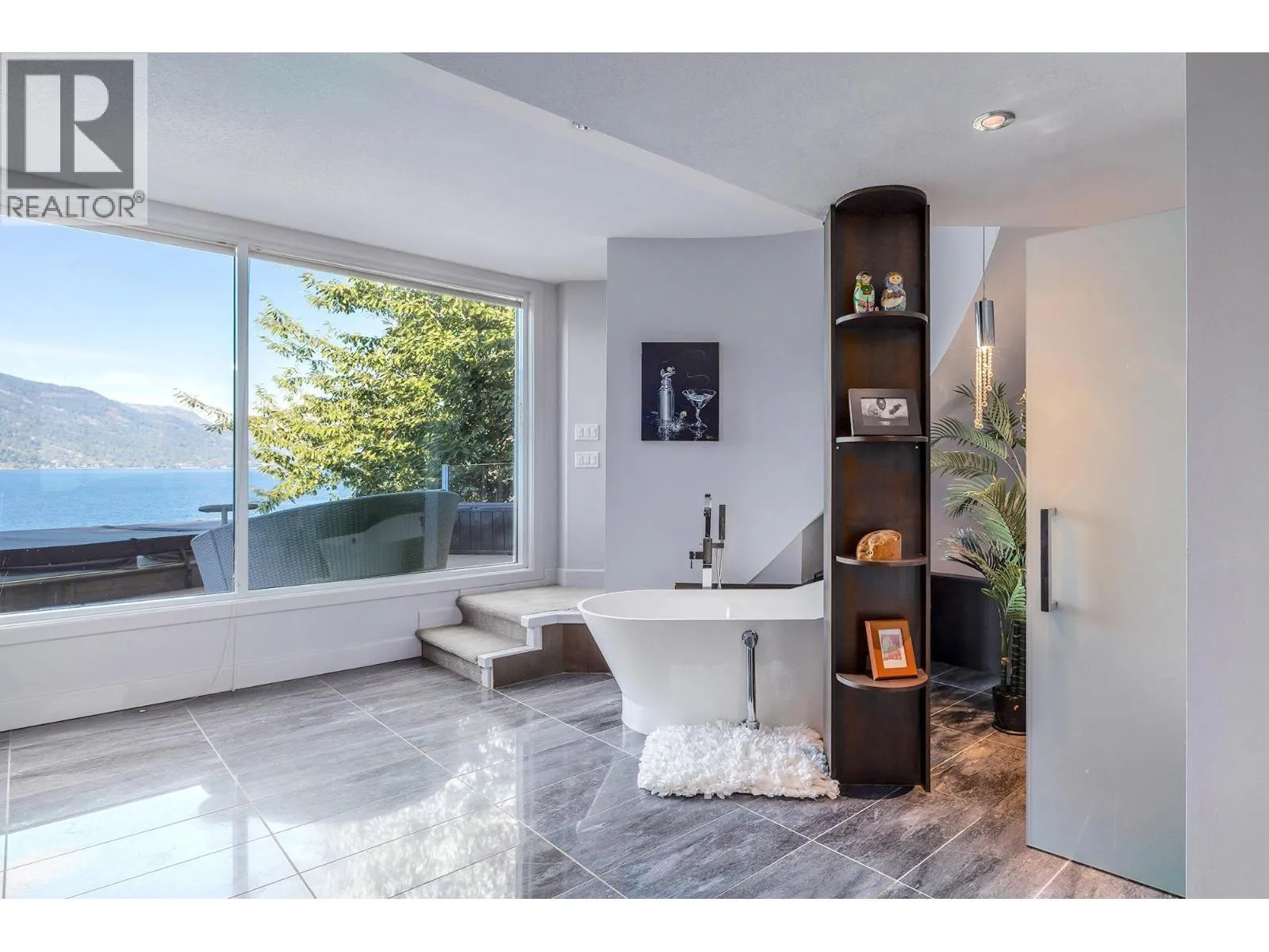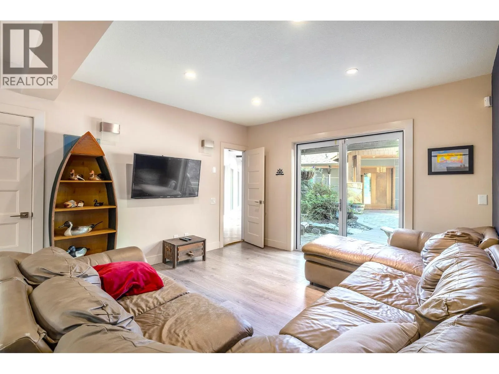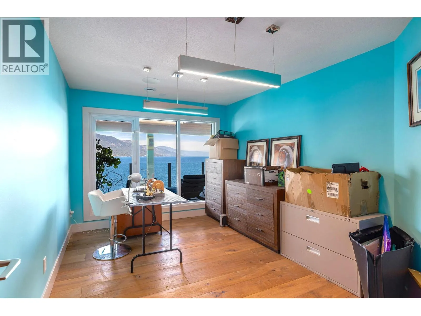 A Seamless Blend of Architecture and Nature with Panoramic Lake Views Perfectly integrated into the landscape, this stunning lakeside home captures the essence of Okanagan livingâideal as a summer escape or year-round retreat. With two spacious levels, approx. 2,000 sq. ft. of patio space, and a private wharf, it's built for lakeside enjoyment. Inside, a sun-filled, modern interior features floor-to-ceiling windows that frame breathtaking views. The chefâs kitchen boasts an illuminated live-edge island, Wolf appliances, a wine fridge, and Dacor wine station. A unique circular open fire pit anchors the living room, while the expansive wraparound patio offers glass railings, multiple lounging areas, and a mini putting green. The lower level includes four bedrooms, a luxurious primary suite with 6-piece en suite, a gym, home theatre, office, and patio with hot tub. At the waterâs edge, an aluminum dock includes a boat lift and dual Sea-Doo lift. The four-car tandem garage includes an extra-tall bay for RV or boat storage. A separate two-bedroom in-law suite, connected via hallway, offers excellent privacy. Located in McKinley Landing, just minutes from Kelowna International Airport, UBCO, Okanagan Golf Club, and downtown Kelowna. (id:27476)