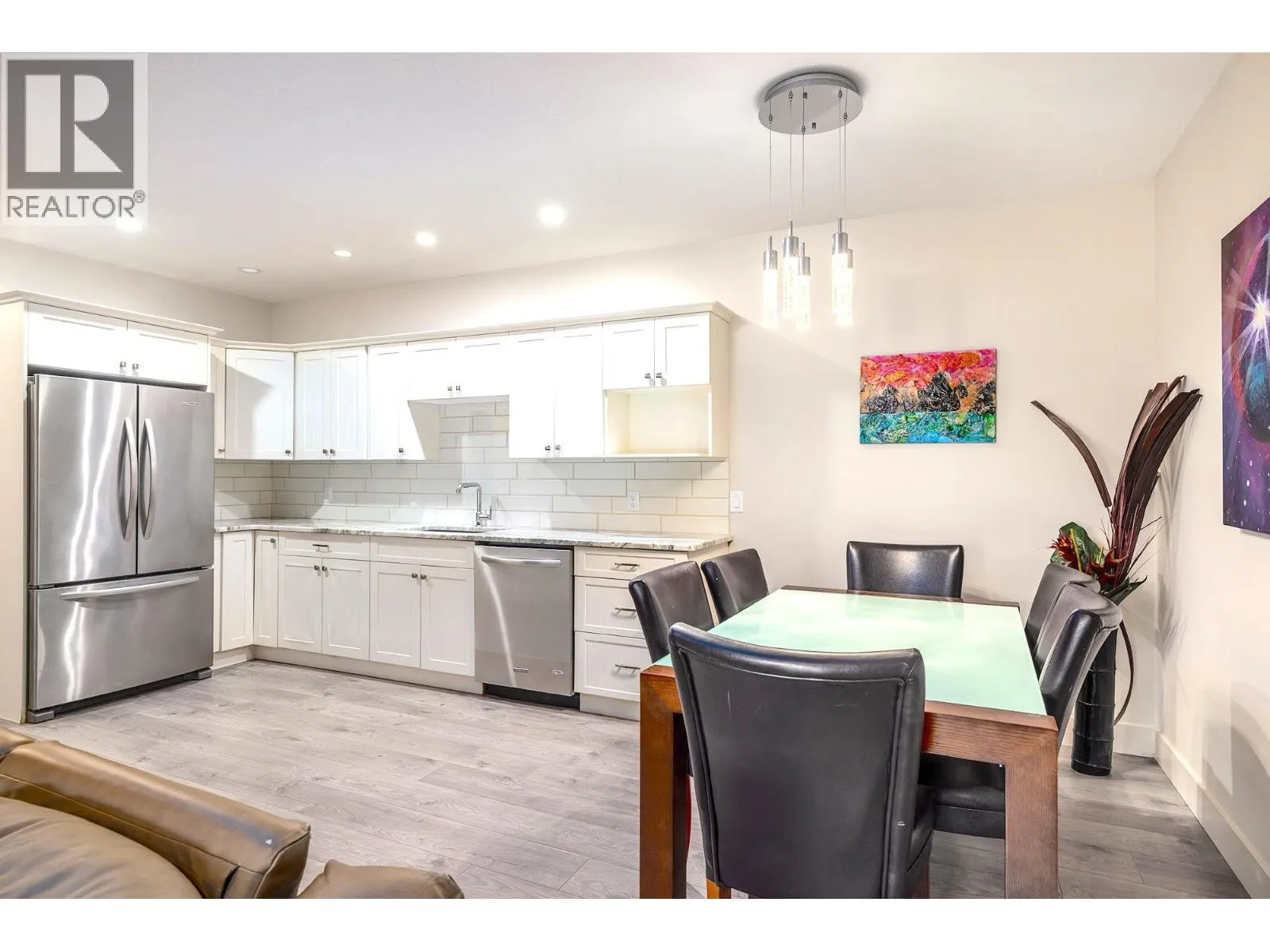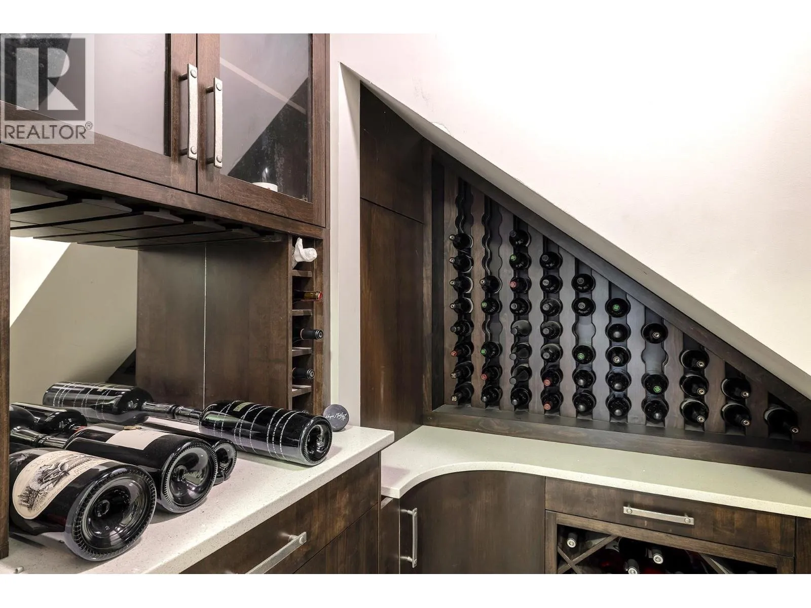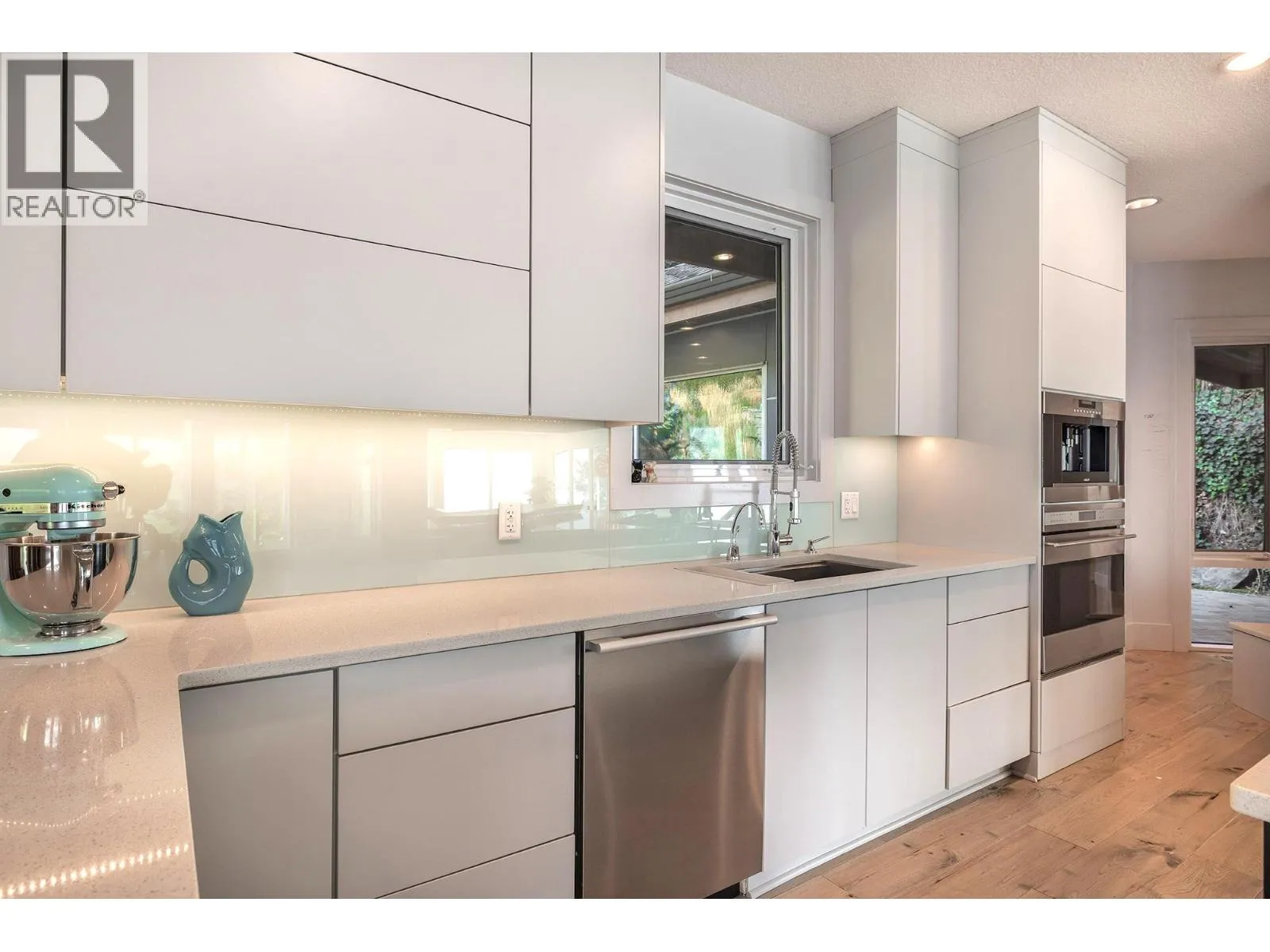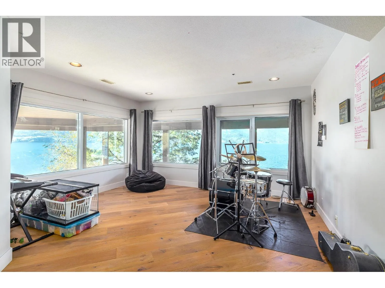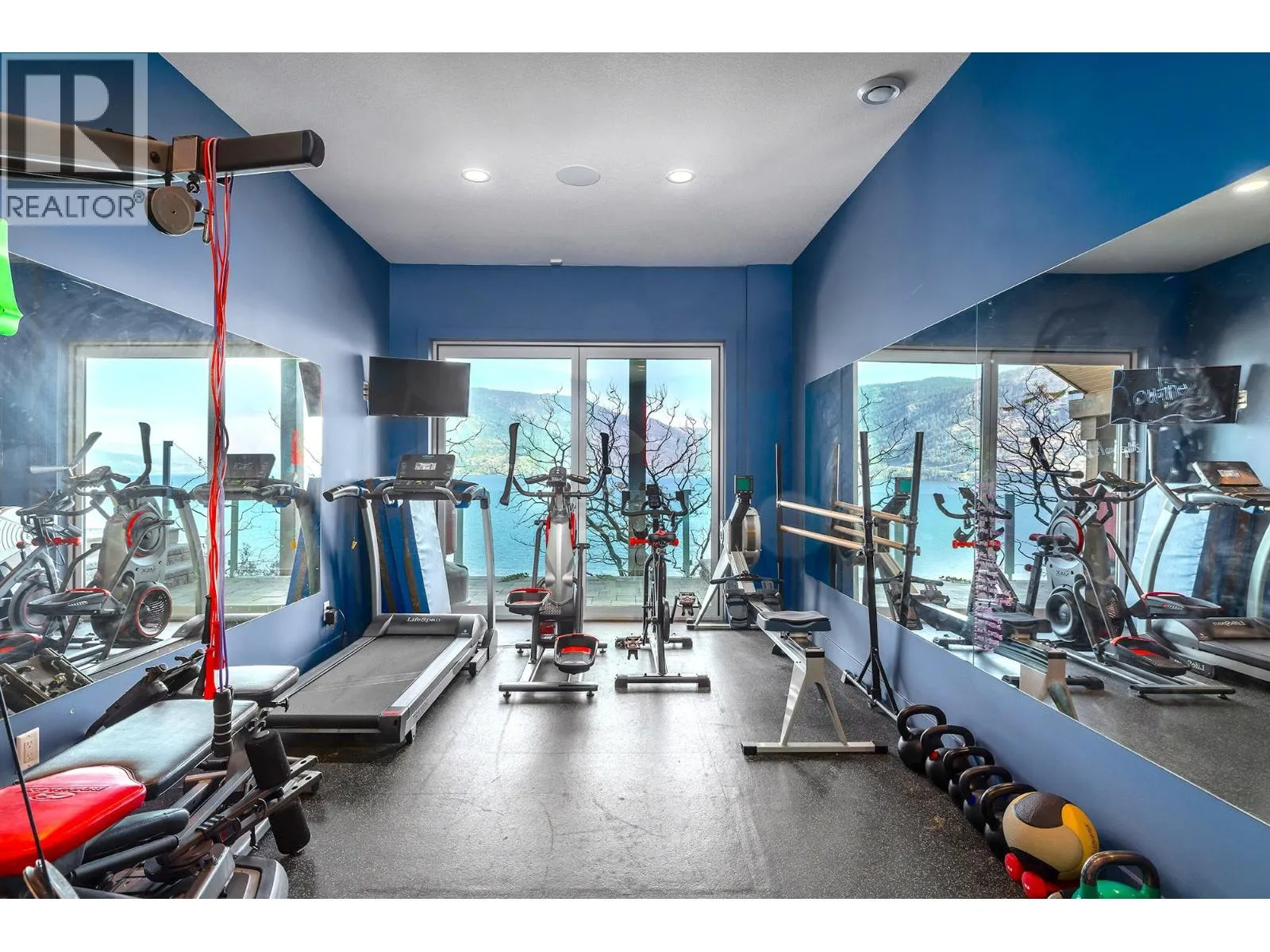 A Seamless Blend of Architecture and Nature with Panoramic Lake Views Perfectly integrated into the landscape, this stunning lakeside home captures the essence of Okanagan livingâideal as a summer escape or year-round retreat. With two spacious levels, approx. 2,000 sq. ft. of patio space, and a private wharf, it's built for lakeside enjoyment. Inside, a sun-filled, modern interior features floor-to-ceiling windows that frame breathtaking views. The chefâs kitchen boasts an illuminated live-edge island, Wolf appliances, a wine fridge, and Dacor wine station. A unique circular open fire pit anchors the living room, while the expansive wraparound patio offers glass railings, multiple lounging areas, and a mini putting green. The lower level includes four bedrooms, a luxurious primary suite with 6-piece en suite, a gym, home theatre, office, and patio with hot tub. At the waterâs edge, an aluminum dock includes a boat lift and dual Sea-Doo lift. The four-car tandem garage includes an extra-tall bay for RV or boat storage. A separate two-bedroom in-law suite, connected via hallway, offers excellent privacy. Located in McKinley Landing, just minutes from Kelowna International Airport, UBCO, Okanagan Golf Club, and downtown Kelowna. (id:27476)