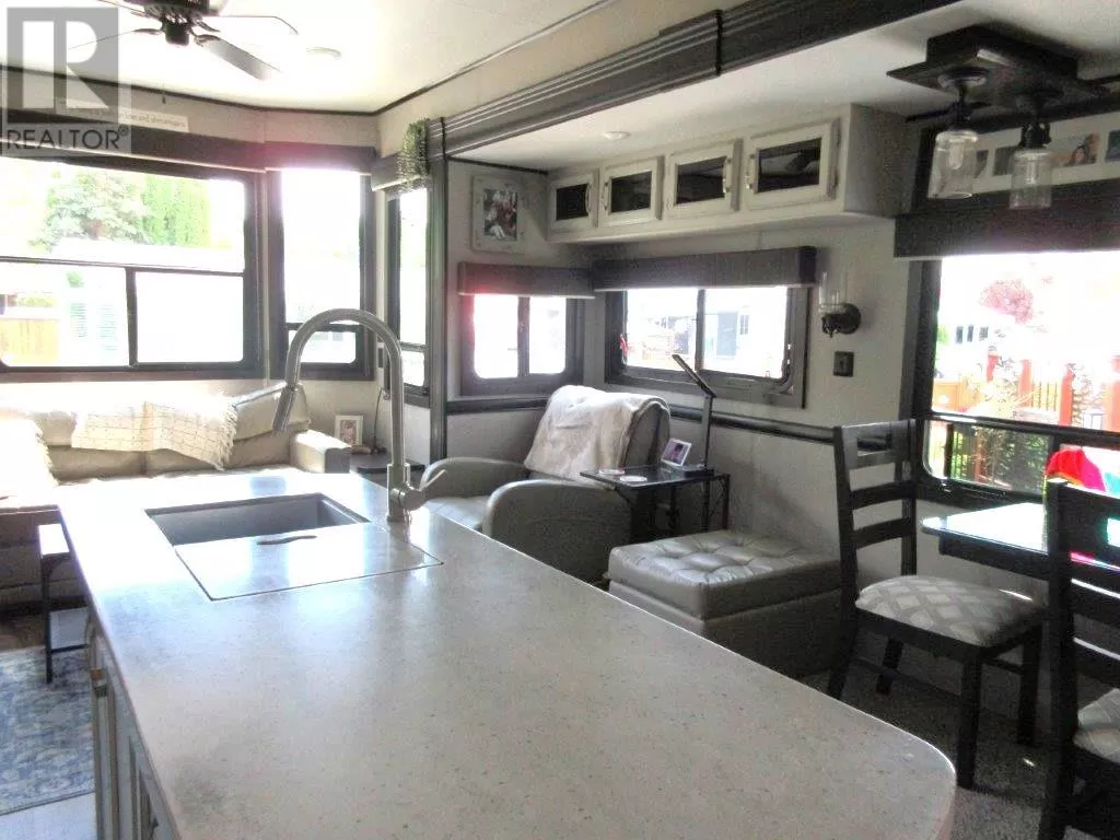 Privacy abounds in this large Park Model corner lot with cedar fencing all around. The large deck side yard fenced in and ready for entertaining. The Park Model is immaculate featuring numerous upgrades! There are 2 furnaces and air conditioners which is priceless especially on the hot summer days. There is a water filtration system through the entire living space with a WIFI controlled shut-off system. The sunroom has been professionally built. The skirting is constructed with 2x2 framing, 2"" of insulation, with 6 mm vapour barrier underneath the vinyl siding. The Park Model is immaculate with 1 bedroom on the main floor and a loft area upstairs which is great for company or added storage. Gorgeous flower garden that has an automatic watering system installed. Lots of parking. Close to the golf course and Recreation complex where you will find the indoor pool, hot tub, gym, hair salon, washrooms and sauna. Other amenities in Holiday Park Resort are pickleball court, pools, hot tubs, library, games room, shuffleboard, woodworking shop. Lease to 2046 which is registered with the Federal Government. Site price is $145,000; Unit price is $130,000. No Property Transfer Tax. Long and short term rentals allowed. Pet friendly park includes an fenced in, off-leash dog park. (id:27476)