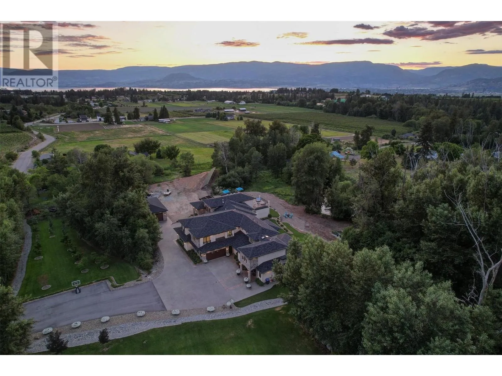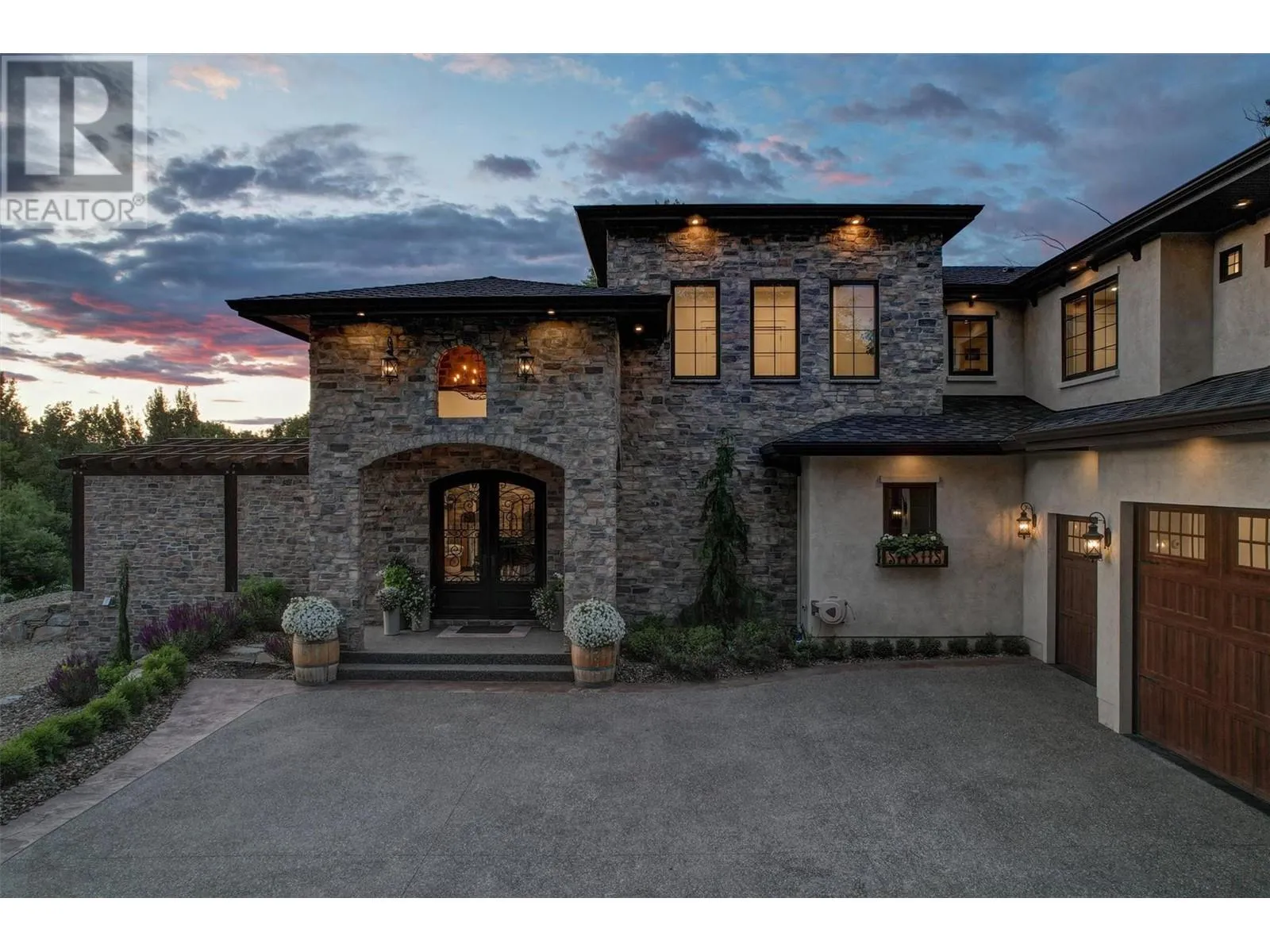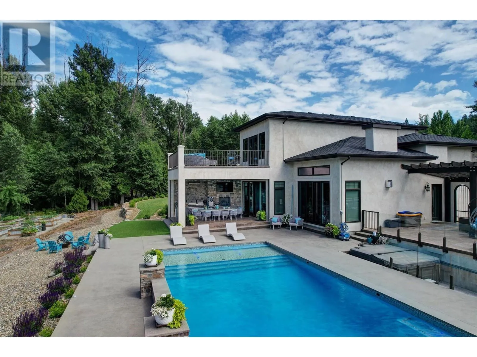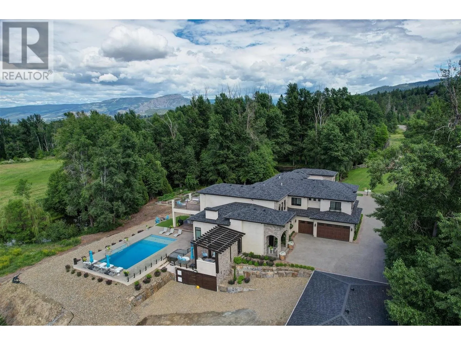Picturesque estate in Southeast Kelowna resting on approximately 7+ pristine acres, with a Tuscan-inspired residence offering over 9000 sq. ft. of luxury living with 6 beds and 7 baths. This home has been uniquely divided into 2 separate living spaces, making it ideal for multi-generational living. Designed to be a private oasis for entertainment and tranquility, the property features a high-end concrete 20x40 saltwater pool with a Baja shelf, multiple patios for outdoor living with a fireplace & TV, an outdoor kitchen, a detached 25x40 shop, horse barn/paddock, raised garden boxes, and 3 ponds surrounding the yard, creating an exceptional ambiance. The main home has been beautifully designed for a large family; the upper level offers 4 beds, including a ""luxury hotel-like"" primary retreat with a spa-like ensuite. A custom media/home theatre and games room with deck access offer a high-end experience for the ""tech"" in the family. The separate accommodation offers quality finishes and a spacious design for the extended family/in-laws. This completely private space features 3 bedrooms, 3 bathrooms, an oversized garage, and a patio to enjoy the tranquility of the surrounding ponds. This is an excellent opportunity to enjoy a rural setting surrounded by vineyards, orchards, only minutes to Myra Canyon recreational park for hiking/biking, trail riding, and the City of Kelowna amenities. (id:27476)
