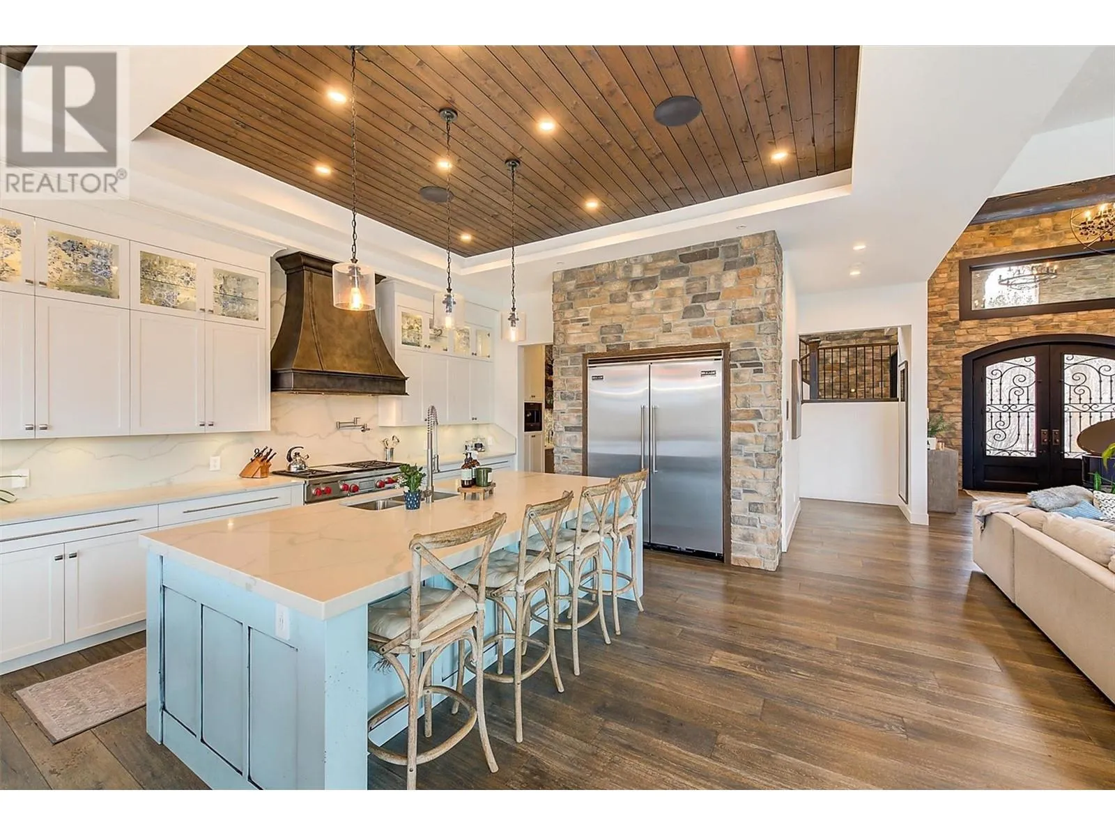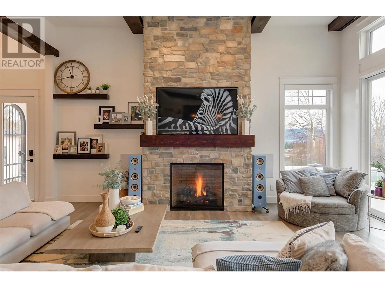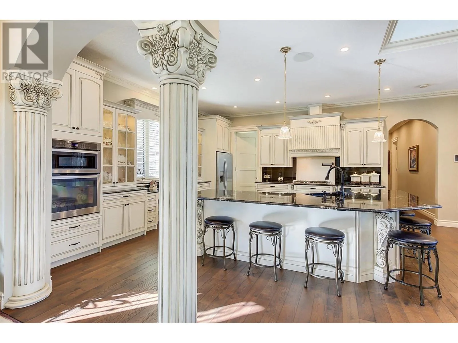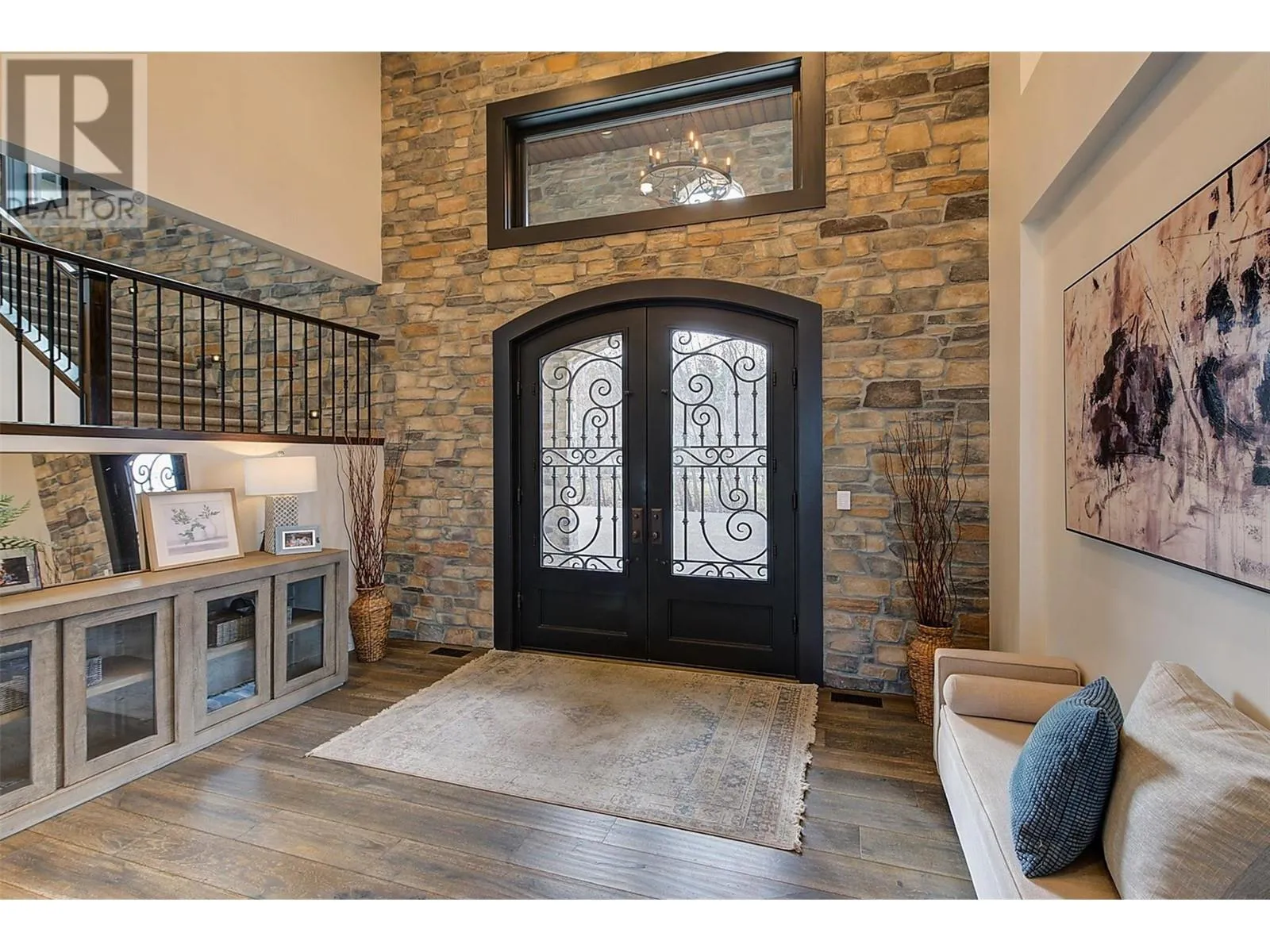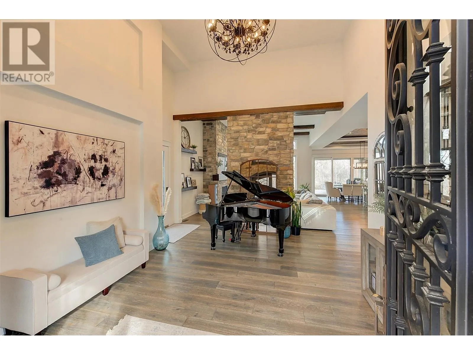 Picturesque estate in Southeast Kelowna resting on approximately 7+ pristine acres, with a Tuscan-inspired residence offering over 9000 sq. ft. of luxury living with 6 beds and 7 baths. This home has been uniquely divided into 2 separate living spaces, making it ideal for multi-generational living. Designed to be a private oasis for entertainment and tranquility, the property features a high-end concrete 20x40 saltwater pool with a Baja shelf, multiple patios for outdoor living with a fireplace & TV, an outdoor kitchen, a detached 25x40 shop, horse barn/paddock, raised garden boxes, and 3 ponds surrounding the yard, creating an exceptional ambiance. The main home has been beautifully designed for a large family; the upper level offers 4 beds, including a ""luxury hotel-like"" primary retreat with a spa-like ensuite. A custom media/home theatre and games room with deck access offer a high-end experience for the ""tech"" in the family. The separate accommodation offers quality finishes and a spacious design for the extended family/in-laws. This completely private space features 3 bedrooms, 3 bathrooms, an oversized garage, and a patio to enjoy the tranquility of the surrounding ponds. This is an excellent opportunity to enjoy a rural setting surrounded by vineyards, orchards, only minutes to Myra Canyon recreational park for hiking/biking, trail riding, and the City of Kelowna amenities. (id:27476)