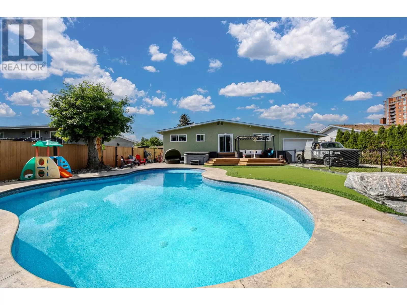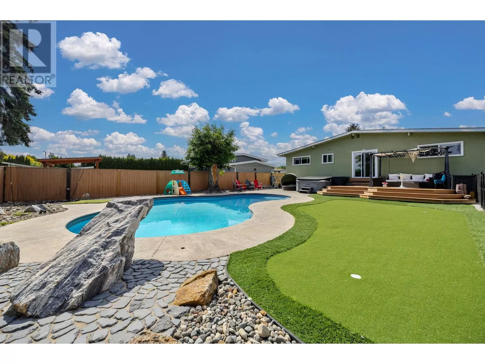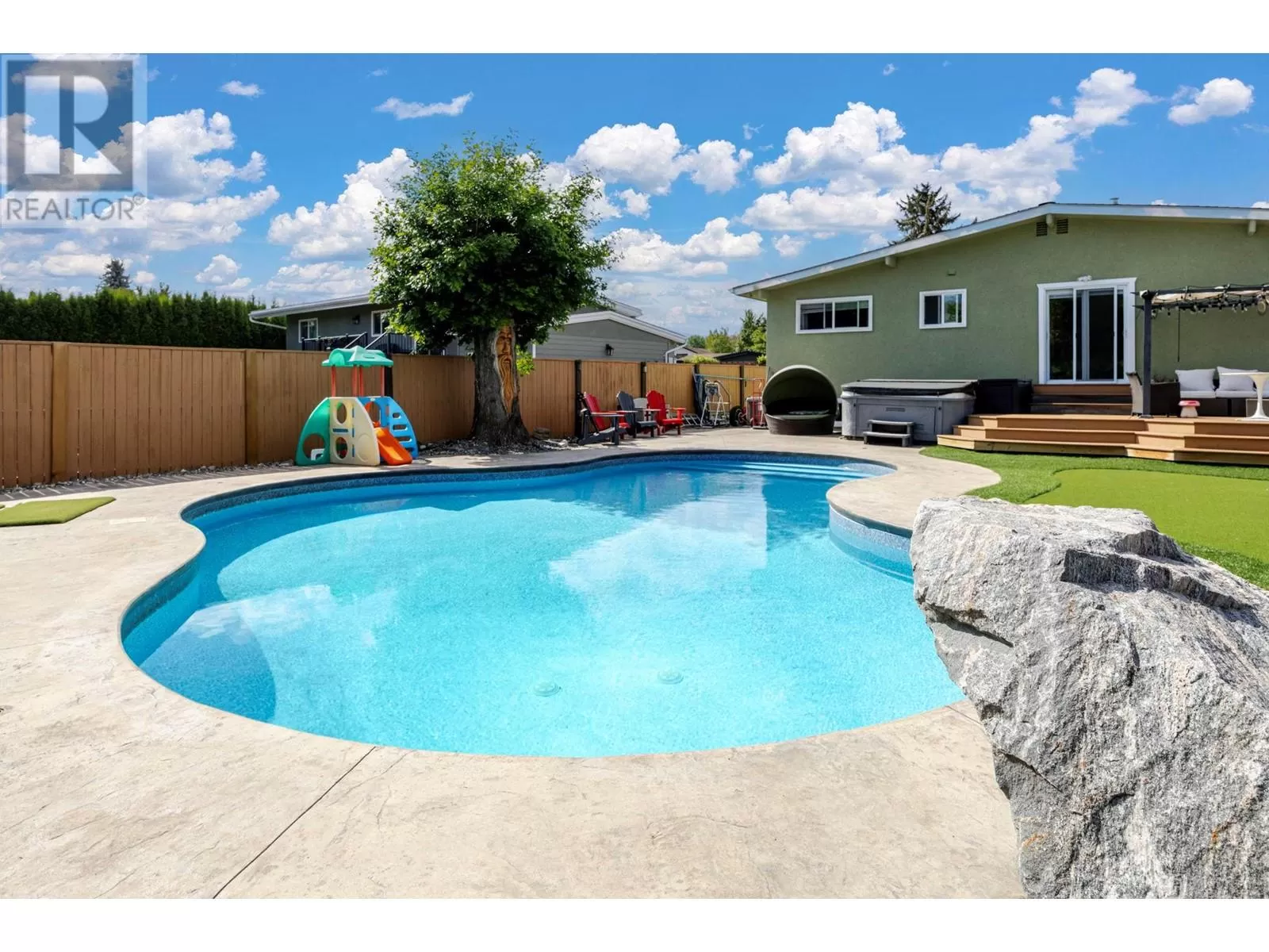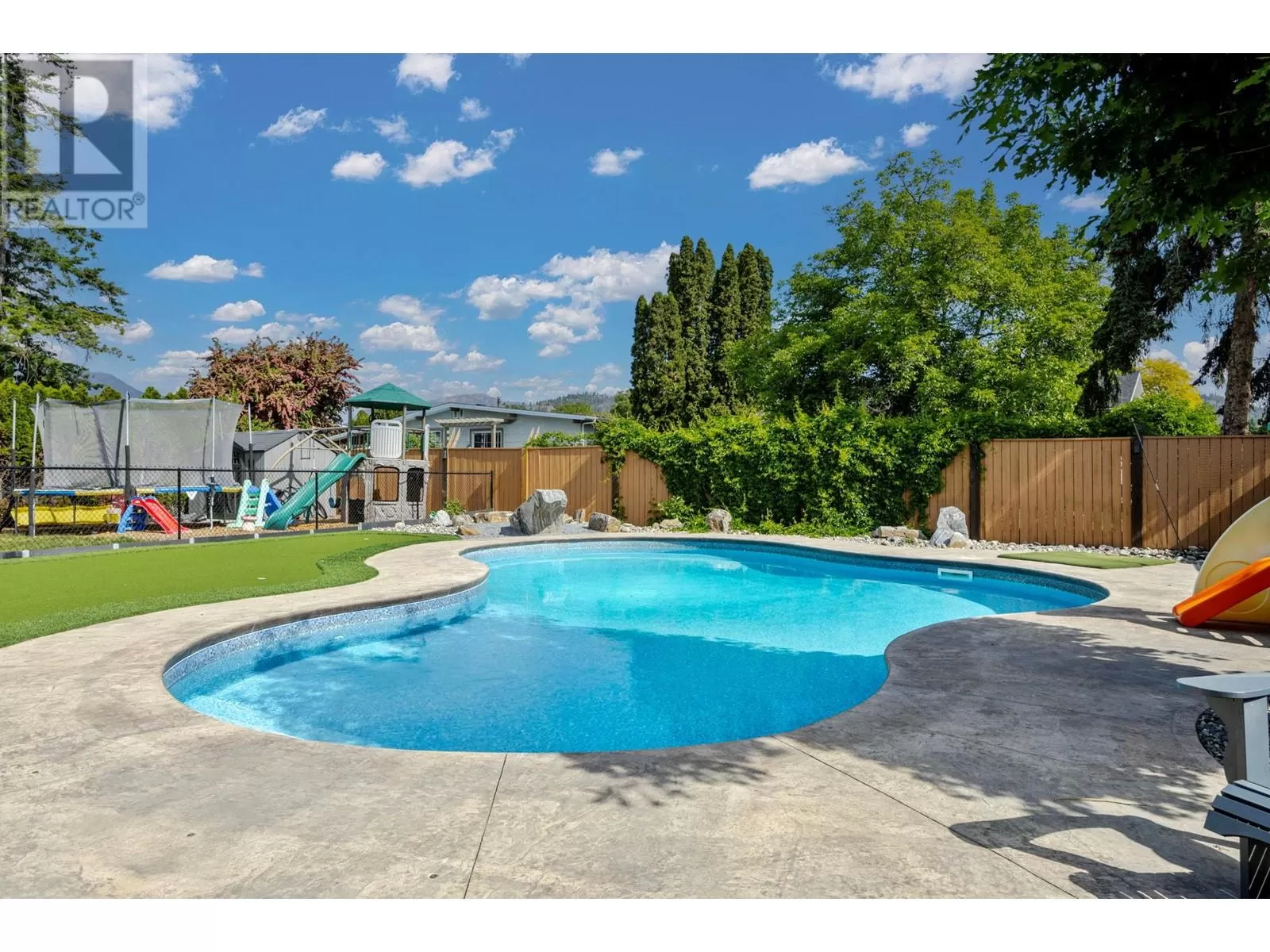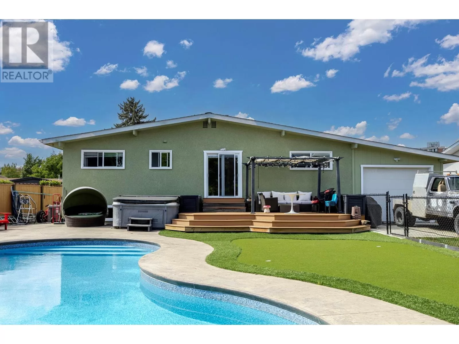 A Must See!! This fantastic family home has been completely updated. It features 5 bedroomsâ3 upstairs and 2 downstairs. The interior is bright, enhanced by a fresh coat of paint, and equipped with new appliances. Both bathrooms have been recently renovated. The open living space provides easy access to the backyard from the back of the house. Enjoy the large patio, perfect for soaking up the afternoon sun. The downstairs area has been recently finished and could easily be converted into a suite. You'll find a spacious living room complete with a wet bar and an exercise room. All windows have been newly installed, creating a bright above-ground atmosphere. There are 2 large bedrooms. The backyard is truly an oasis, featuring a large pool and hot tub surrounded by beautiful landscaping, including a putting green, a diving rock, and a beautifully carved old oak tree. The area is fenced off from the play astructure and trampoline. The drive-through garage provides extra vehicle parking off the street. Location is key!! Situated in the heart of Old Glenmore, it's just a short distance to downtown and all the amenities you could needârestaurants, beaches, and shopping. It's also close to a great elementary school, sports fields, and recreational facilities. Plus, you're near all transit options and the Okanagan Rail Trail, which offers easy access to Kelowna. Don't miss outâbook a private viewing now. (id:27476)