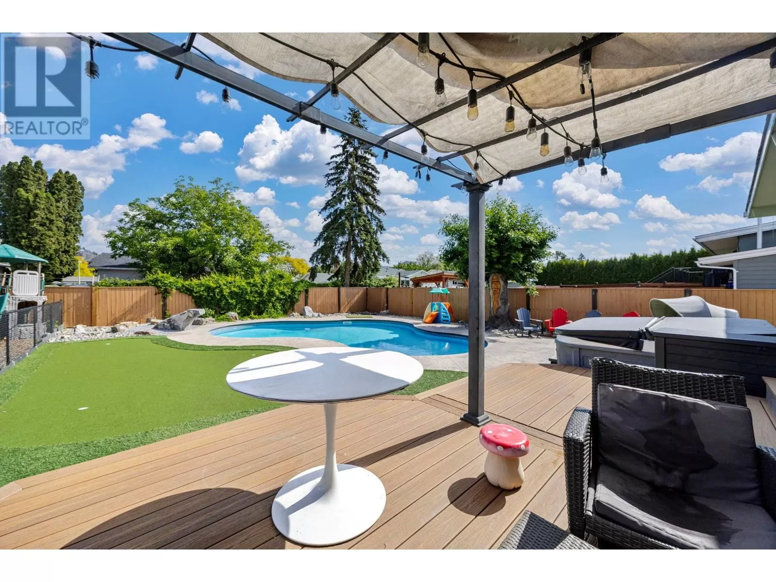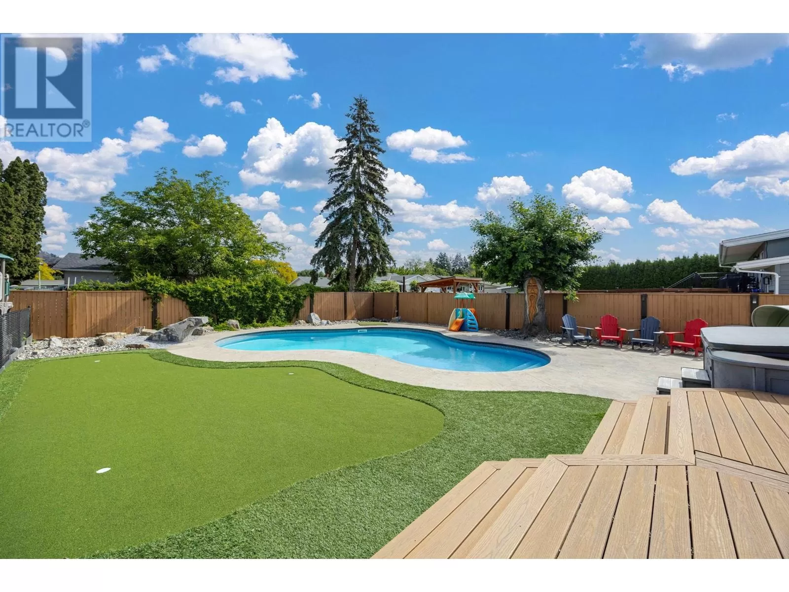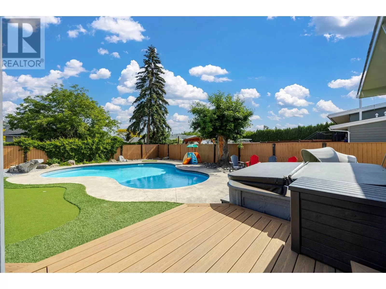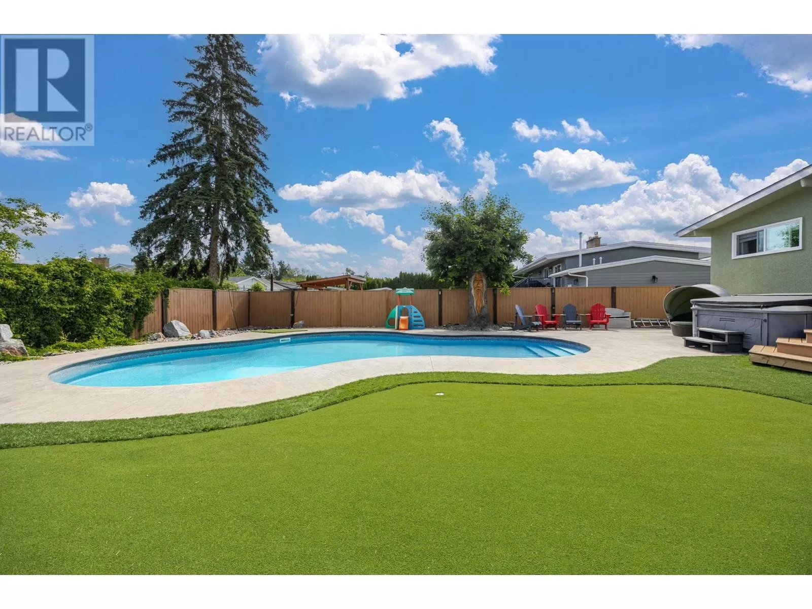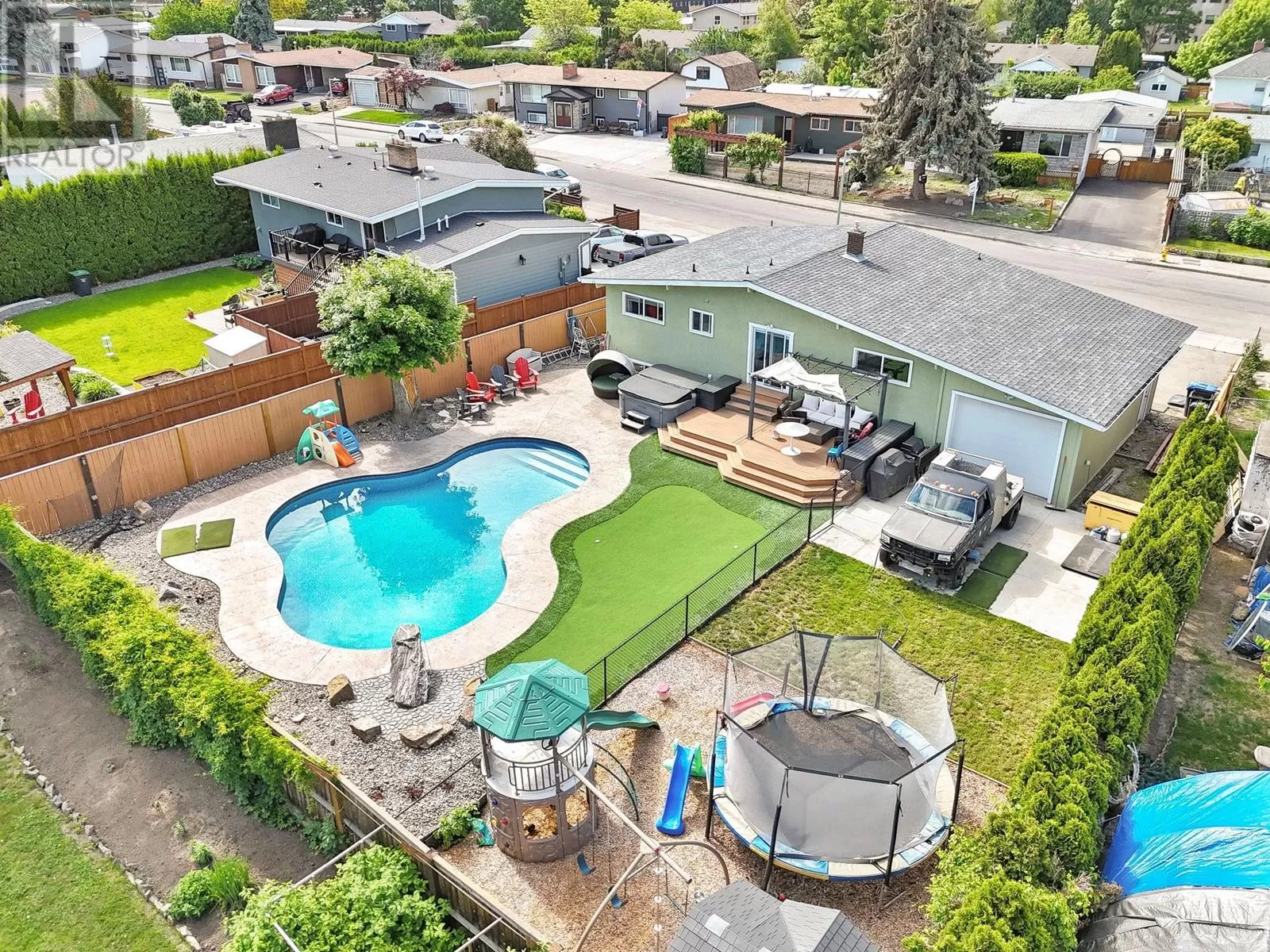 A Must See!! This fantastic family home has been completely updated. It features 5 bedroomsâ3 upstairs and 2 downstairs. The interior is bright, enhanced by a fresh coat of paint, and equipped with new appliances. Both bathrooms have been recently renovated. The open living space provides easy access to the backyard from the back of the house. Enjoy the large patio, perfect for soaking up the afternoon sun. The downstairs area has been recently finished and could easily be converted into a suite. You'll find a spacious living room complete with a wet bar and an exercise room. All windows have been newly installed, creating a bright above-ground atmosphere. There are 2 large bedrooms. The backyard is truly an oasis, featuring a large pool and hot tub surrounded by beautiful landscaping, including a putting green, a diving rock, and a beautifully carved old oak tree. The area is fenced off from the play astructure and trampoline. The drive-through garage provides extra vehicle parking off the street. Location is key!! Situated in the heart of Old Glenmore, it's just a short distance to downtown and all the amenities you could needârestaurants, beaches, and shopping. It's also close to a great elementary school, sports fields, and recreational facilities. Plus, you're near all transit options and the Okanagan Rail Trail, which offers easy access to Kelowna. Don't miss outâbook a private viewing now. (id:27476)