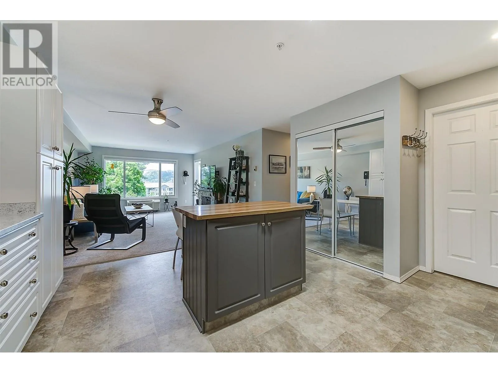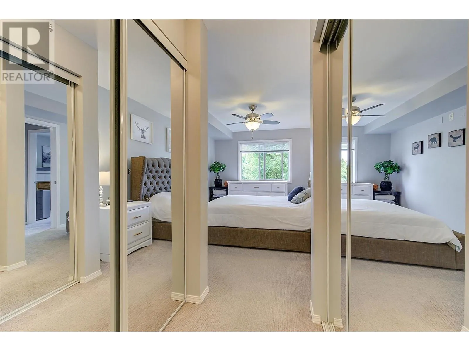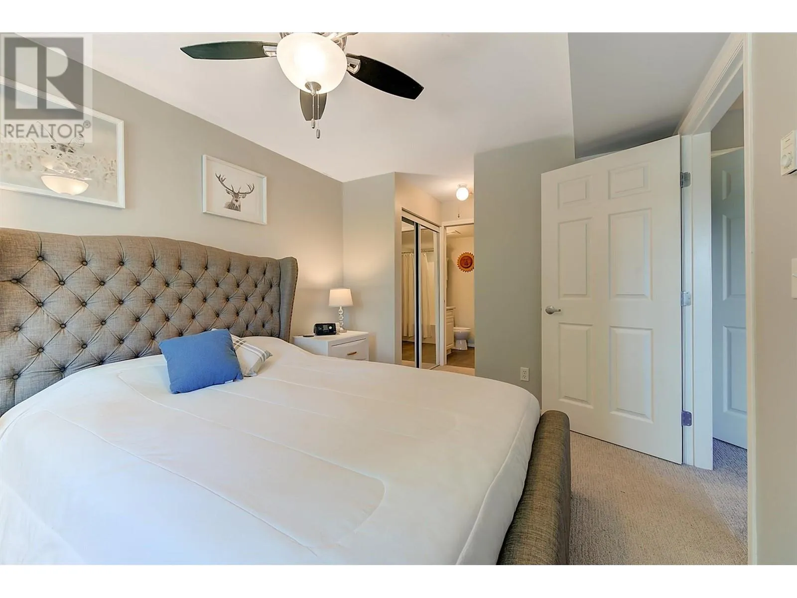 Welcome to The Bench IIâa well-cared-for and centrally located 55+ community just steps from shopping, services, and transit. This bright and spacious suite features large windows, newer carpet in the living room and hallway, an electric fireplace for added comfort, and two generously sized bedrooms, including a spacious primary with a walk-through closet and full ensuite. Relax on the covered west-facing deck and take in the summer sunsets over Dilworth Mountain. The kitchen is both functional and inviting, offering ample cabinet and drawer space, along with a central island topped with a butcher block counter ~ perfect for casual dining and entertaining. Additional highlights include a secure storage locker, a designated parking stall, and access to a guest suite. Enjoy social time and events with neighbours in the large common room, perfect for gatherings and community connection. Conveniently located within walking distance to a grocery store, post office, restaurants, medical offices, hair salon, and more. The Bench II is pet-friendly (1 pet up to 12"" at the shoulder), rental-friendly, and offers RV parking for residents. A fantastic opportunity to own in this desirable communityâcall today for more details! (id:27476)