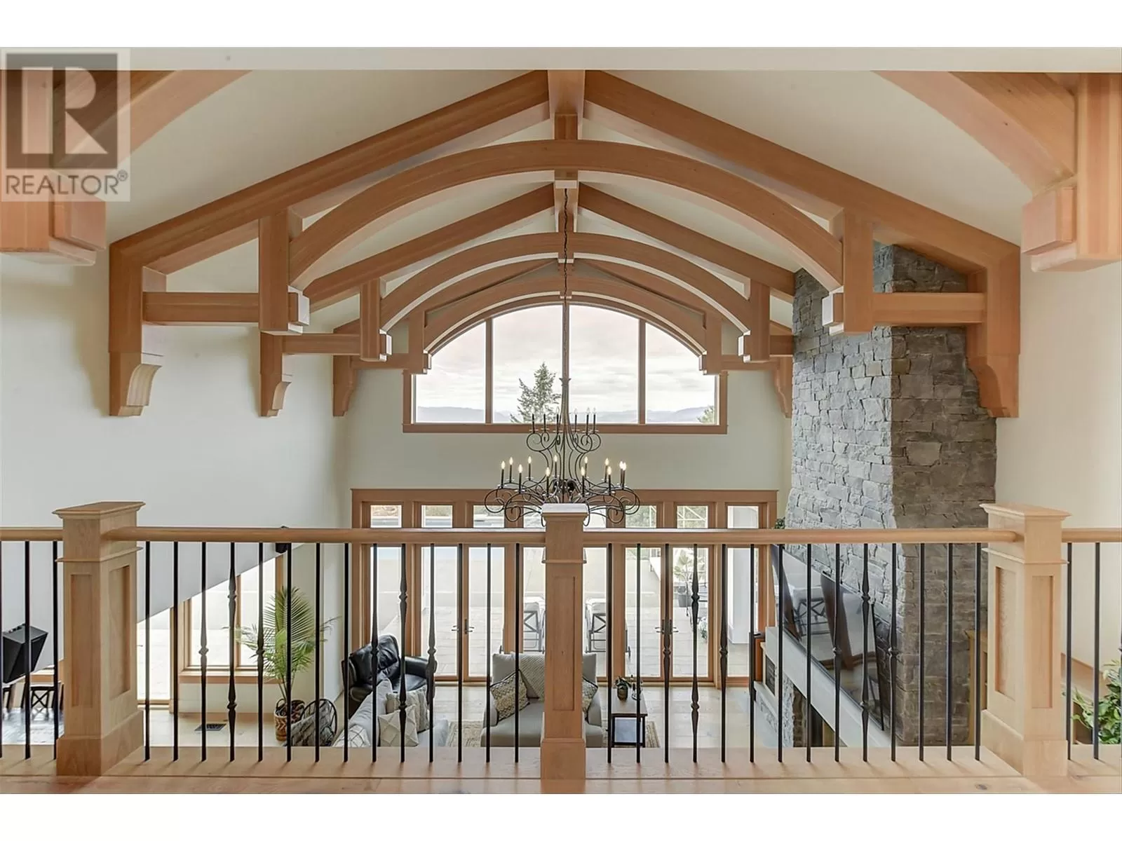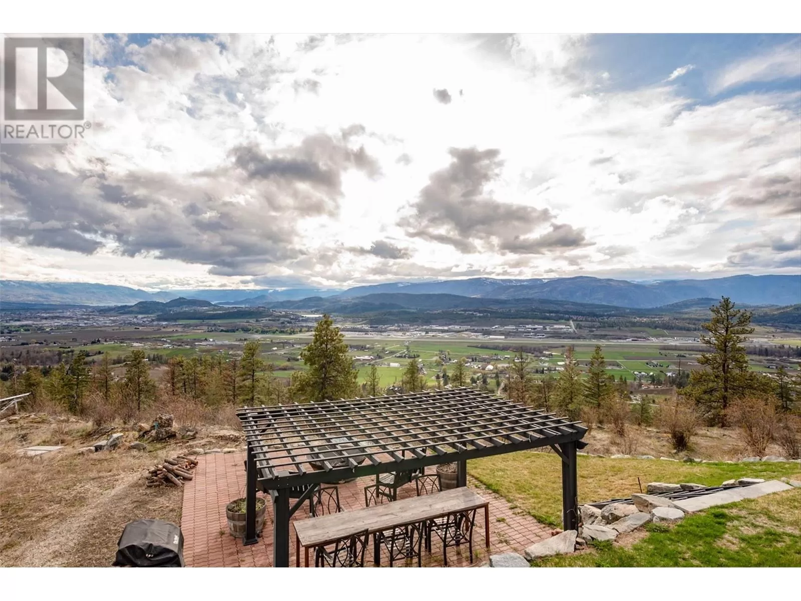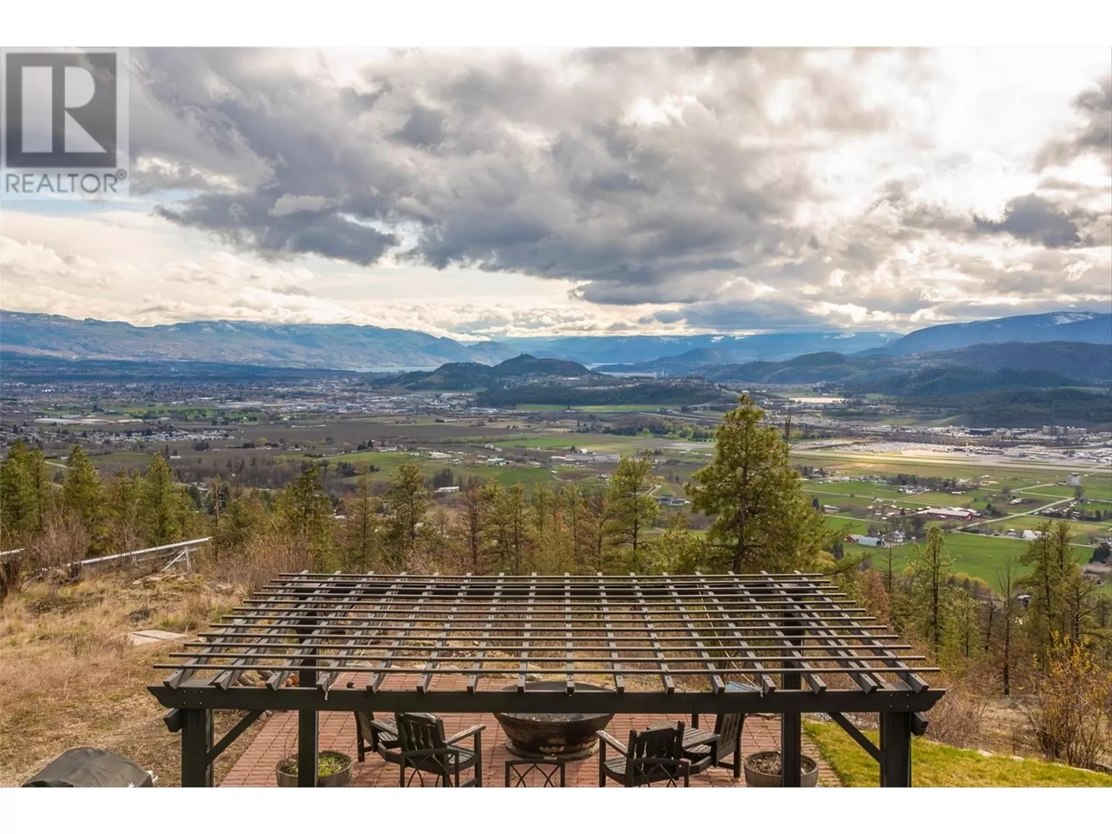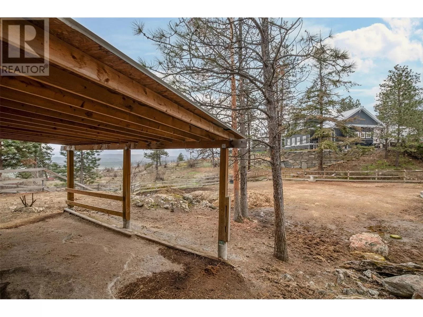 Discover this exceptional 10.14-acre property offering breathtaking views of the valley, Okanagan Lake, Duck Lake, city lights, and the Kelowna International Airport. Nestled in a peaceful and private setting, this beautifully maintained property features a bright and spacious 6-bedroom + Den home. The expansive living and entertainment areas are highlighted by 2 wood fireplaces and panoramic picture windows that capture the stunning natural surroundings. The kitchen and living areas flow seamlessly into the outside pool area, perfect for relaxing or entertaining guests. Ideal for hobbyists and creatives alike, there is a detached 2-car garage plus an attached 4-bay garage. The property includes a solar system to offset summer electrical costs, and geothermal heating/cooling. Equestrian/Outdoor enthusiasts will appreciate the riding arena with barn and two paddocks, two peaceful bluff lookouts, trails leading to the lower portion of the property, and nearby access to horse and off-road trails just 10 minutes away. Architectural plans for a potential carriage house are also available. There is potential to build a second dwelling (Buyer to confirm their plans with RDCO). Conveniently located on a school bus route, this property is just minutes from Kelowna Airport, UBC Okanagan, and only 15 minutes to Orchard Park Mall and downtown Kelowna. This one-of-a-kind property is easy to show and offers the perfect blend of privacy, convenience, and breathtaking natural beauty. (id:27476)