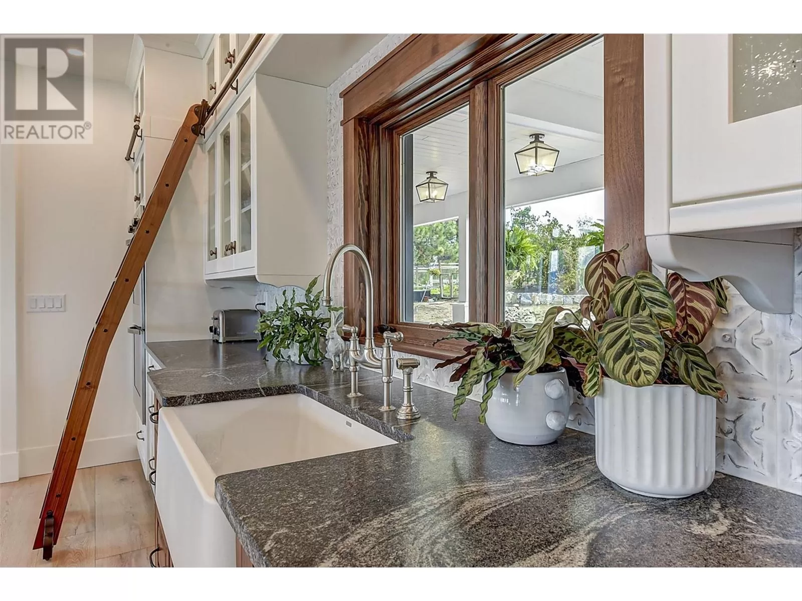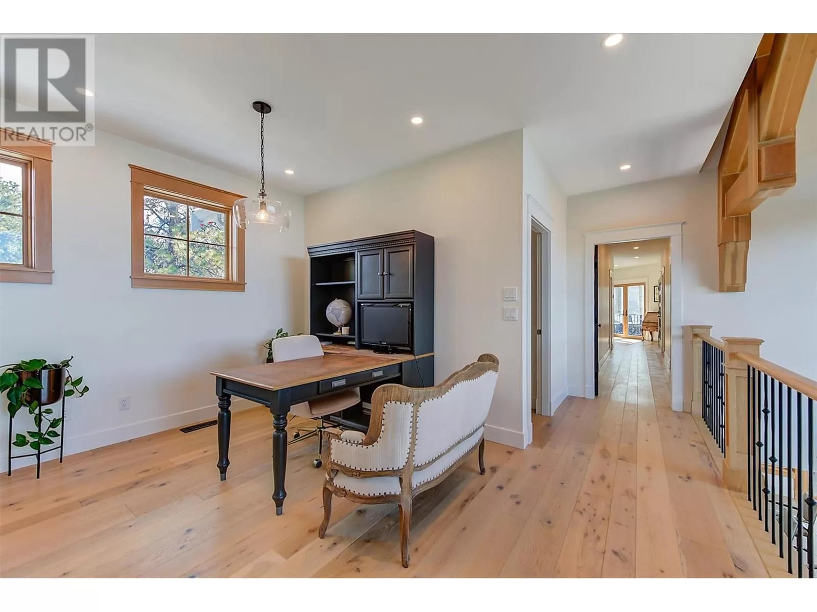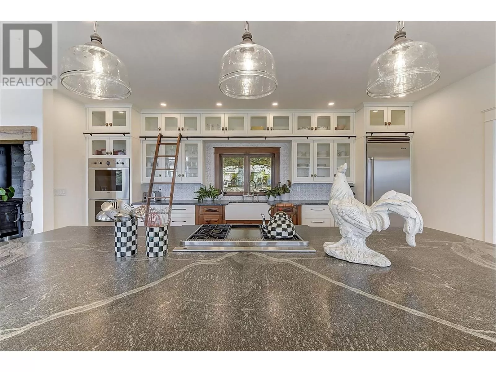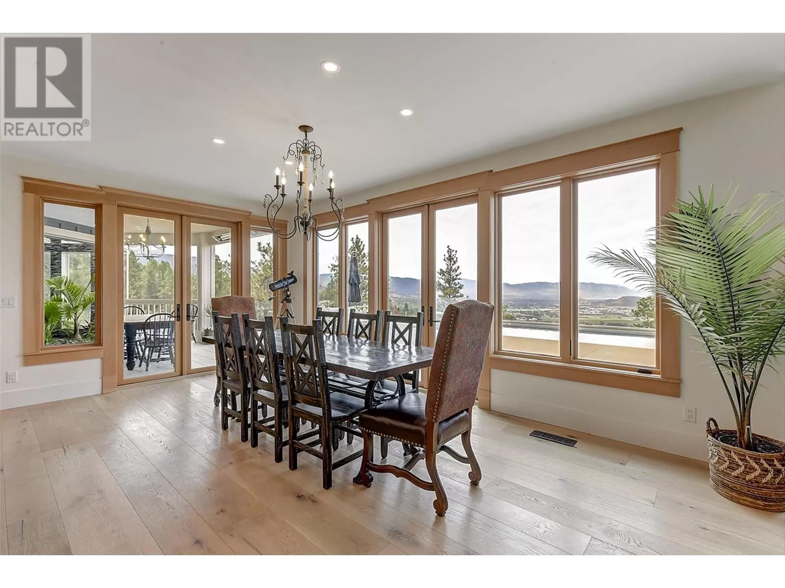 Discover this exceptional 10.14-acre property offering breathtaking views of the valley, Okanagan Lake, Duck Lake, city lights, and the Kelowna International Airport. Nestled in a peaceful and private setting, this beautifully maintained property features a bright and spacious 6-bedroom + Den home. The expansive living and entertainment areas are highlighted by 2 wood fireplaces and panoramic picture windows that capture the stunning natural surroundings. The kitchen and living areas flow seamlessly into the outside pool area, perfect for relaxing or entertaining guests. Ideal for hobbyists and creatives alike, there is a detached 2-car garage plus an attached 4-bay garage. The property includes a solar system to offset summer electrical costs, and geothermal heating/cooling. Equestrian/Outdoor enthusiasts will appreciate the riding arena with barn and two paddocks, two peaceful bluff lookouts, trails leading to the lower portion of the property, and nearby access to horse and off-road trails just 10 minutes away. Architectural plans for a potential carriage house are also available. There is potential to build a second dwelling (Buyer to confirm their plans with RDCO). Conveniently located on a school bus route, this property is just minutes from Kelowna Airport, UBC Okanagan, and only 15 minutes to Orchard Park Mall and downtown Kelowna. This one-of-a-kind property is easy to show and offers the perfect blend of privacy, convenience, and breathtaking natural beauty. (id:27476)
