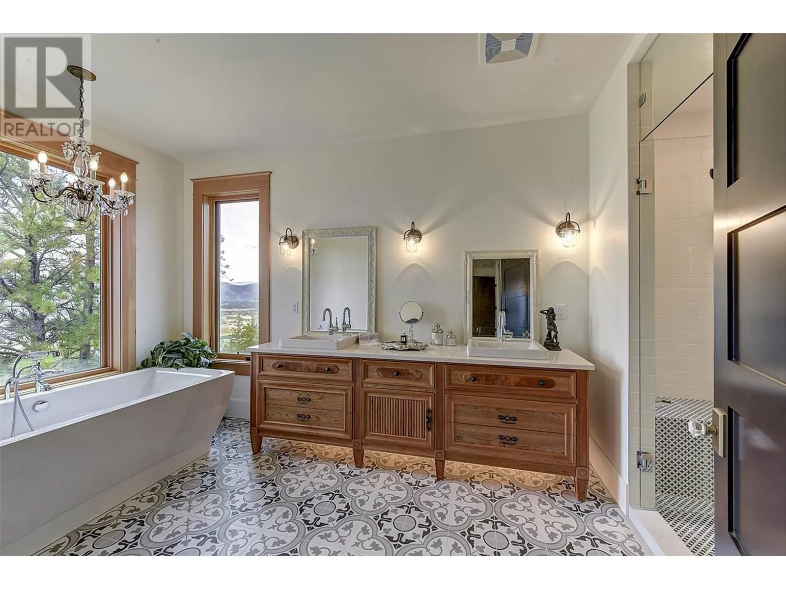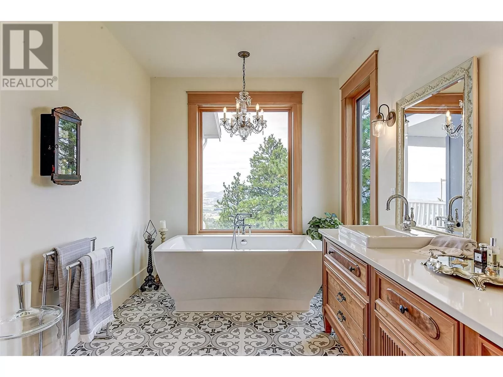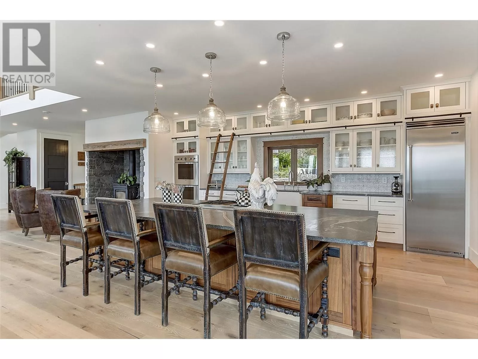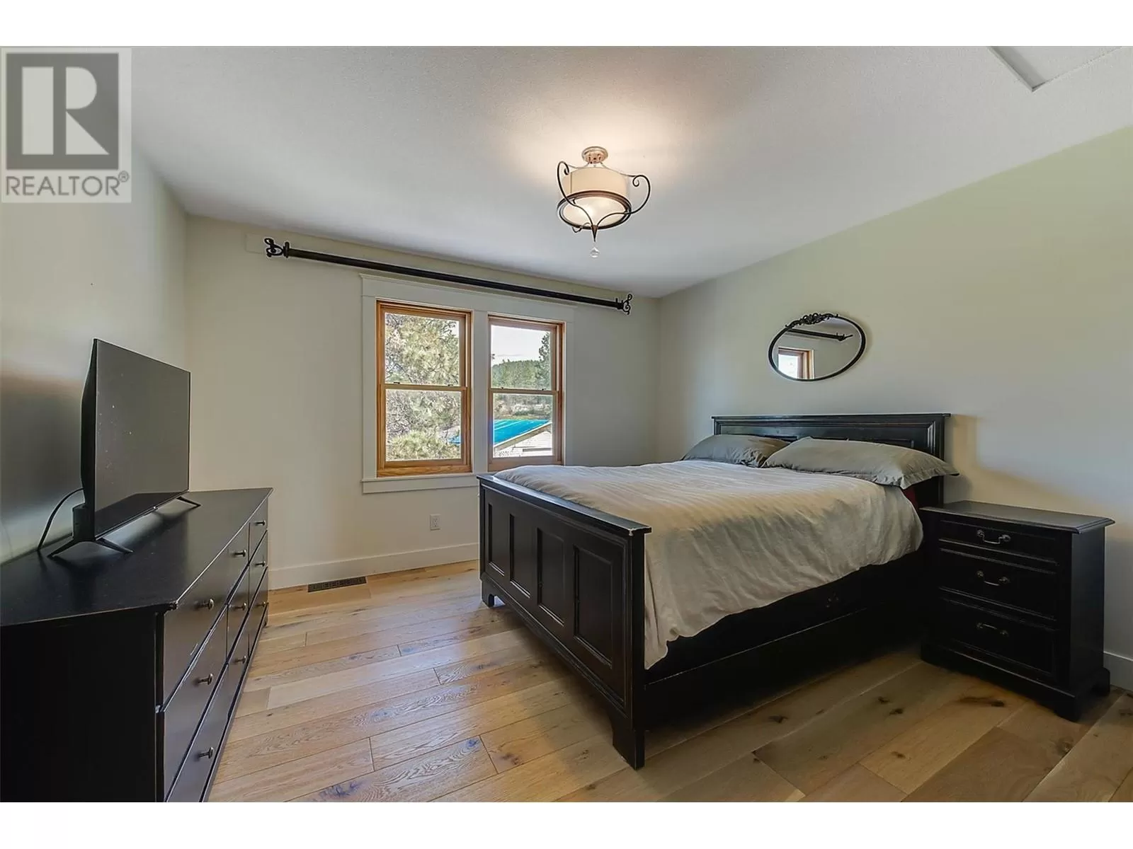 Discover this exceptional 10.14-acre property offering breathtaking views of the valley, Okanagan Lake, Duck Lake, city lights, and the Kelowna International Airport. Nestled in a peaceful and private setting, this beautifully maintained property features a bright and spacious 6-bedroom + Den home. The expansive living and entertainment areas are highlighted by 2 wood fireplaces and panoramic picture windows that capture the stunning natural surroundings. The kitchen and living areas flow seamlessly into the outside pool area, perfect for relaxing or entertaining guests. Ideal for hobbyists and creatives alike, there is a detached 2-car garage plus an attached 4-bay garage. The property includes a solar system to offset summer electrical costs, and geothermal heating/cooling. Equestrian/Outdoor enthusiasts will appreciate the riding arena with barn and two paddocks, two peaceful bluff lookouts, trails leading to the lower portion of the property, and nearby access to horse and off-road trails just 10 minutes away. Architectural plans for a potential carriage house are also available. There is potential to build a second dwelling (Buyer to confirm their plans with RDCO). Conveniently located on a school bus route, this property is just minutes from Kelowna Airport, UBC Okanagan, and only 15 minutes to Orchard Park Mall and downtown Kelowna. This one-of-a-kind property is easy to show and offers the perfect blend of privacy, convenience, and breathtaking natural beauty. (id:27476)