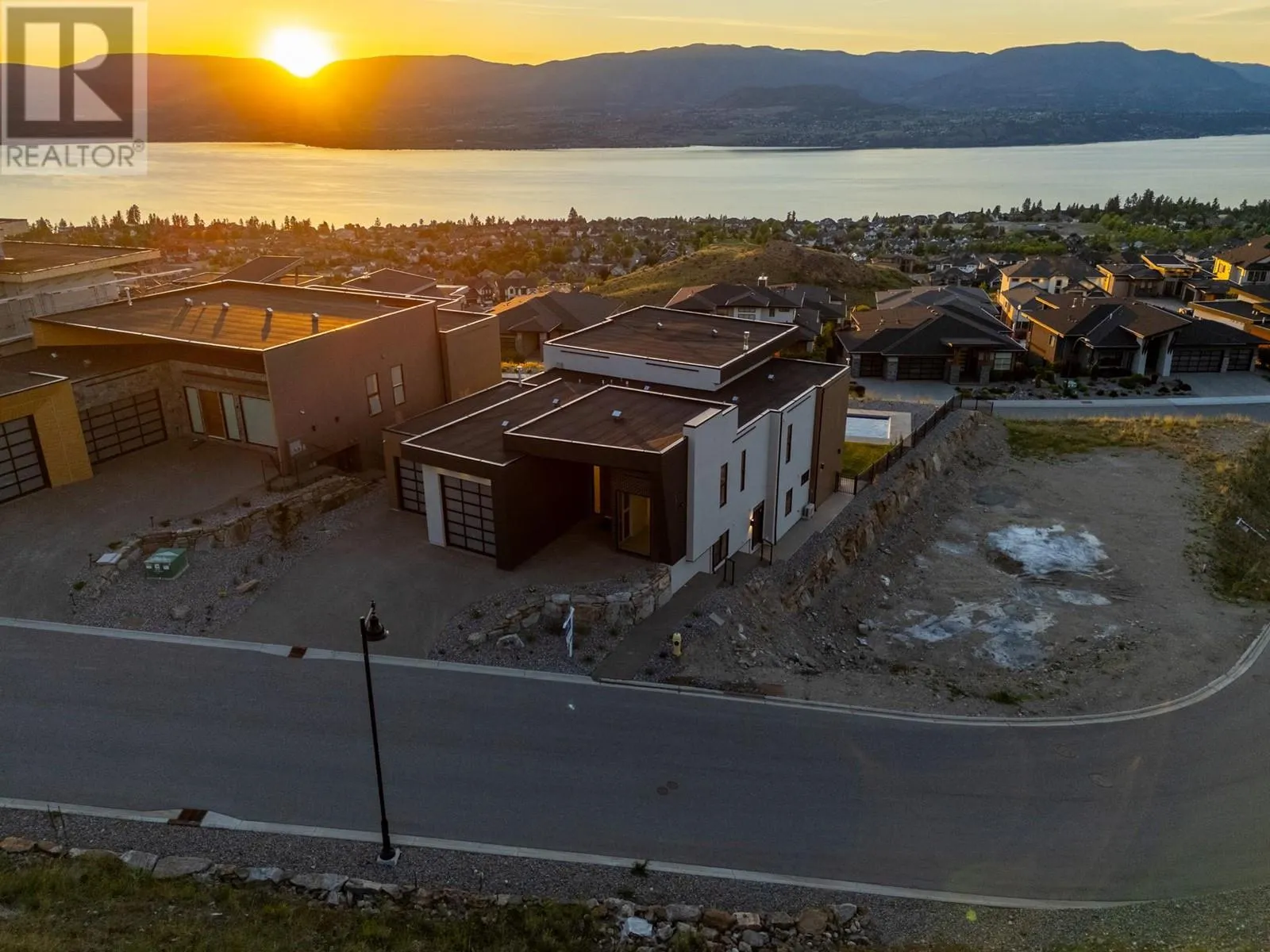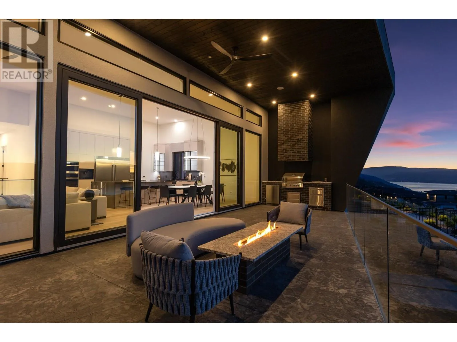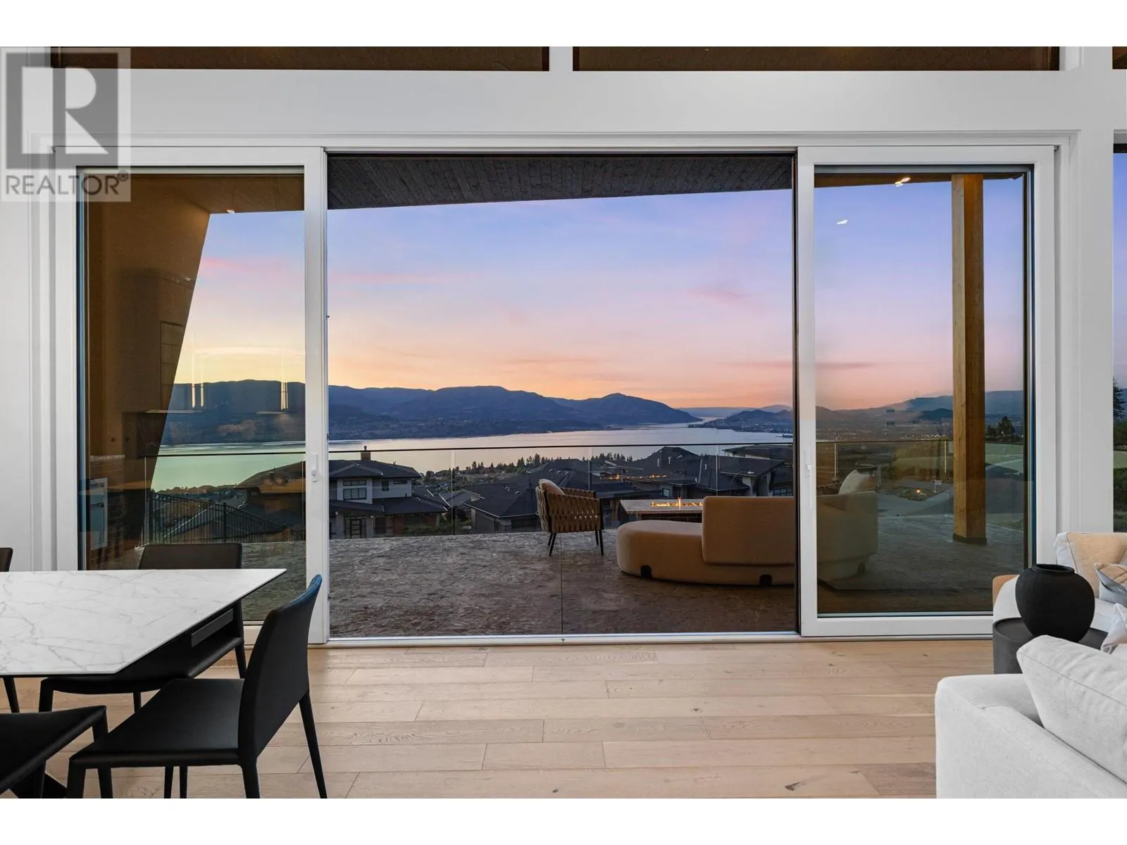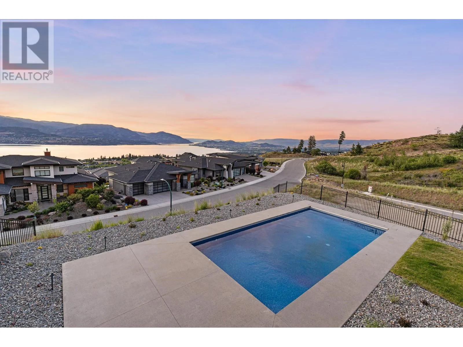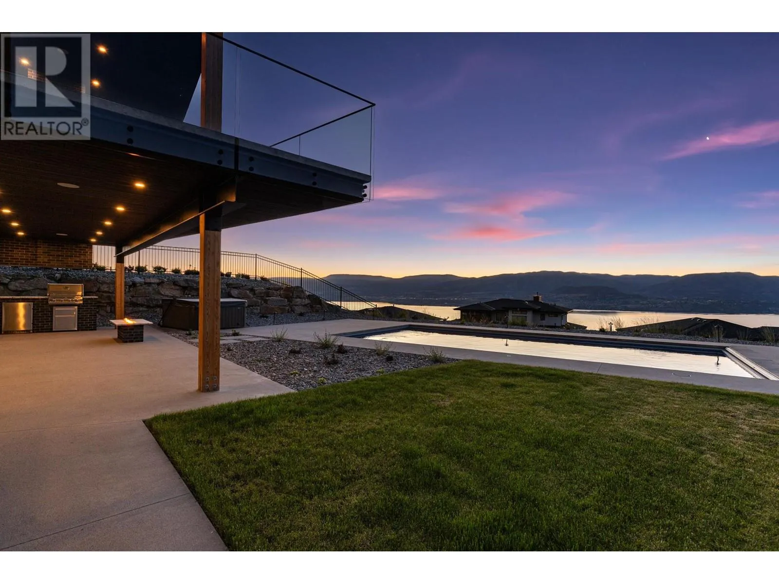 Experience modern Okanagan luxury in this brand-new custom-built walkout rancher, designed to impress with striking architecture, high-end finishings, and breathtaking lake, sunset, and city views. This home seamlessly blends contemporary elegance with functional design, delivering an unmatched indoor-outdoor lifestyle. The open-concept main level is highlighted by floor-to-ceiling sliding doors that expand to a spacious covered patio, complete with built-in BBQ, fire table, and panoramic views. The chefâs kitchen is a showstopper with premium Jennair appliances including a 6-burner gas cooktop, built-in oven, full-size fridge/freezer, double dishwashers, and built-in coffee station. A walk-through pantry connects directly to the laundry room and heated garage for everyday convenience. The luxurious primary bedroom features spa-inspired ensuite with fluted freestanding tub, steam shower, and large walk-in closet. A private office and a designer guest powder room with preserved moss wall and onyx sink complete the main level. Downstairs is designed for entertaining, opening directly to your backyard oasis with 16x32 pool (with auto cover), hot tub, and a second built-in BBQ area. Inside, enjoy the wet bar, theater room, gym with sports flooring, and ample storage. The legal 1-bedroom suite (option for a 2nd bdrm) offers flexibility for guests or rental income. Oversized heated garage features epoxy floors, an 11-foot door for RV or boat access, and roughed-in A/C. (id:27476)