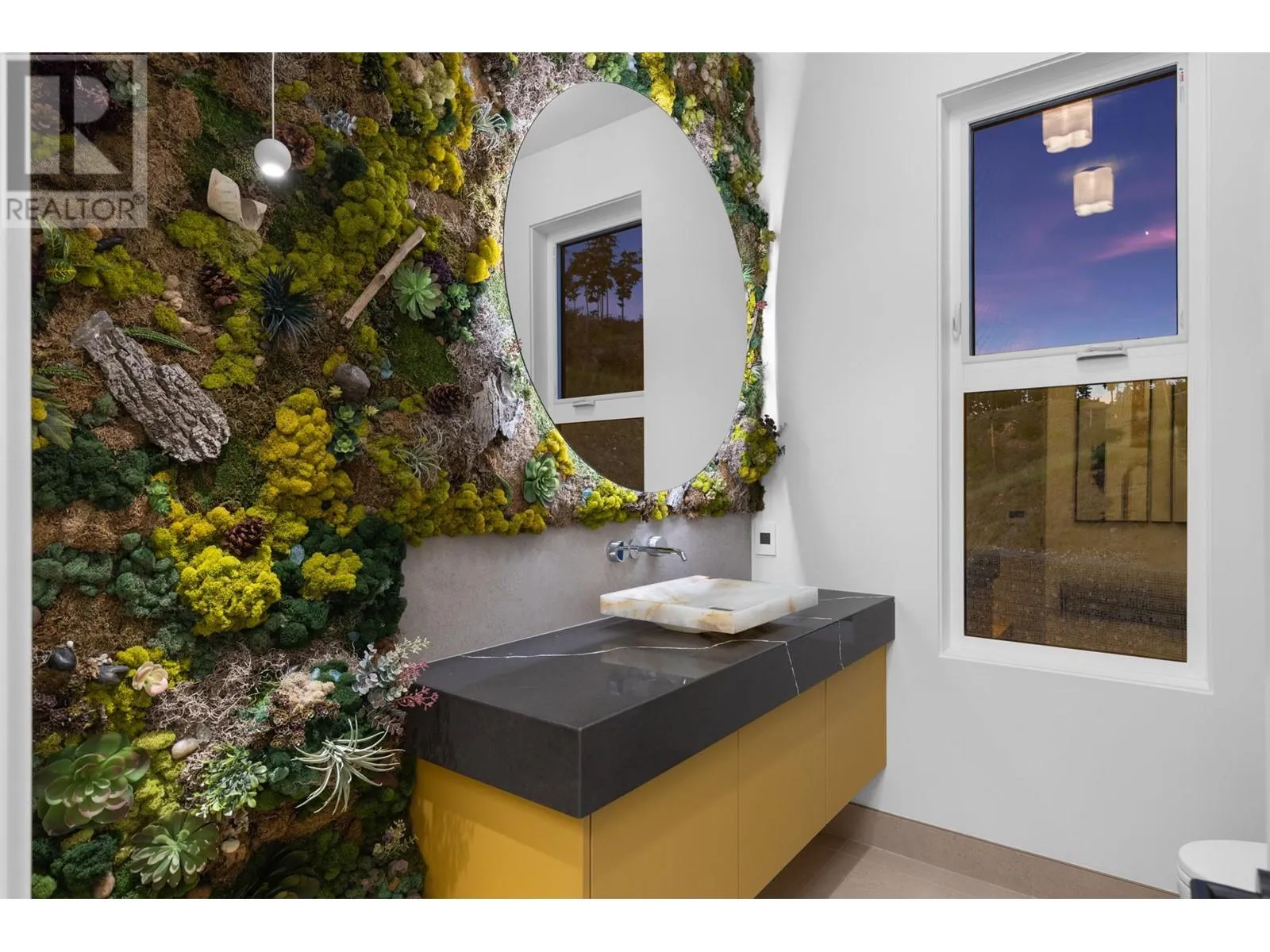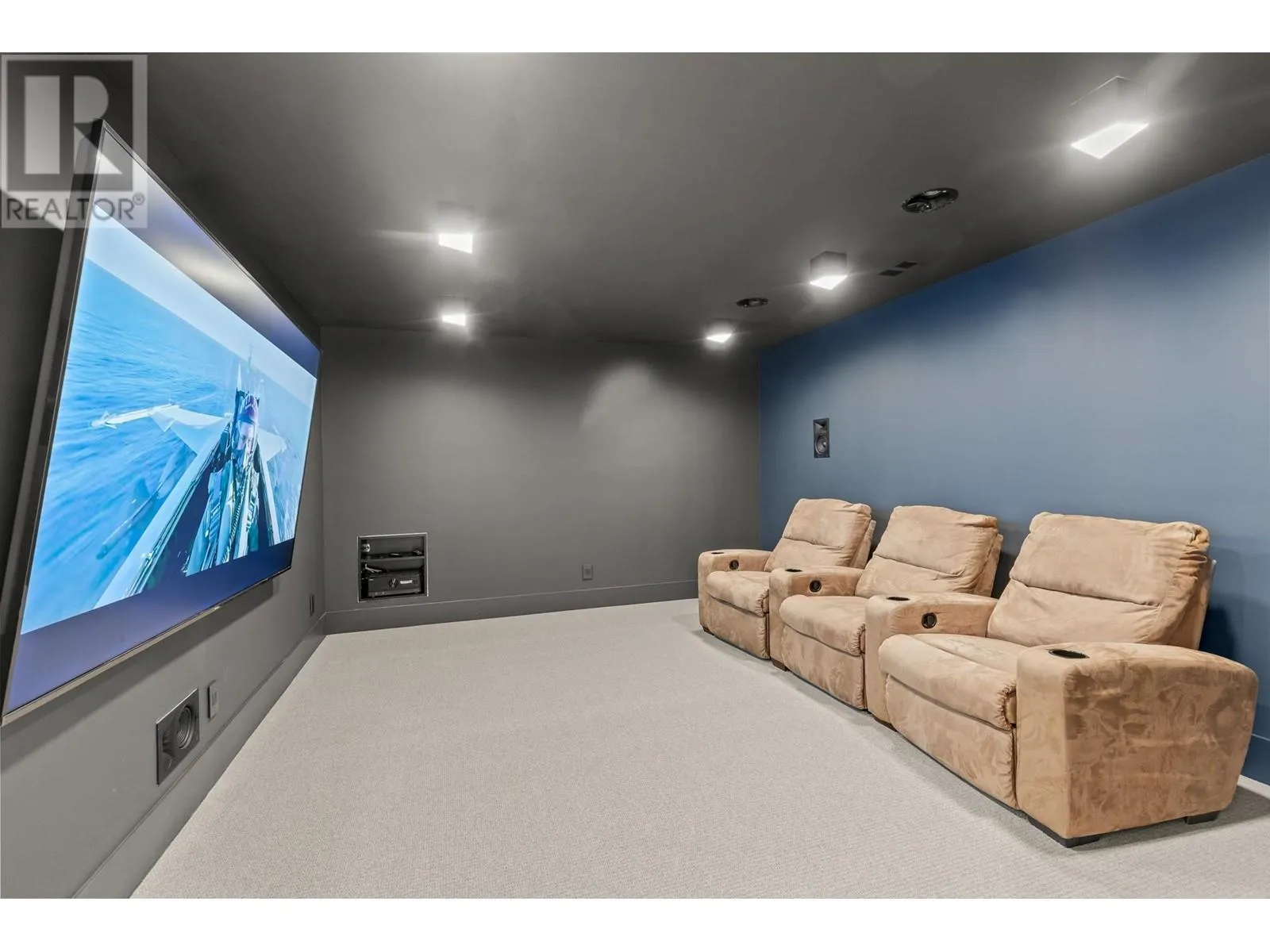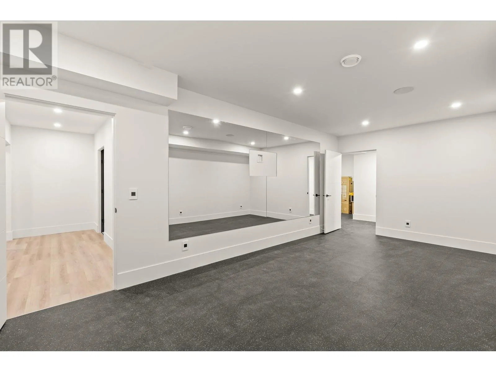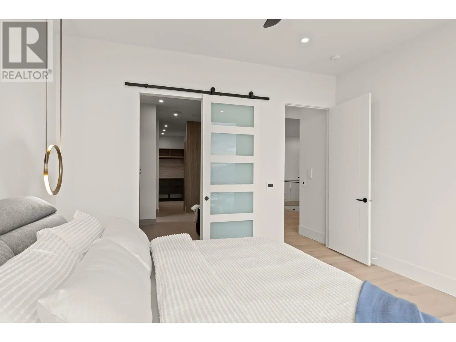 Experience modern Okanagan luxury in this brand-new custom-built walkout rancher, designed to impress with striking architecture, high-end finishings, and breathtaking lake, sunset, and city views. This home seamlessly blends contemporary elegance with functional design, delivering an unmatched indoor-outdoor lifestyle. The open-concept main level is highlighted by floor-to-ceiling sliding doors that expand to a spacious covered patio, complete with built-in BBQ, fire table, and panoramic views. The chefâs kitchen is a showstopper with premium Jennair appliances including a 6-burner gas cooktop, built-in oven, full-size fridge/freezer, double dishwashers, and built-in coffee station. A walk-through pantry connects directly to the laundry room and heated garage for everyday convenience. The luxurious primary bedroom features spa-inspired ensuite with fluted freestanding tub, steam shower, and large walk-in closet. A private office and a designer guest powder room with preserved moss wall and onyx sink complete the main level. Downstairs is designed for entertaining, opening directly to your backyard oasis with 16x32 pool (with auto cover), hot tub, and a second built-in BBQ area. Inside, enjoy the wet bar, theater room, gym with sports flooring, and ample storage. The legal 1-bedroom suite (option for a 2nd bdrm) offers flexibility for guests or rental income. Oversized heated garage features epoxy floors, an 11-foot door for RV or boat access, and roughed-in A/C. (id:27476)