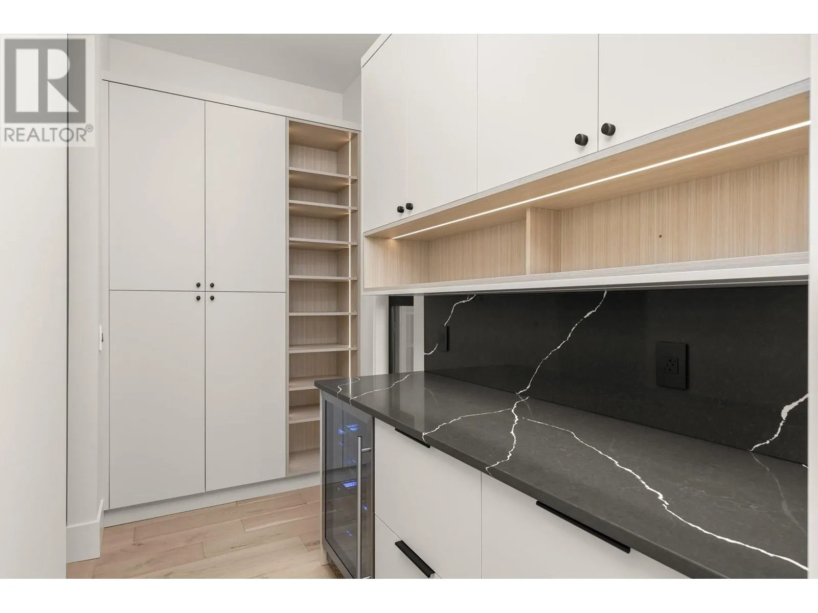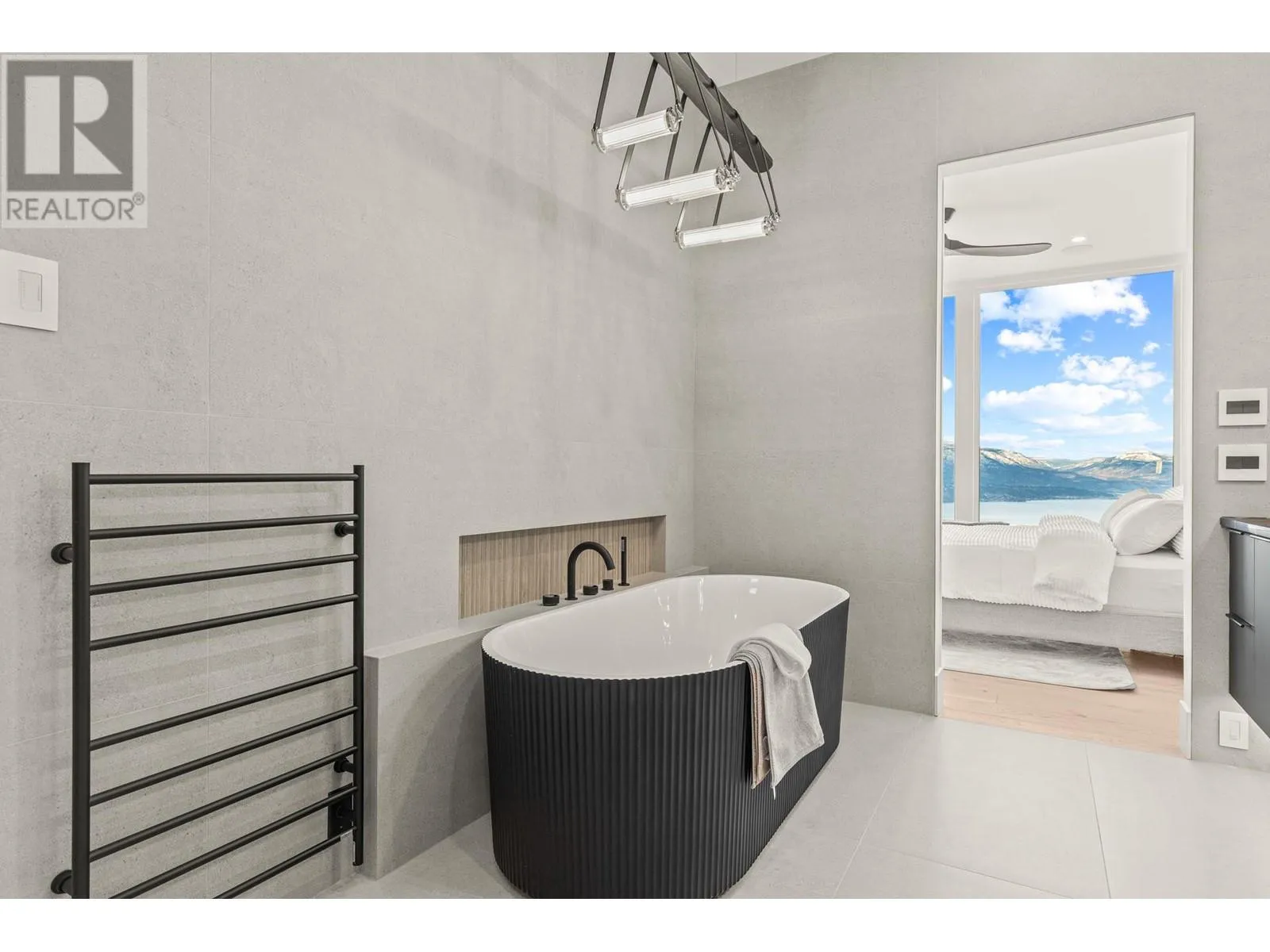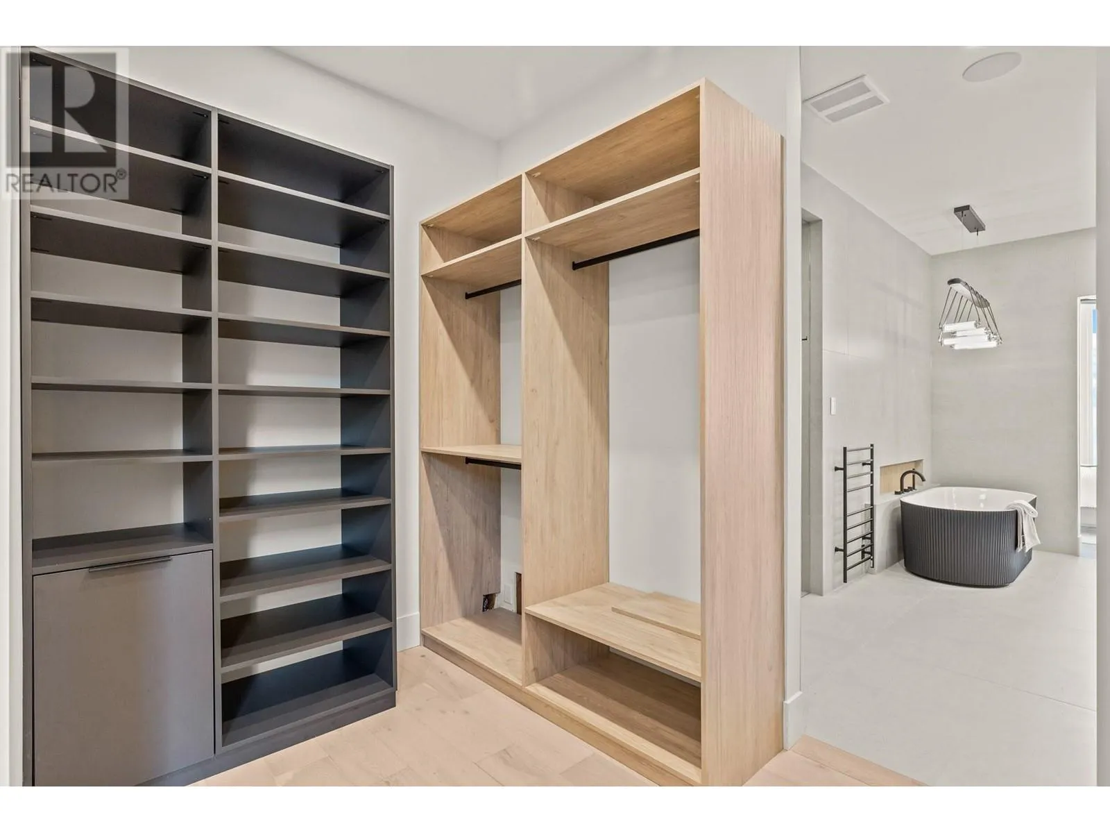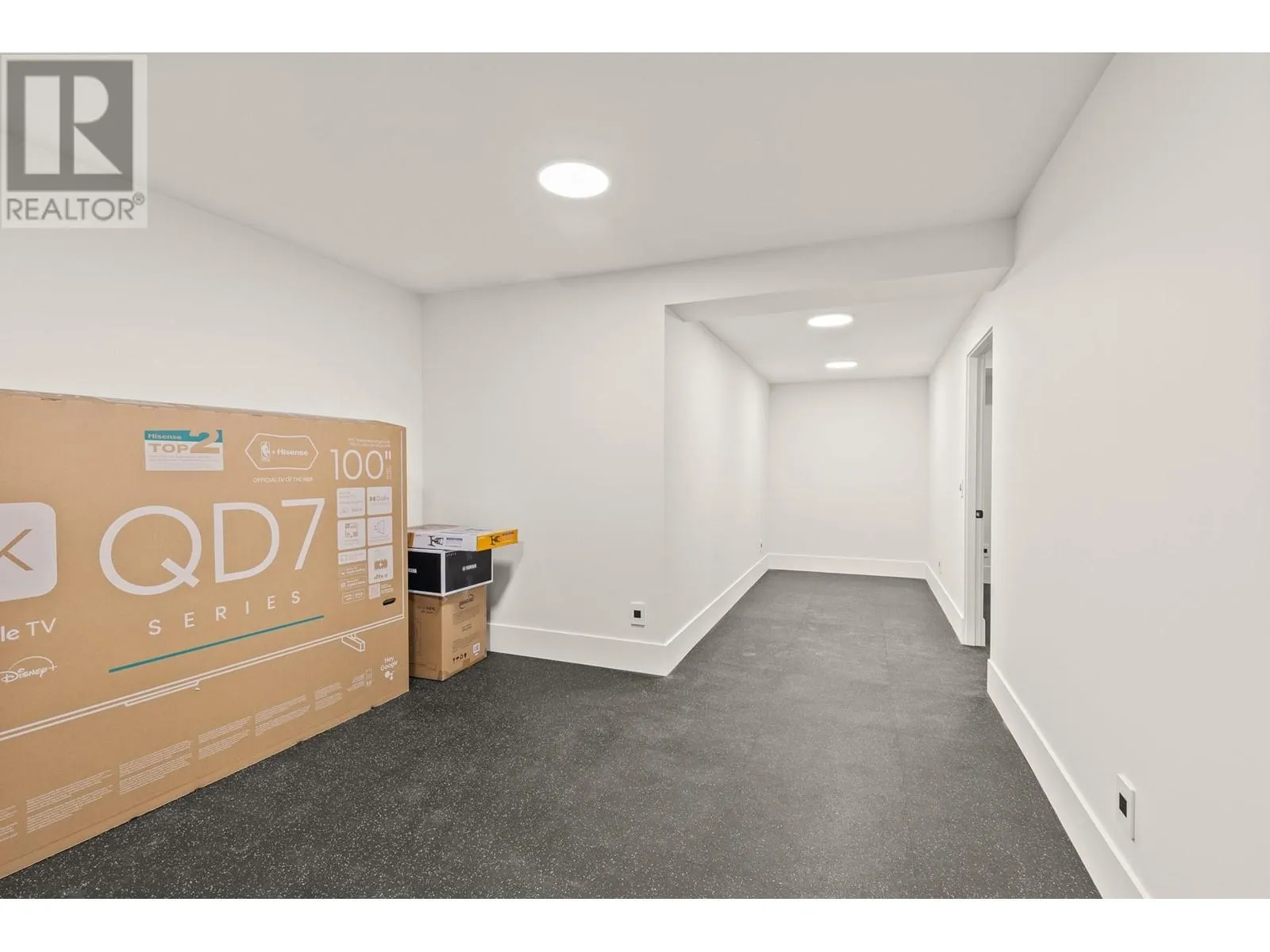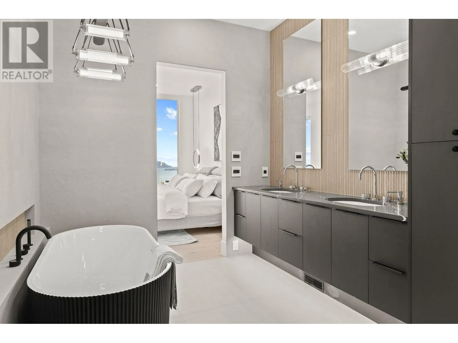 Experience modern Okanagan luxury in this brand-new custom-built walkout rancher, designed to impress with striking architecture, high-end finishings, and breathtaking lake, sunset, and city views. This home seamlessly blends contemporary elegance with functional design, delivering an unmatched indoor-outdoor lifestyle. The open-concept main level is highlighted by floor-to-ceiling sliding doors that expand to a spacious covered patio, complete with built-in BBQ, fire table, and panoramic views. The chefâs kitchen is a showstopper with premium Jennair appliances including a 6-burner gas cooktop, built-in oven, full-size fridge/freezer, double dishwashers, and built-in coffee station. A walk-through pantry connects directly to the laundry room and heated garage for everyday convenience. The luxurious primary bedroom features spa-inspired ensuite with fluted freestanding tub, steam shower, and large walk-in closet. A private office and a designer guest powder room with preserved moss wall and onyx sink complete the main level. Downstairs is designed for entertaining, opening directly to your backyard oasis with 16x32 pool (with auto cover), hot tub, and a second built-in BBQ area. Inside, enjoy the wet bar, theater room, gym with sports flooring, and ample storage. The legal 1-bedroom suite (option for a 2nd bdrm) offers flexibility for guests or rental income. Oversized heated garage features epoxy floors, an 11-foot door for RV or boat access, and roughed-in A/C. (id:27476)