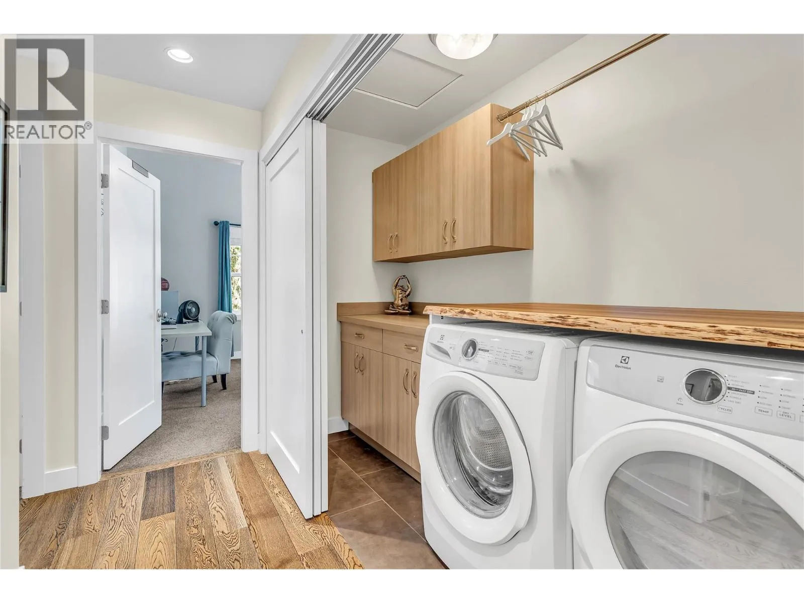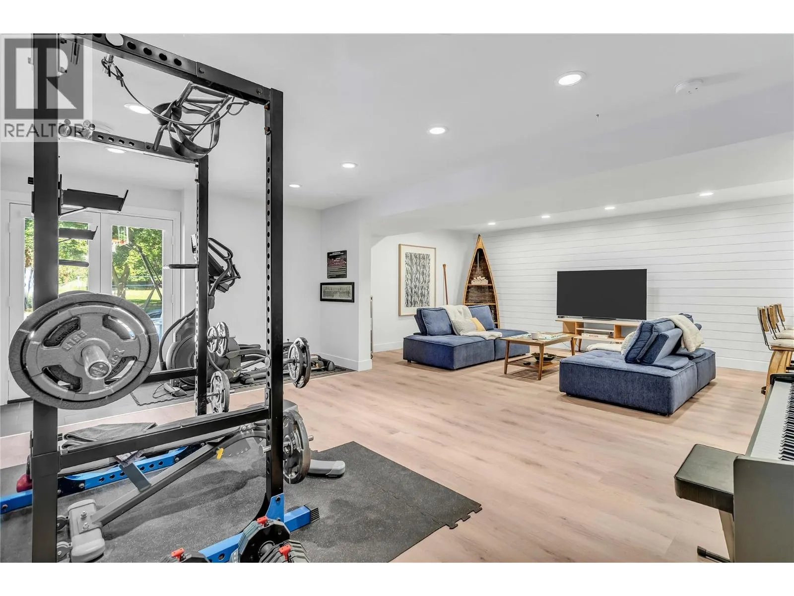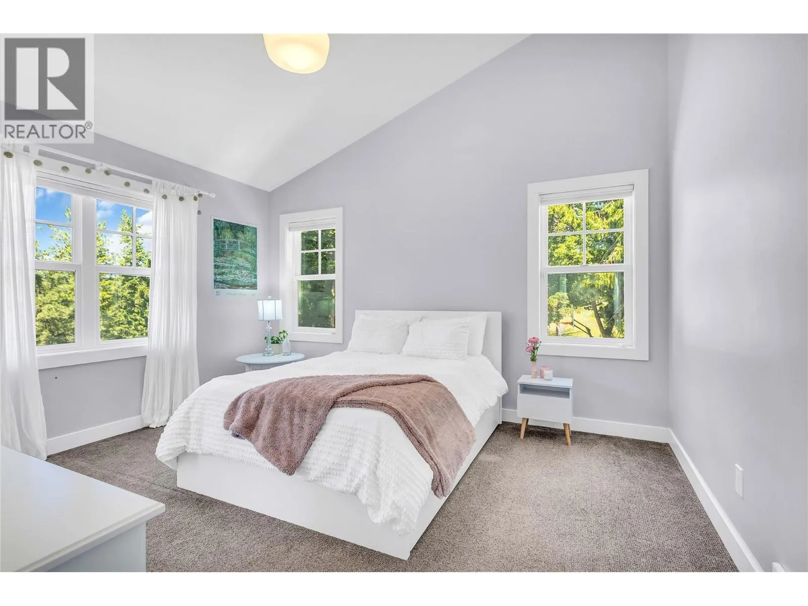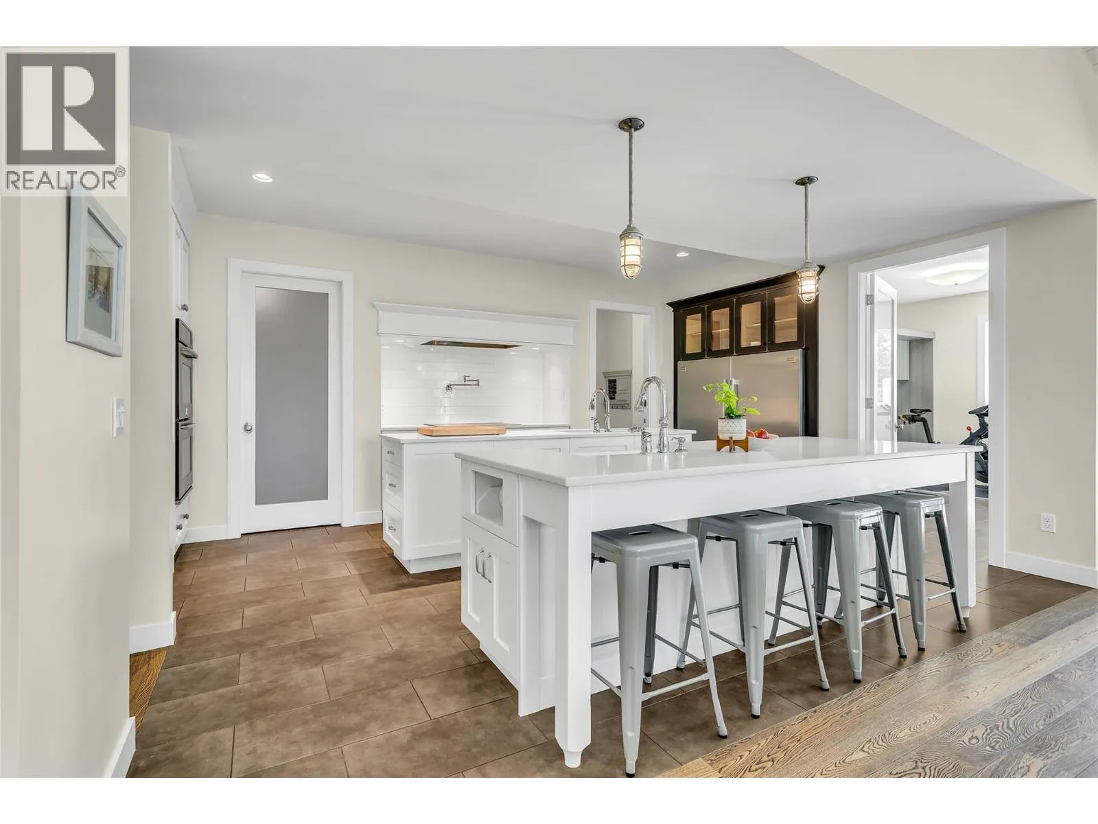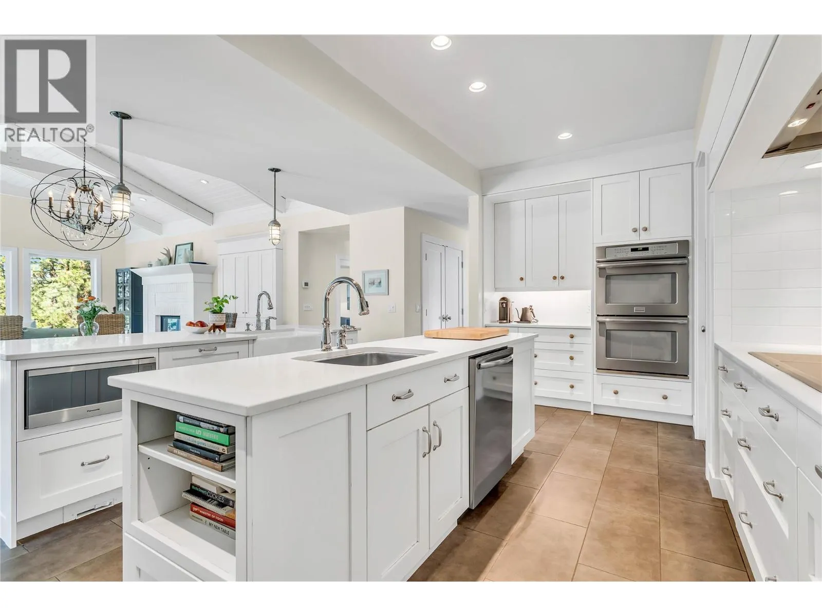 Welcome to your private sanctuary in Southeast Kelowna, where nature, thoughtful design, and everyday luxury come together on 4.25 acres of forested beauty. Mature trees surround this modern farmhouse, which offers 5600 sq ft of vibrant living space, perfect for quiet moments and lively gatherings. At the heart of the home, the kitchen features double islands, quartz counters, high-end appliances, and a spacious walk-in pantry, designed for creating special moments with family and friends. Vaulted dining and living areas with white-washed beams, a brick fireplace, and a sparkling crystal chandelier exude warmth and style. French doors open onto a wraparound patio, in-ground pool, and fire pit framed with lush landscaping, inviting you to relax and unwind in complete privacy. The main level offers two bedrooms with en-suite bathrooms, walk-in closets, a den, laundry, and a mudroom for convenience. Upstairs, the primary suite is a private retreat, complete with a spa-like ensuite, and a balcony overlooking the propertyâyour perfect spot for a morning coffee or evening wine. The lower level is built for connection and fun, featuring a second kitchen, multiple living areas, and two bedrooms. A heated double garage with front and rear access, plus basement entry, adds extra convenience. Tucked away in Southeast Kelowna, this home offers rare privacy and natural beauty. This is more than just a homeâitâs a lifestyle waiting for you to make it your own. (id:27476)
