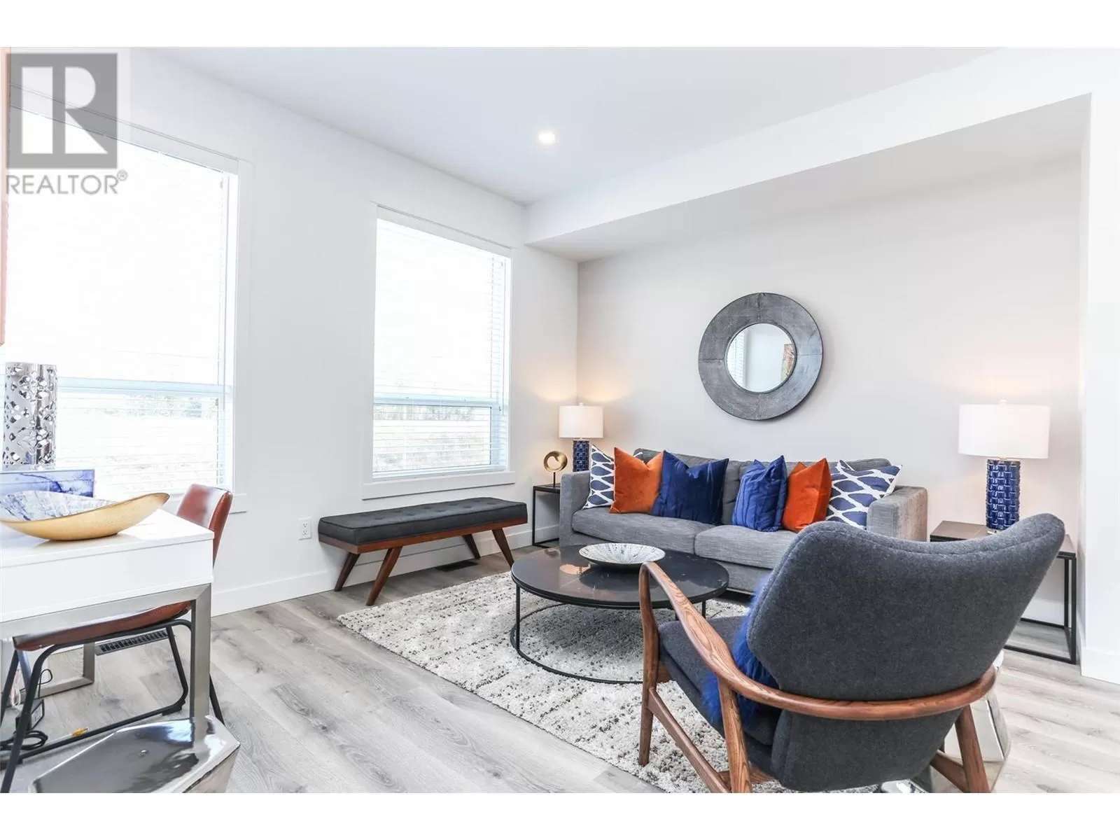 MOVE IN NOW! These traditional row townhomes are the best new construction deals in the Valley. This unit is $639,900 and now ( if you are a first time buyer) does not have GST or PTT. So the price is the price-NO TAX!! That is a savings of over $40k. The deals do not get any better than this. These homes are already the best priced in the Valley and now they just got better. Besides the value portion of the equation you can't beat the location. Walk to the UBCO campus, 5 min to the airport, shopping is 5 minutes away and the award winning rail trail that links to downtown and places north is only 5 minutes away. All homes come with modern fixtures and features such as stainless steel kitchen appliance, full size laundry units, ice cold central A/C with forced air gas heat, all window coverings and a two car garage. Buy and live or buy and rent or buy for your kids while they attend UBCO. At this price, why rent? The Delta I floor plan at Academy Ridge is move- in-ready offering 3 bedrooms, 2.5 baths, and a thoughtfully designed layout with 9ft ceilings and premium finishes. With low strata fees and pet-friendly bylaws this home is perfect for students, professionals, or investors. Don't miss out, schedule your showing today! Please note: Photos show a similar unit in the same color scheme as unit for sale - OMEGA White. Show home open every Wed and Thurs 12-3PM (Unit #115 610 Academy Way) (id:27476)