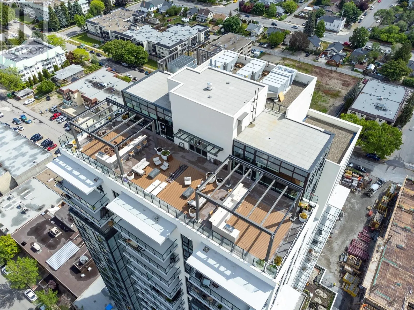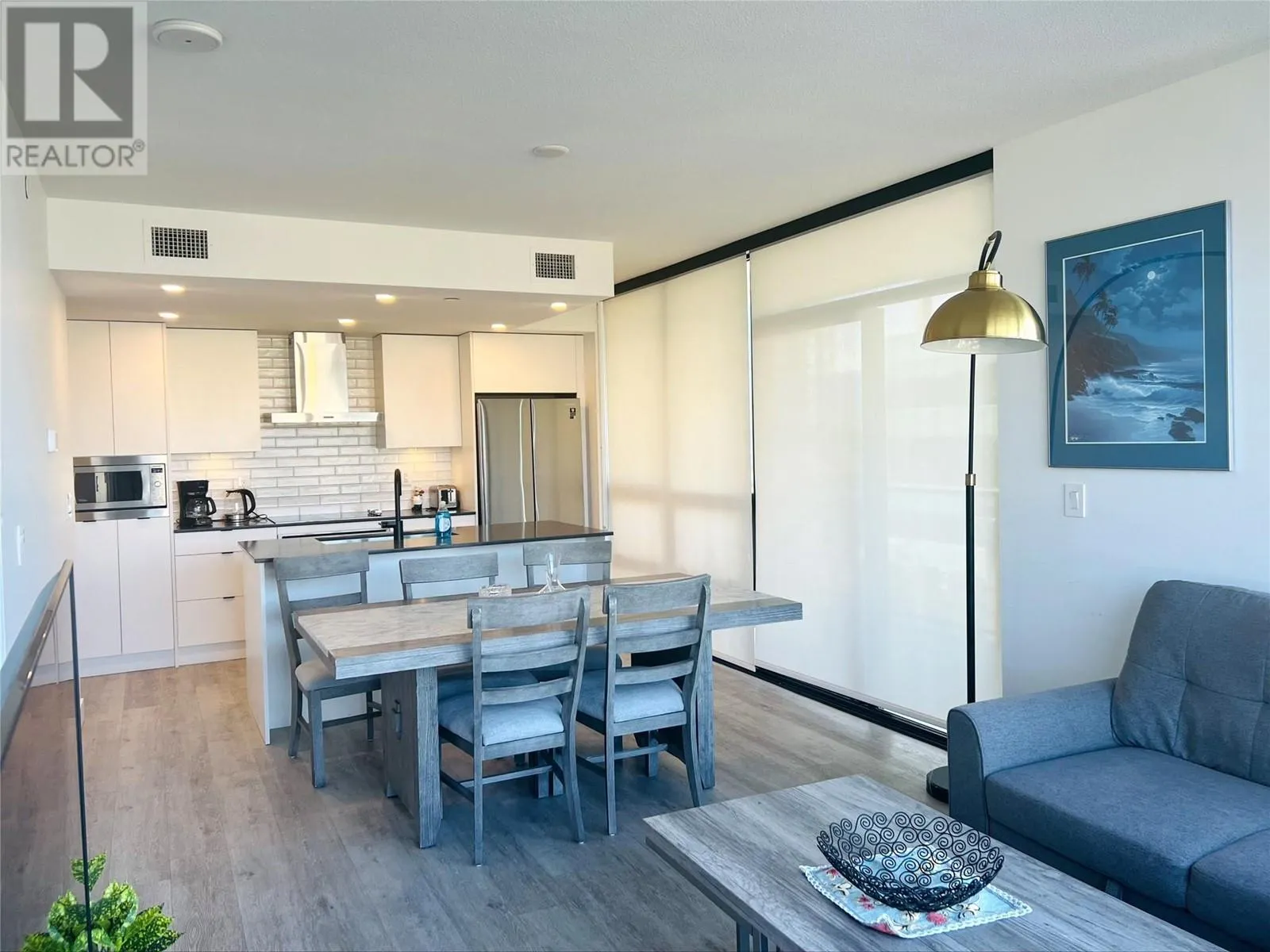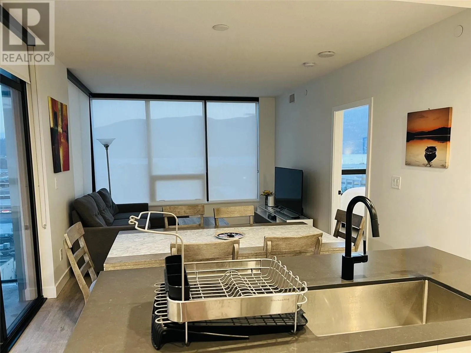 This stunning southwest-facing, 2-bedroom, 2-bathroom corner unit offers 871 sq. ft. of modern, open-concept living plus a private 99 sq. ft. patio thatâs perfect for soaking in the lake views. Bright and inviting, the home features a light color palette, sleek stainless steel appliances, quartz countertops, and in-suite laundry. Situated in the vibrant Bernard District, youâll enjoy a 98 WalkScore with City Park, the lake, top restaurants, shopping, and nightlife right at your doorstepâplus the future UBCO downtown campus just a short walk away. Pet-friendly and with no age restrictions, this home is ideal for professionals, investors, or anyone seeking an urban lifestyle. Residents enjoy premium amenities like a rooftop terrace with BBQ area, conference room, lounge, dog wash station, bike wash, and secure bike storage. One designated parking stall is included, along with the peace of mind of the 2-5-10 Year New Home Warranty. Owner-occupied and move-in ready! (id:27476)