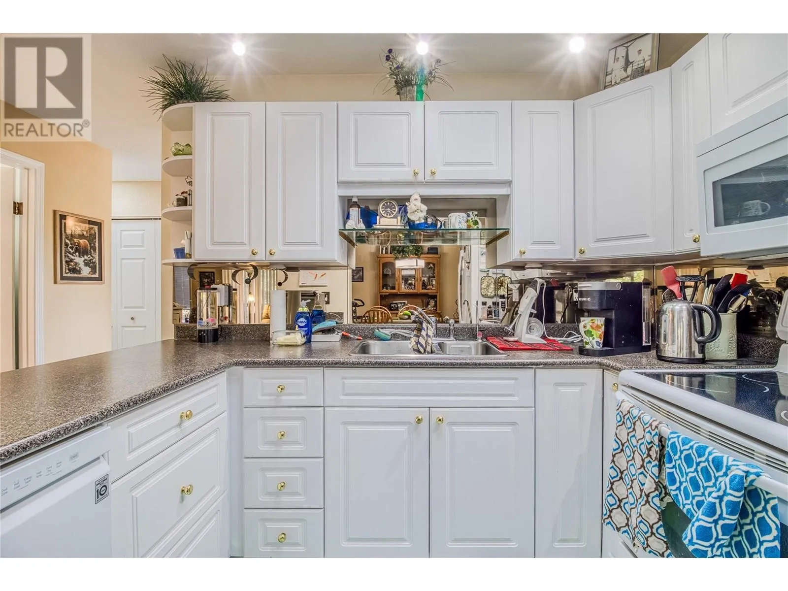 Live the Sweet Life at Holiday Park Resort! This delightful 2 bed, 2 bath unit offers the best of Okanagan living with two private balconiesâperfect for soaking up sunshine or enjoying your morning coffee. The kitchen and dining area flow together in a warm, open space, featuring classic white cabinetry, matching white appliances, and a skylight that brings in natural lightâideal for both everyday living and entertaining. This home offers exceptional flexibility as one of the few in the region that allows both short-term and long-term rentalsâa standout choice for investors, seasonal visitors, or full-time residents. Set within a secure, gated community, residents enjoy a wide range of resort-style amenities including 3 pools, 2 hot tubs, a gym, woodworking shop, private beach, golf course, and an adult recreation center full of social and fitness activities. Dine at the all-new Thyme licensed restaurant that adds even more vibrancy to the neighborhood. The community sits beside the scenic Rail Trail, ideal for biking, walking, and outdoor adventures. Thereâs also convenient on-site storage for household goods and recreational vehicles. Holiday Park is just 10 mins from YLW and close to UBCO, making it appealing to students, travelers, and retirees alike. Explore the Okanagan lifestyleâwine tours, boating, skiing, hiking and more! Donât miss this rare opportunity to own in the sought-after, amenity-rich Holiday Park Resort! (id:27476)