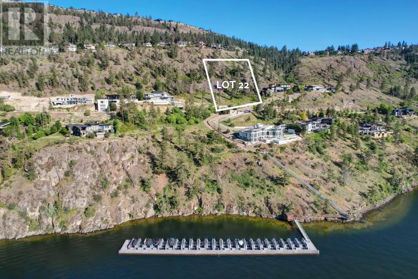 Exceptional building lot in the exclusive, gated waterfront community of Sheerwater. This 2-acre property is sure to impress and is one of the last building lots available in this subdivision. The lot lines extend up the hillside creating an elevated site perfect for building a remarkable estate with panoramic Okanagan Lake views. Residents of this waterfront community enjoy seamless access to the lake by tram, and this property includes its own private deep-water boat slip. This natural and tranquil setting offers access to miles of trails at your doorstep, including Knox Mountain and is only a short drive to the Kelowna International Airport, UBCO and downtown Kelowna. (id:27476)