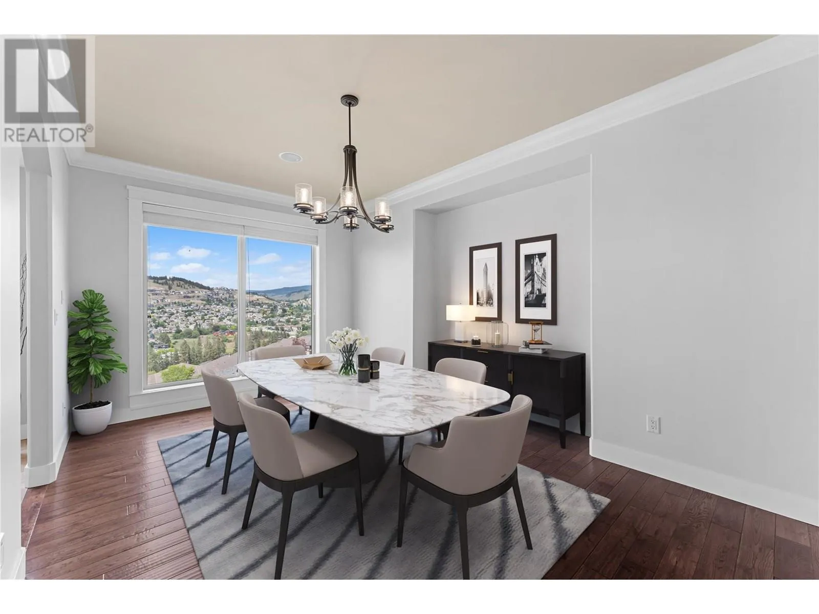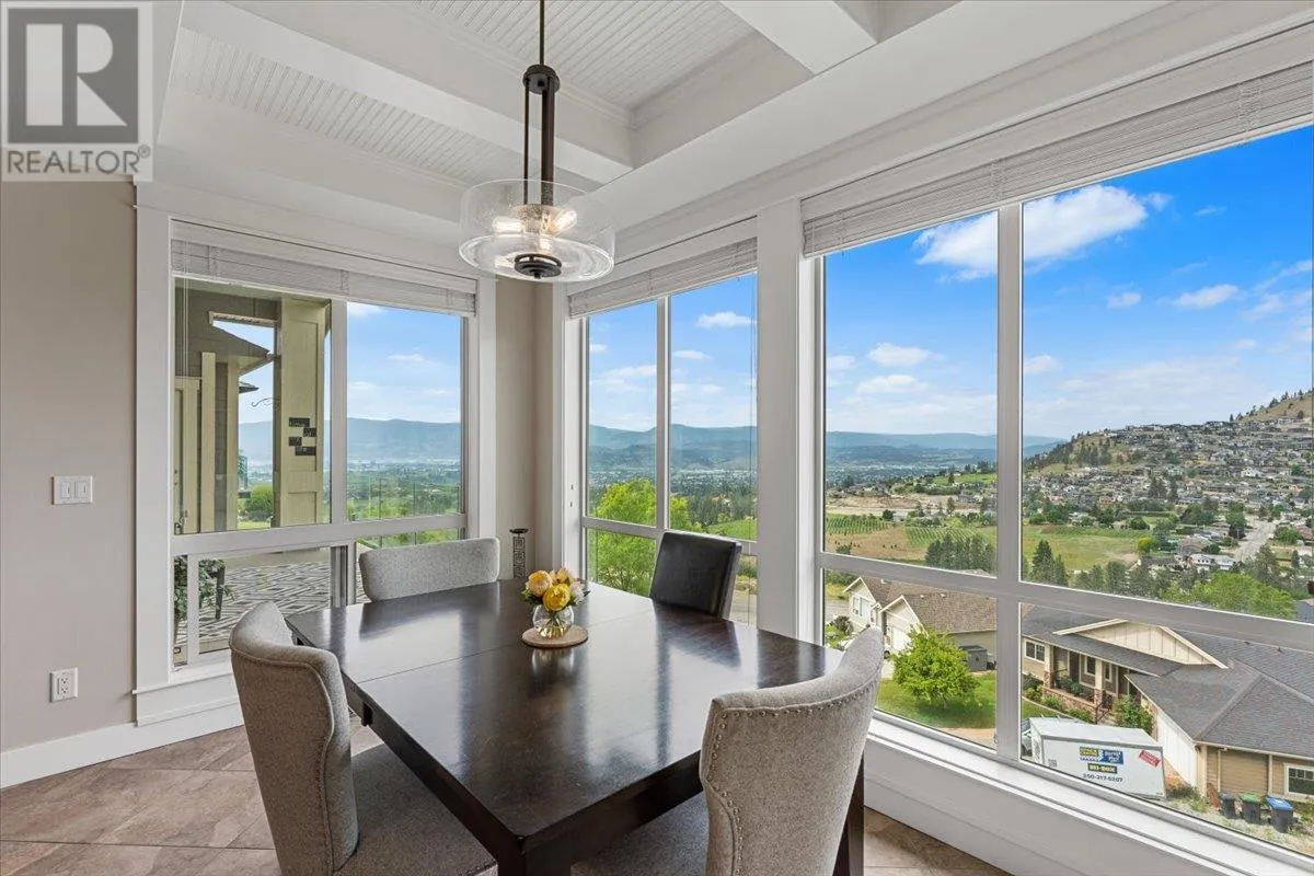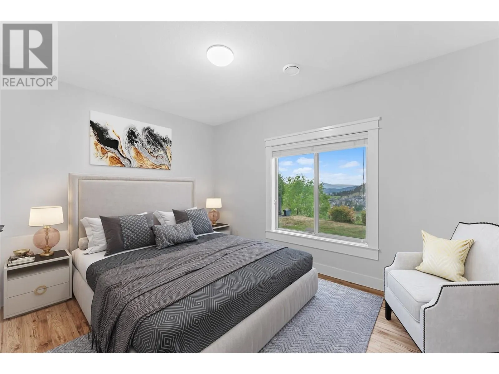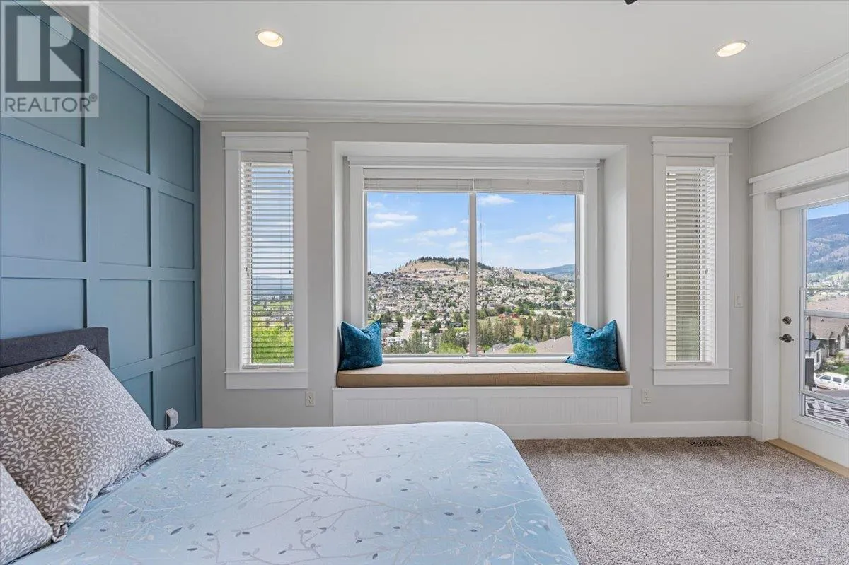 Move in and enjoy this beautifully updated Black Mountain home offering stunning 180 degree valley, lake, and city views. Set on a quiet, established, family-oriented street, this home is ideal for multi-generational living or rental income with a 2-bedroom legal suite and potential for a second suite. Enjoy total privacy and incredible natural light. The primary bedroom requires no window coveringsâwake up to fresh mountain air, peaceful pine-scented breezes, and views of sunrise over the hills. In the evening, the home is bathed in soft shade, perfect for relaxing outdoors. The main floor features a granite island kitchen with induction cooktop and new appliances, open great room, formal dining, guest room, and a primary suite with a renovated spa-linspired ensuite. Downstairs has two additional bedrooms, theatre room with wet bar, and bright living spaces. Upgrades include hand-scraped hardwood, limestone tile, crown moulding, wainscoting, LED lighting, feature walls, new garage door with camera, and faux wood blinds. Double garage and RV or boat parking. Pride of ownership is evident throughout. Minutes to Black Mountain Golf Club, schools, and 35 mins to Big White. A new mixed-use commercial development with grocery and retail is coming nearby. A truly special, move-in-ready home with endless lifestyle potential. (id:27476)