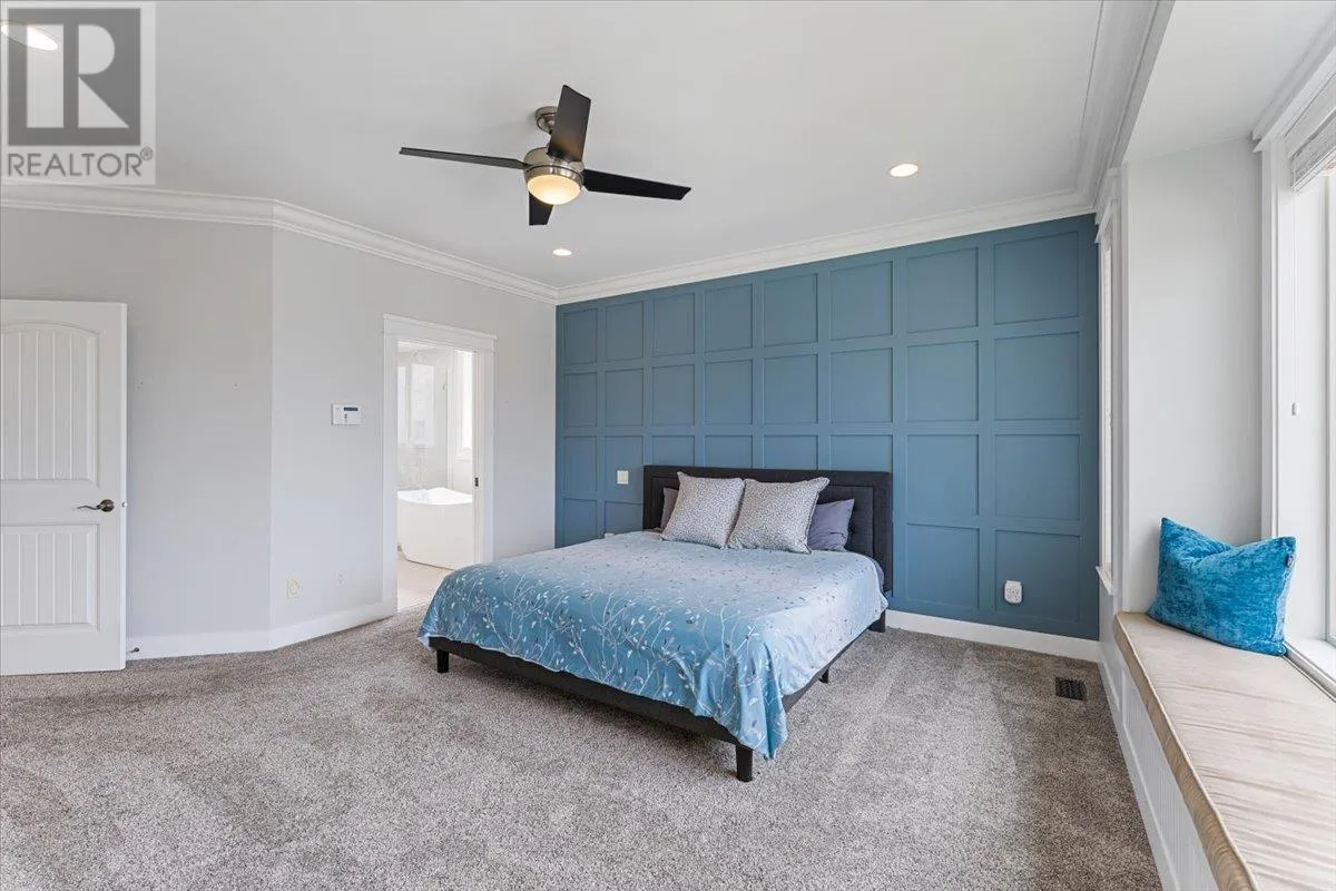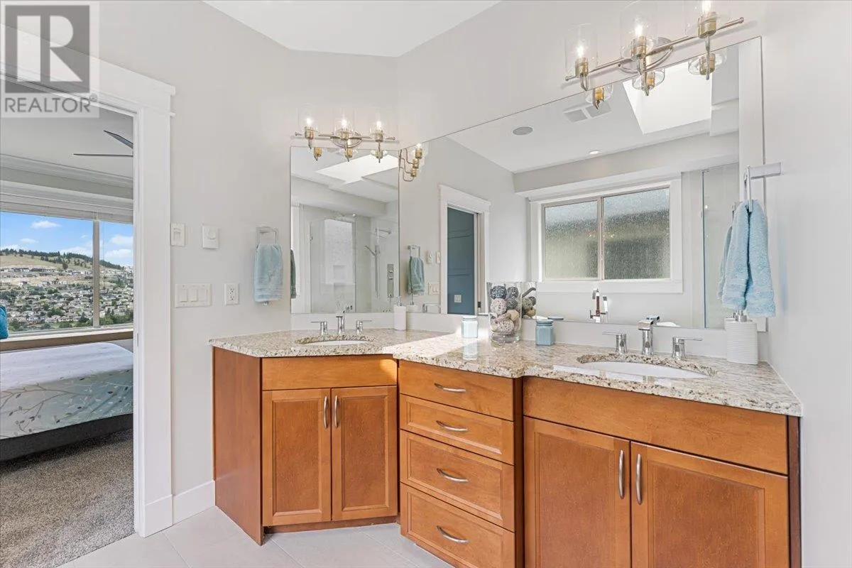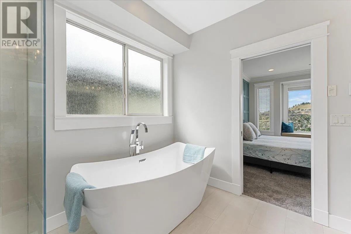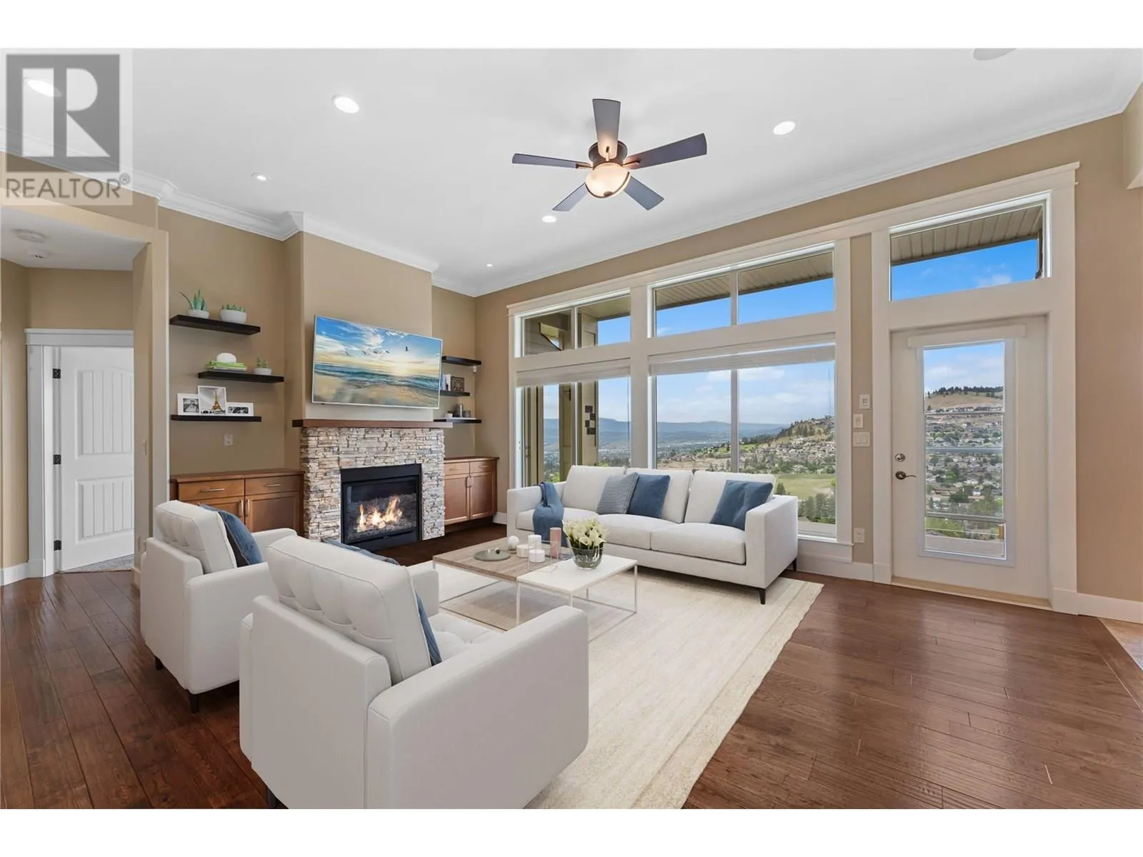 Move in and enjoy this beautifully updated Black Mountain home offering stunning 180 degree valley, lake, and city views. Set on a quiet, established, family-oriented street, this home is ideal for multi-generational living or rental income with a 2-bedroom legal suite and potential for a second suite. Enjoy total privacy and incredible natural light. The primary bedroom requires no window coveringsâwake up to fresh mountain air, peaceful pine-scented breezes, and views of sunrise over the hills. In the evening, the home is bathed in soft shade, perfect for relaxing outdoors. The main floor features a granite island kitchen with induction cooktop and new appliances, open great room, formal dining, guest room, and a primary suite with a renovated spa-linspired ensuite. Downstairs has two additional bedrooms, theatre room with wet bar, and bright living spaces. Upgrades include hand-scraped hardwood, limestone tile, crown moulding, wainscoting, LED lighting, feature walls, new garage door with camera, and faux wood blinds. Double garage and RV or boat parking. Pride of ownership is evident throughout. Minutes to Black Mountain Golf Club, schools, and 35 mins to Big White. A new mixed-use commercial development with grocery and retail is coming nearby. A truly special, move-in-ready home with endless lifestyle potential. (id:27476)