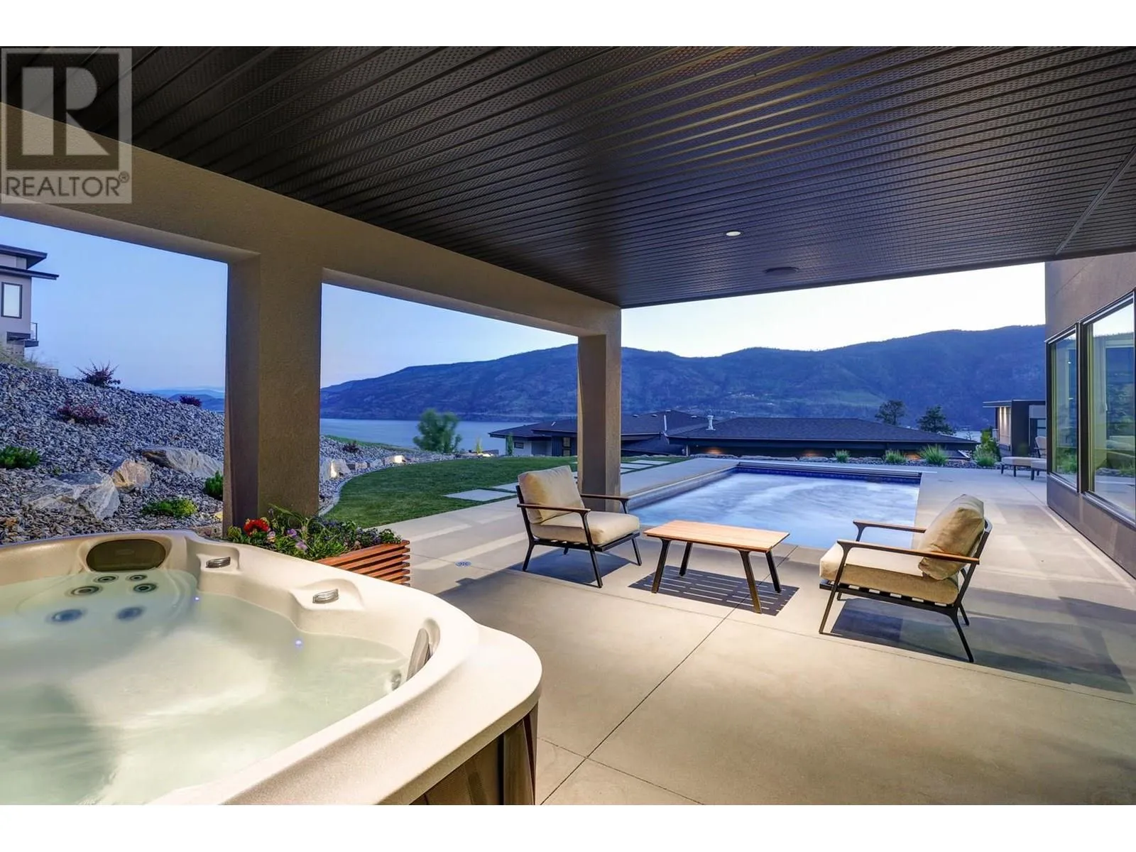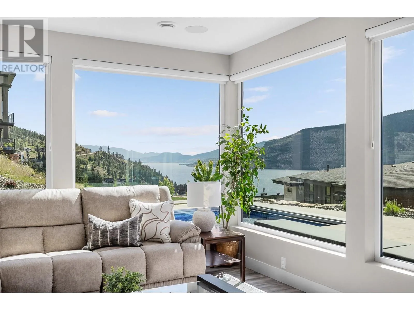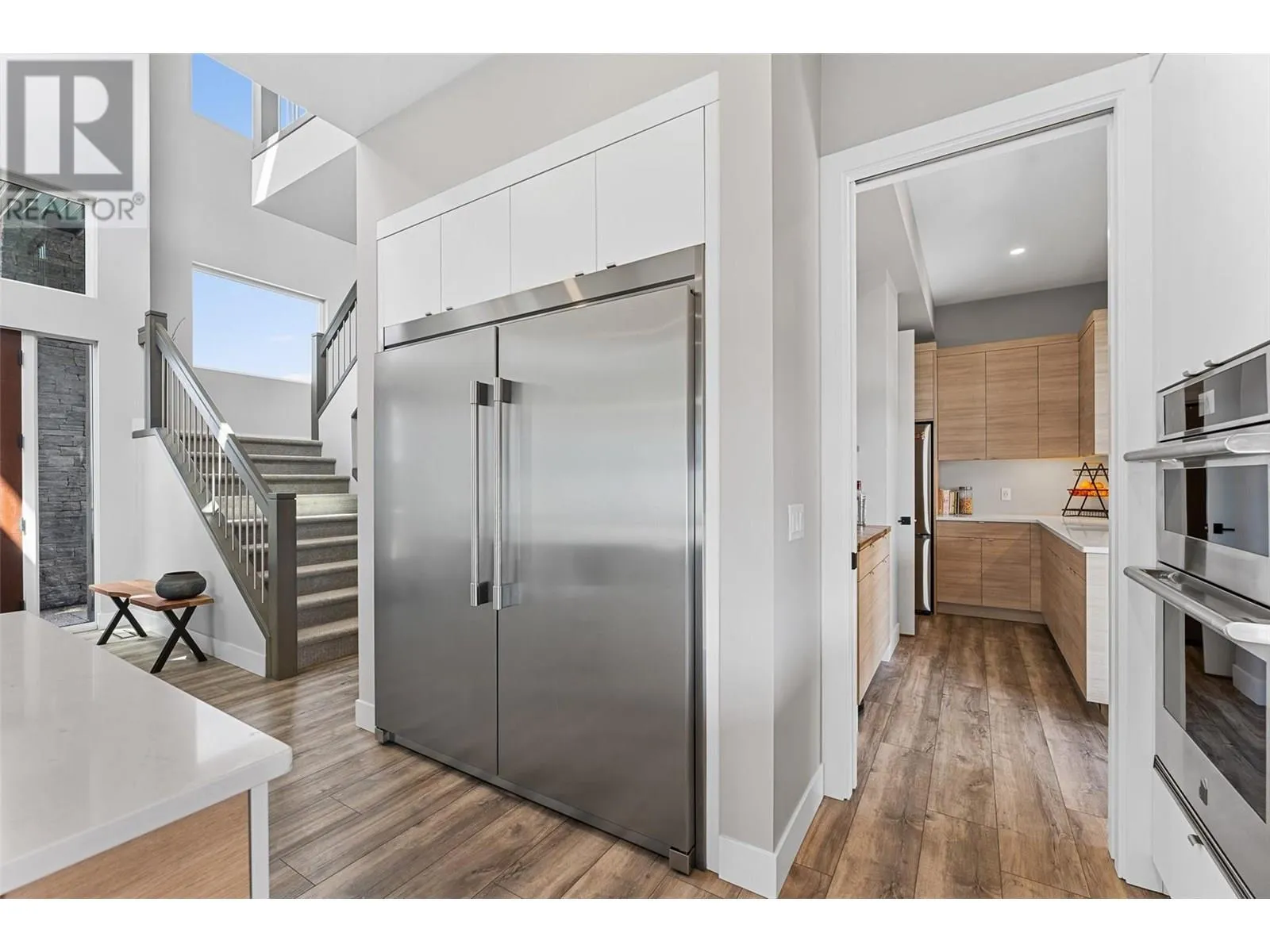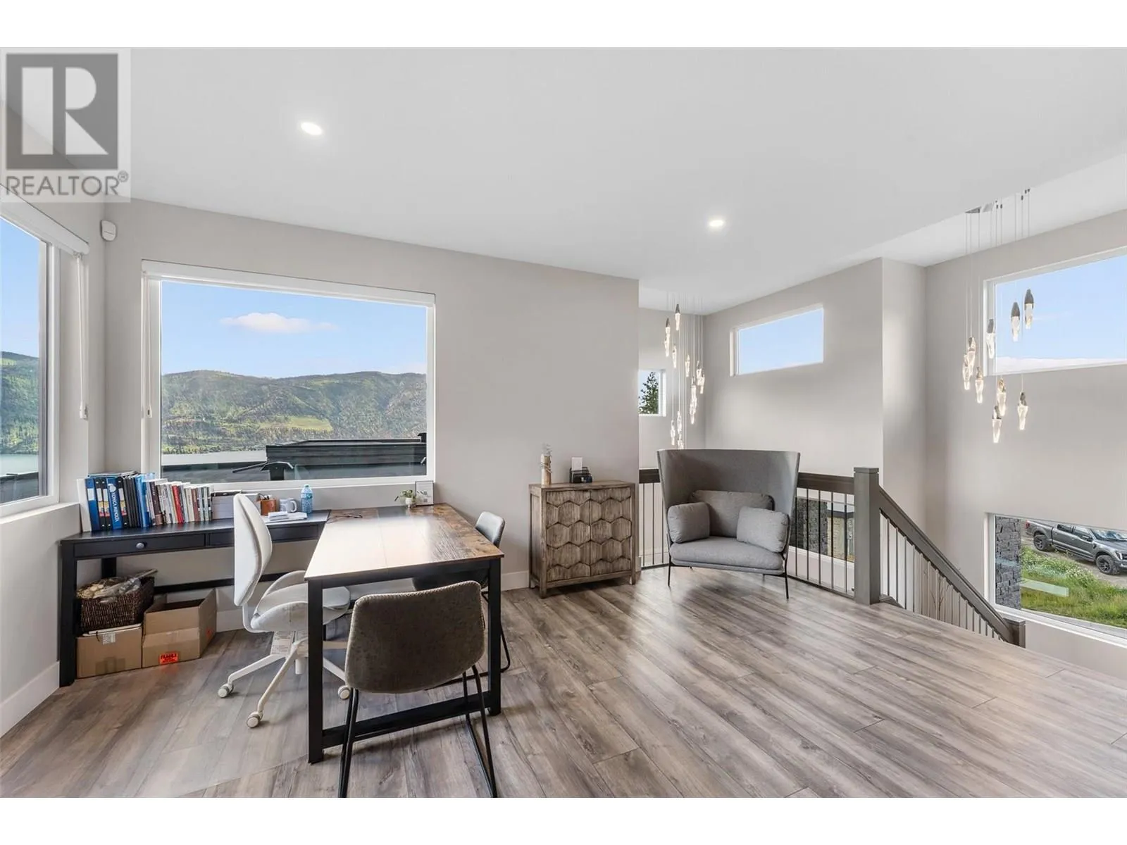 Gorgeous modern home in McKinley Beach where elevated Okanagan living meets thoughtful design & panoramic lake views. Situated on a rare 0.374-acre lot, this estate boasts a spacious family layout with resort-style amenities, expansive indoor-outdoor living, & a self-contained 2 bed/1 bath legal suite. The main level impresses with soaring ceilings, a chefâs kitchen featuring JennAir appliances, a massive island, & a seamless connection to the covered deckâperfect for al fresco dining. The luxurious primary suite enjoys sweeping lake &valley views, a spa-inspired ensuite, & a walk-through dressing room. A bright office, large pantry, powder room, & laundry complete this level. Downstairs, entertain in style with a rec room, wet bar with pass-through windows, wine cellar, & direct walkout access to the backyard oasis, featuring a heated saltwater pool, hot tub, & built-in firepit. Three additional beds & two baths offer flexibility. Upstairs, a versatile loft space is ideal for a home office or gym. The legal suite offers privacy & comfort with a separate deck, laundry, & private entrance. A highlight of this home is the 1300+ sq ft garage with cabinets, separate heat, & hard wired for network. Located minutes from the marina, airport, UBCO, wineries, & golf. Residents enjoy exclusive access to McKinleyâs amenity centre with gym, pool, hot tub, pickleball, & more. This is a rare opportunity to own one of the most versatile & beautifully appointed homes in McKinley Beach. (id:27476)