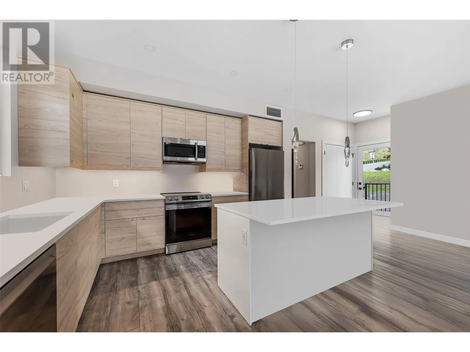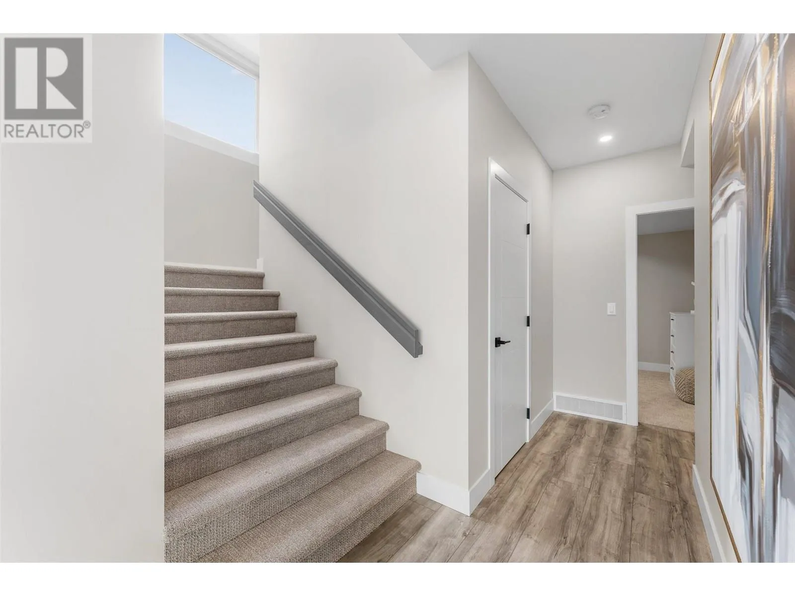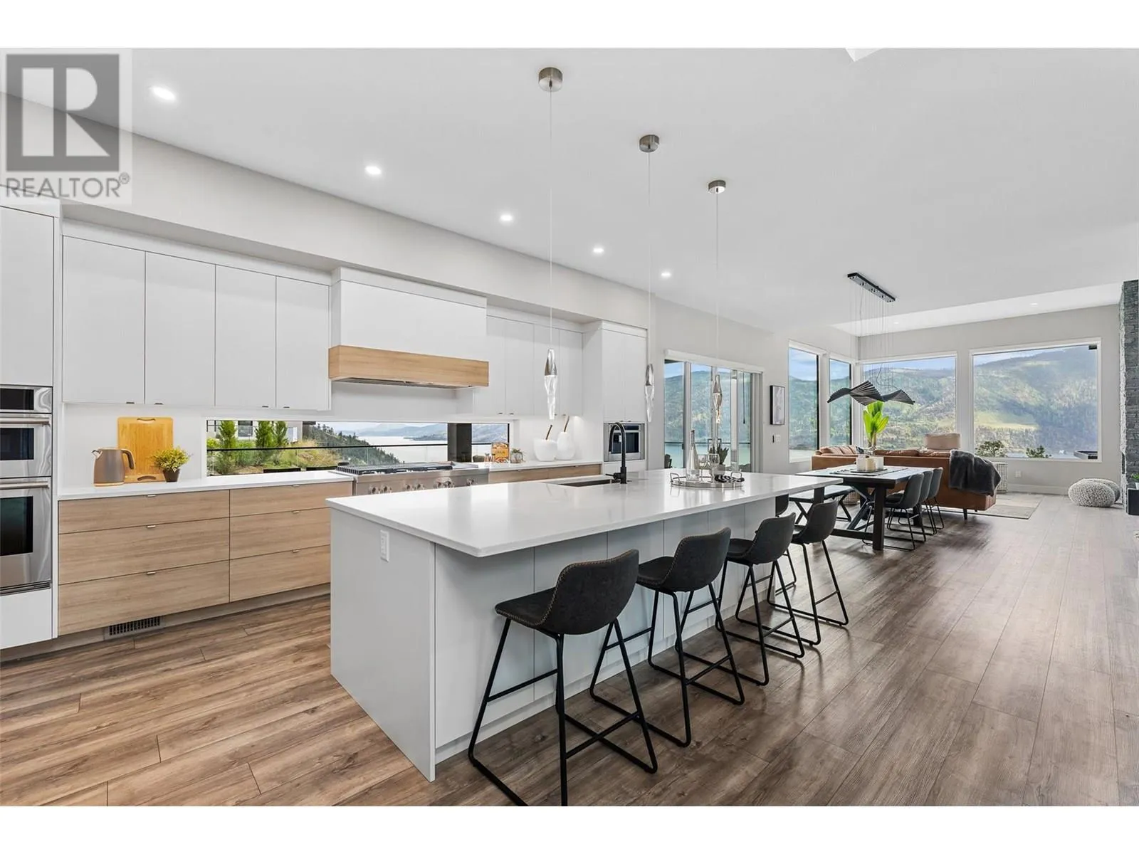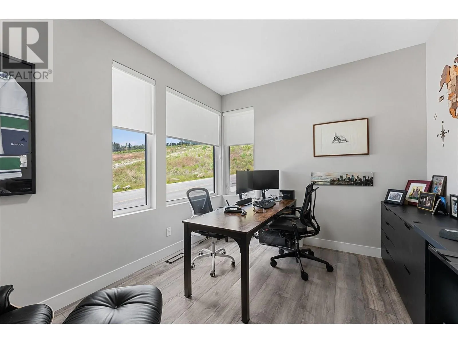 Gorgeous modern home in McKinley Beach where elevated Okanagan living meets thoughtful design & panoramic lake views. Situated on a rare 0.374-acre lot, this estate boasts a spacious family layout with resort-style amenities, expansive indoor-outdoor living, & a self-contained 2 bed/1 bath legal suite. The main level impresses with soaring ceilings, a chefâs kitchen featuring JennAir appliances, a massive island, & a seamless connection to the covered deckâperfect for al fresco dining. The luxurious primary suite enjoys sweeping lake &valley views, a spa-inspired ensuite, & a walk-through dressing room. A bright office, large pantry, powder room, & laundry complete this level. Downstairs, entertain in style with a rec room, wet bar with pass-through windows, wine cellar, & direct walkout access to the backyard oasis, featuring a heated saltwater pool, hot tub, & built-in firepit. Three additional beds & two baths offer flexibility. Upstairs, a versatile loft space is ideal for a home office or gym. The legal suite offers privacy & comfort with a separate deck, laundry, & private entrance. A highlight of this home is the 1300+ sq ft garage with cabinets, separate heat, & hard wired for network. Located minutes from the marina, airport, UBCO, wineries, & golf. Residents enjoy exclusive access to McKinleyâs amenity centre with gym, pool, hot tub, pickleball, & more. This is a rare opportunity to own one of the most versatile & beautifully appointed homes in McKinley Beach. (id:27476)