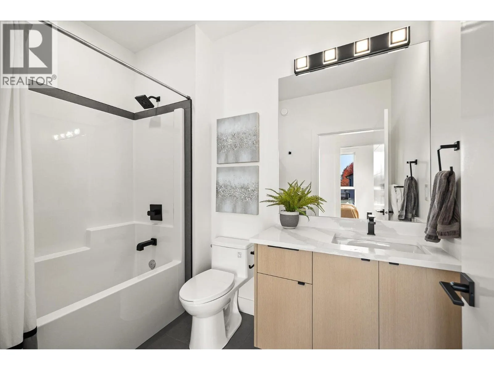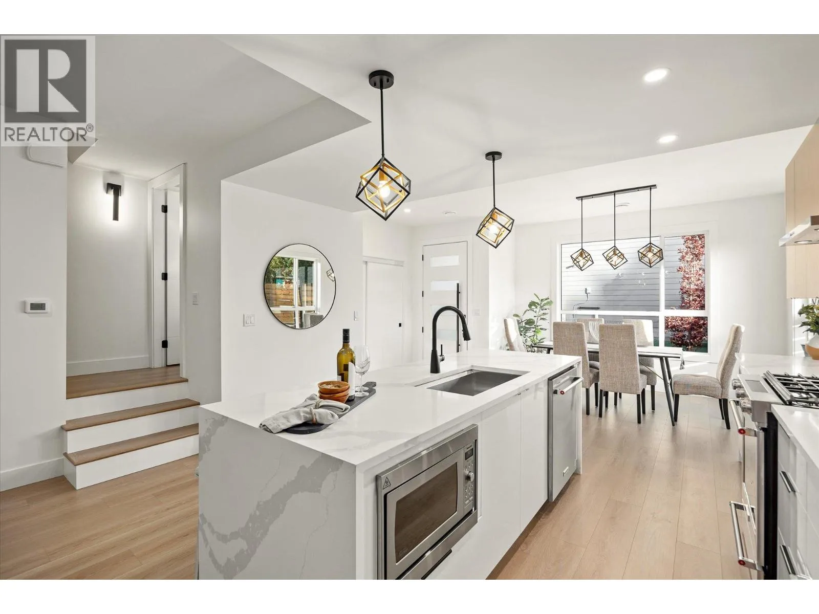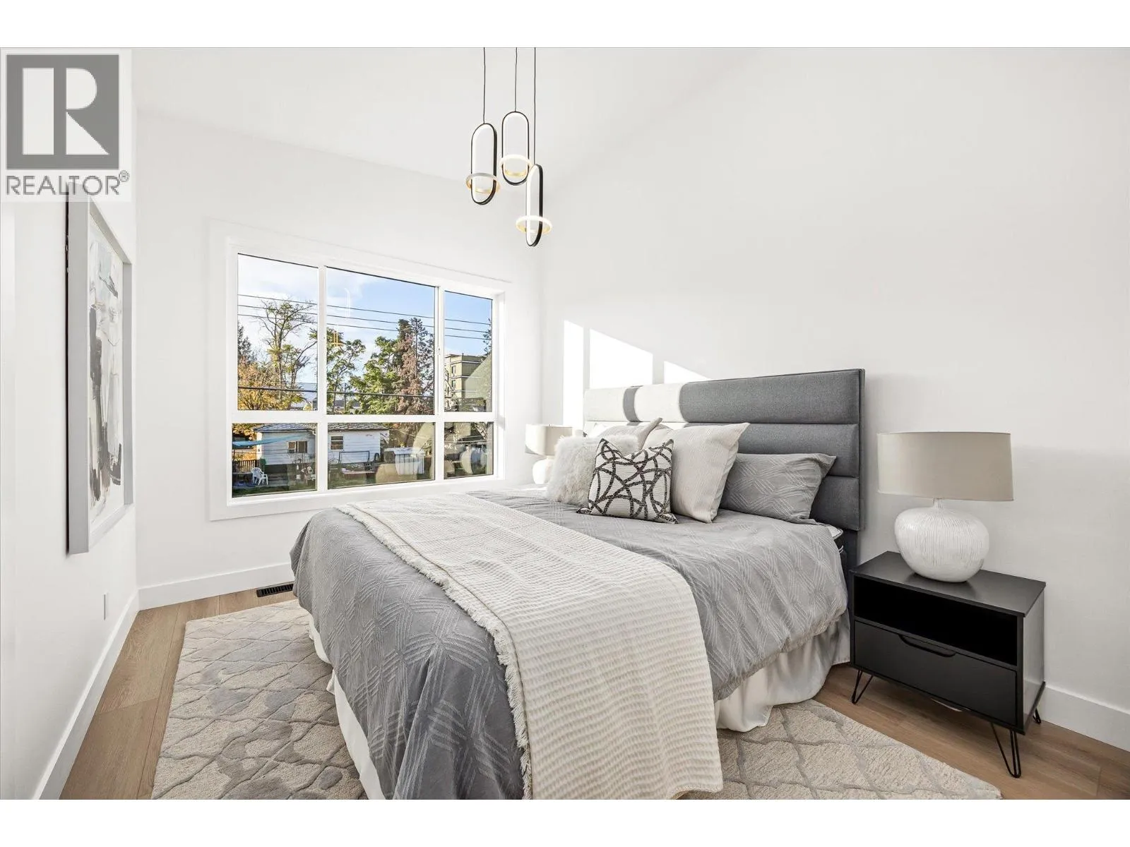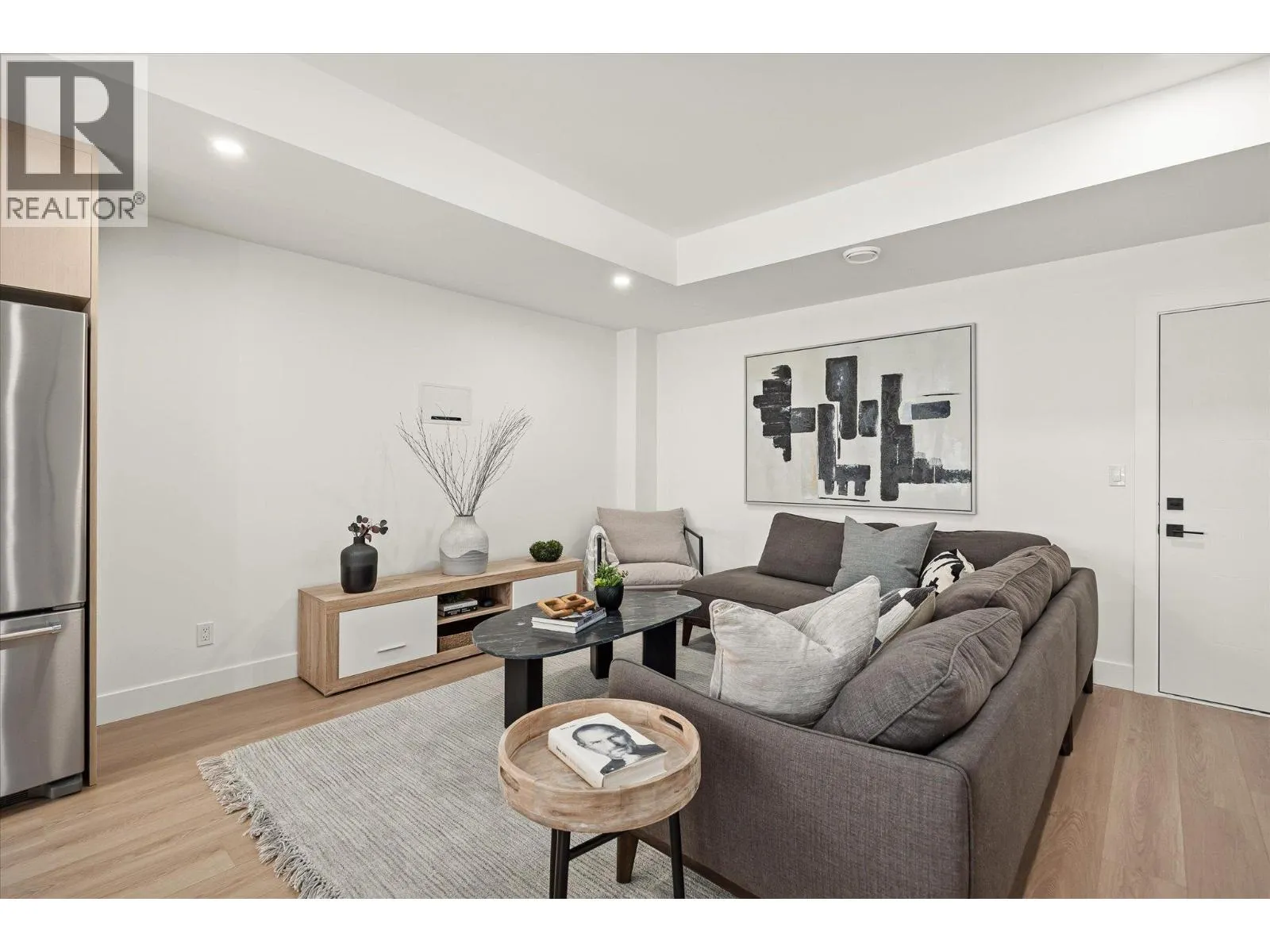 PTT EXEMPT and new GST Rebate for First Time Home Buyers! Experience modern living in this brand-new Kelowna South townhome, where modern design meets the vibrant Pandosy Village, offering boutique shops, diverse dining options, KGH and proximity to Okanagan Lake beaches. This elegant 3-bedroom, 2.5-bath residence merges refined interiors with outdoor appeal, featuring a fenced yard with pet-friendly turf and a 380 sq.ft. patio ideal for relaxation and entertaining. Inside, the open kitchen boasts premium KitchenAid appliances, a Kohler sink with lifetime warranty, quartz countertops, gas stove, and a waterfall-edge island. The second level features 12â vaulted ceilings and three bedrooms, including a primary suite with a walk-in closet, a 4-piece ensuite with his-and-her sinks, and chic tile around the tub. Details like LED lighting, Riobel faucets, and an EV-ready single-car garage add convenience and style. This townhome combines function and luxury in Kelownaâs top location. Embrace the lifestyle â book your private viewing today! (id:27476)