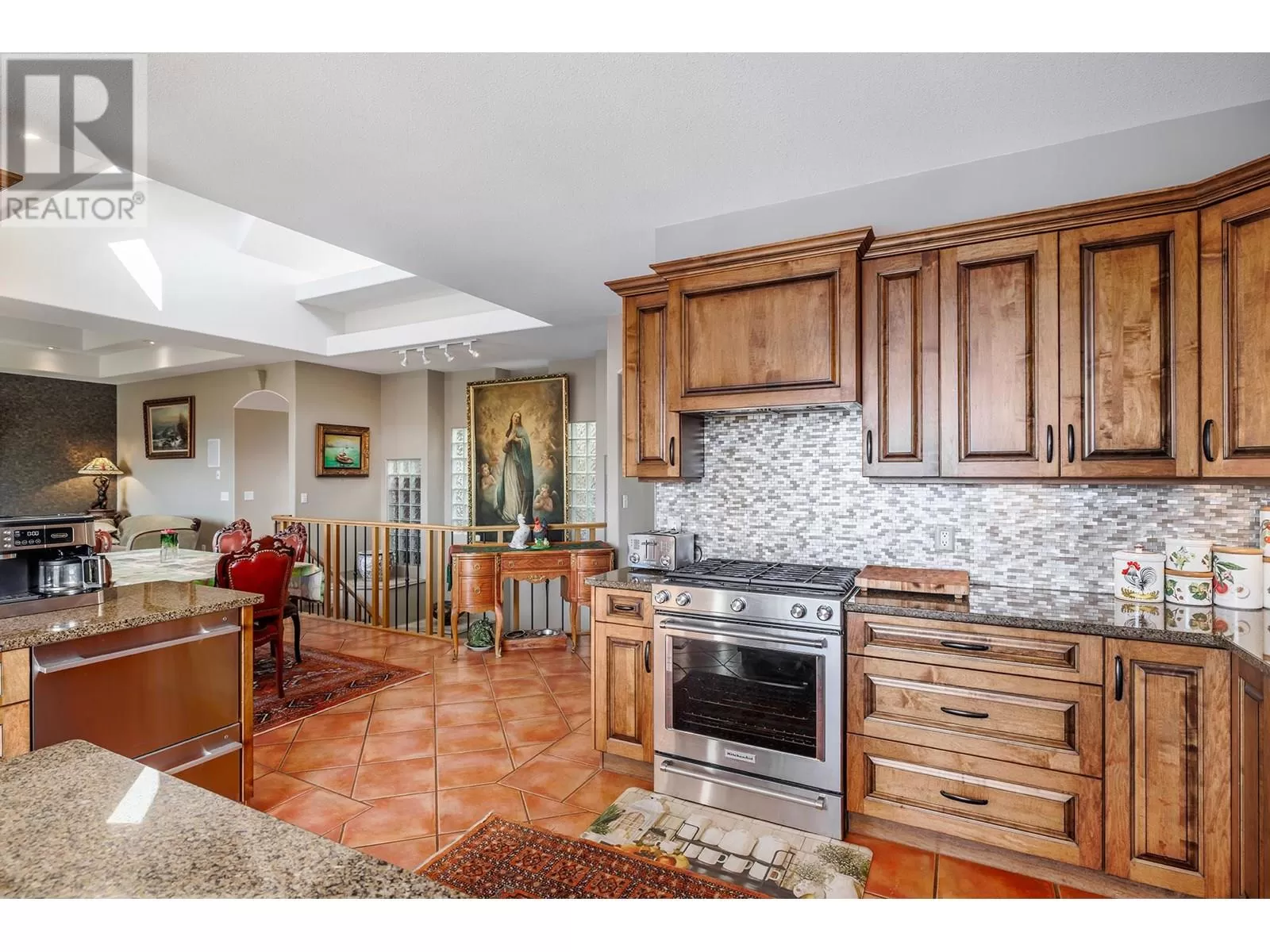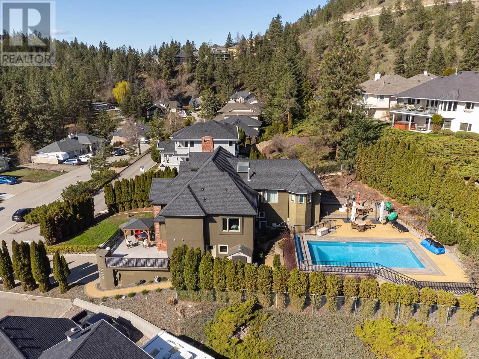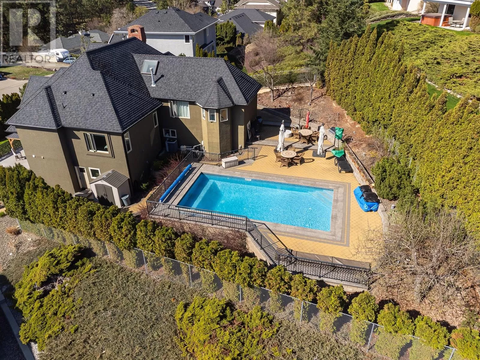 Stunning and sophisticated estate-like property blends timeless architectural grandeur with modern features. This Tuscan-style property features a layout that includes 6 bedrooms, 4 bathrooms, a gourmet kitchen and multiple living areas. Enjoy the private and luxurious primary suite with a walk-in closet and ensuite with a slipper tub and mountain views. The exterior boasts a stucco and brick facade with wrought iron details, a distinctive roofline, and a large yard with an apple tree, built-in BBQ, saltwater pool, hot tub, and shed. Enjoy relaxing or entertaining in the private oasis backyard with serene mountain views from the pool, or explore the trail network nearby. With custom finishes, vaulted ceilings, skylights, hardwood floors, and granite countertops, this home offers a luxurious lifestyle in a central location close to amenities. This home is also suite-able and is licensed for a B & B. (id:27476)
