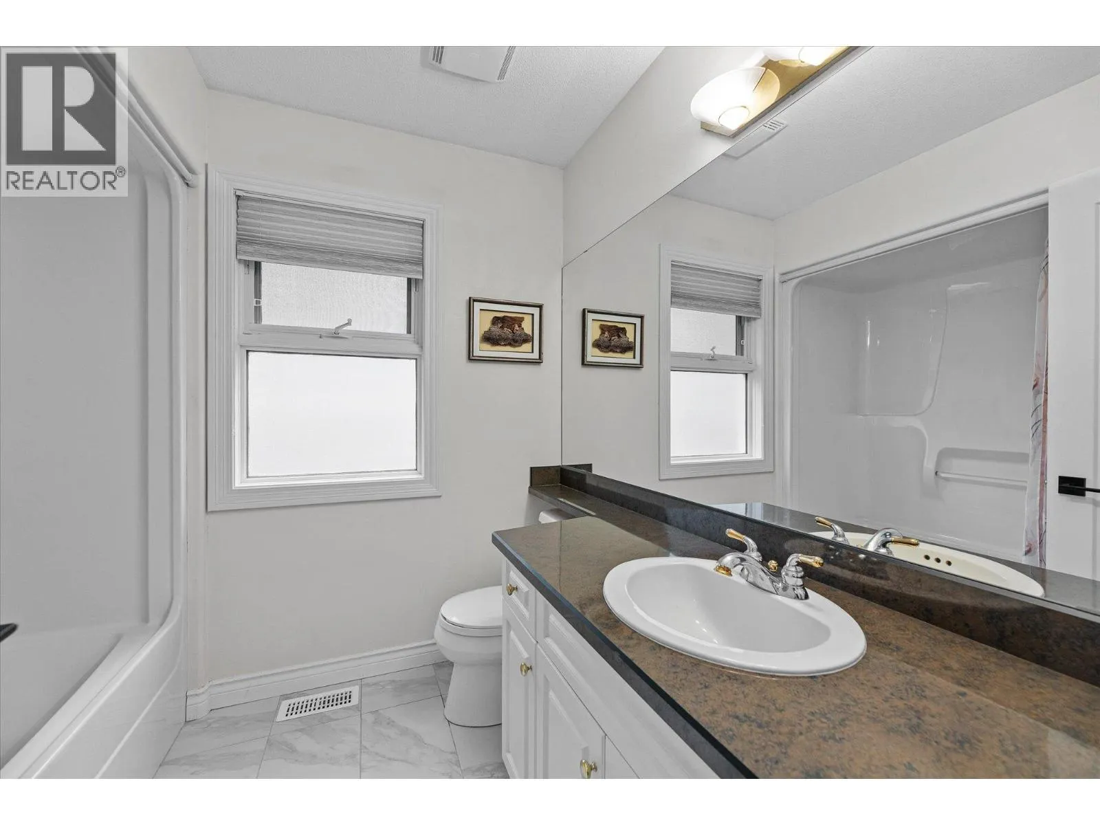 Discover the finer life in this beautifully updated home, nestled in one of Kelownaâs most sought-after enclaves, surrounded by exciting amenities. The main living space welcomes you with soaring vaulted ceilings and a breathtaking fireplace, perfectly framed by a statement feature window. The chefâs kitchen is a showstopper, complete with quartz backsplash, waterfall edge countertops, stainless steel appliances, and eat-at island with ample storage and prep space. Modern finishes shine throughout with new flooring and fresh paint, adding to the sleek and sophisticated feel. The main floor features a spacious primary with deck access, updated 5-piece ensuite, and a large walk-in closet. Upstairs, youâll find a second bedroom and a bedroom-sized den. Step outside to a private deck surrounded by greenery, perfect for outdoor entertaining and relaxation. Downstairs, a bright 2-bed self contained in-law suite with a new kitchen and separate entrance offers flexibility, easily convertible into a summer kitchen & hosting space with a games/media room. The exterior is freshly landscaped & wired for security, while the tranquil backyard oasis features a fish pond and wiring for a hot tub. Enjoy a 2 car garage that also has room for your golf cart! Located in the vibrant Gallaghers Canyon Golf Community which offers top-notch amenities like a gym, pool/spa, games room, library, workshops, fitness classes, social clubs, tennis courts and more. This exceptional home is waiting for you. (id:27476)