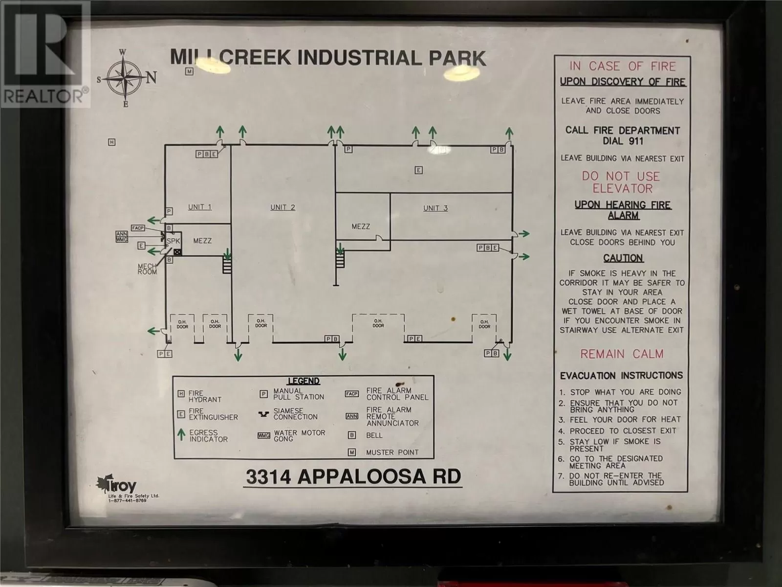 Located in the heart of Kelownaâs industrial core, Units #2/3/4 at 3314 Appaloosa Road offer 15,400 SF of combined strata space, ideal for a variety of industrial or commercial operations. This rare opportunity includes three connected units sold as one, with a secured and paved 15,000 SF yard, perfect for outdoor storage or workspace. The premises feature a functional mix of a built-out office, mezzanine, and warehouse space, with 21â clear ceiling height and three grade-level loading doors (one 20'W x 14'H and two 12'W x 14'H) for efficient logistics. Zoned as both I2 â General Industrial and I1 â Business Industrial, the property suits a wide range of users. Contact the listing agents for pricing and strata details. (id:27476)