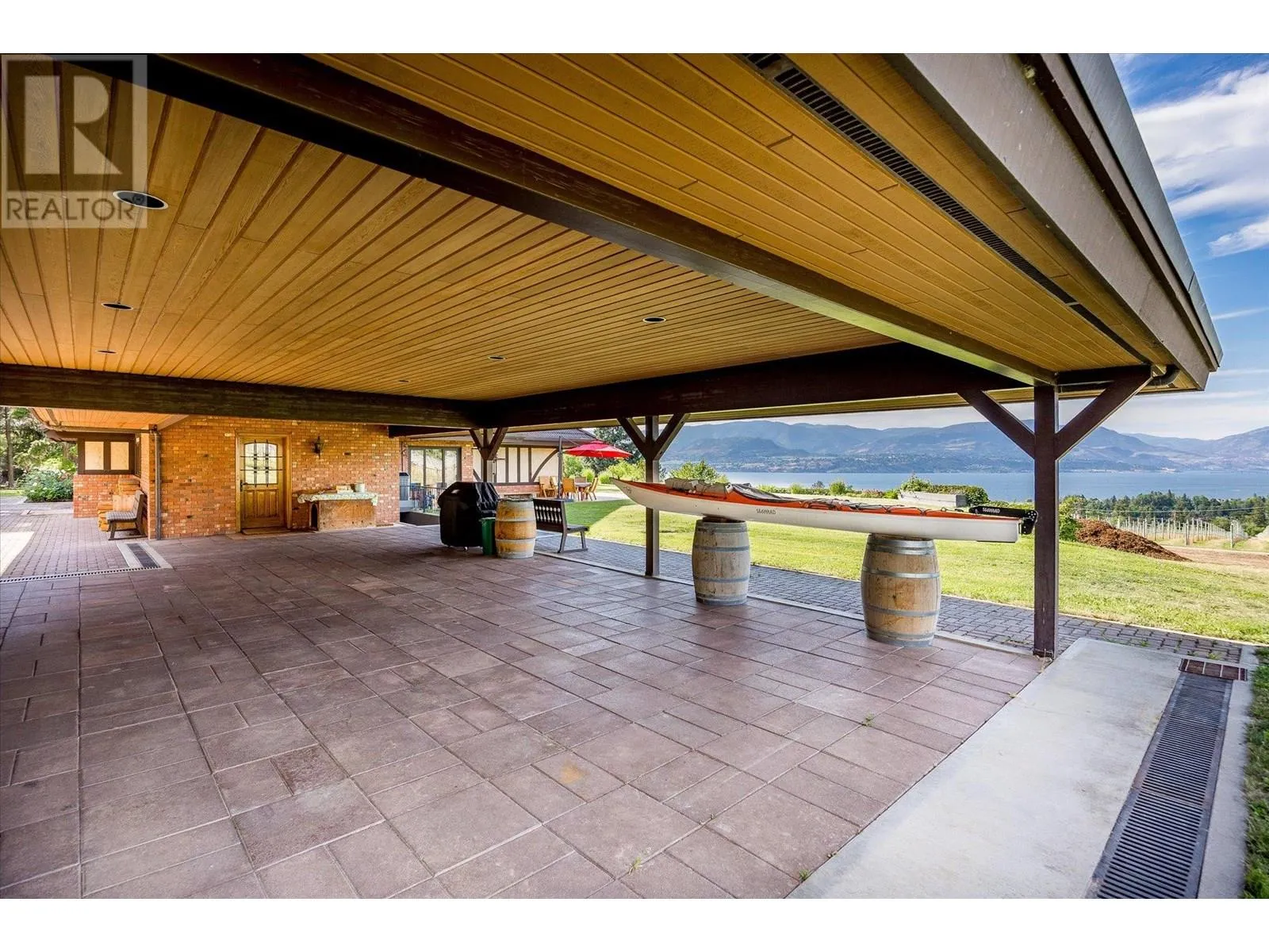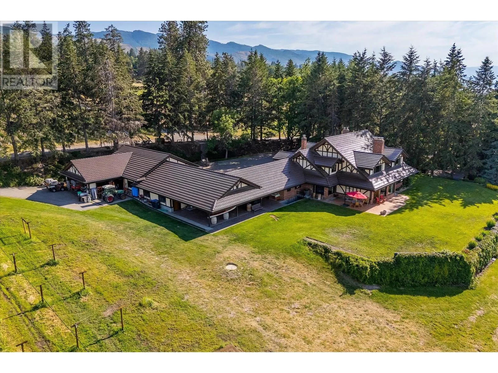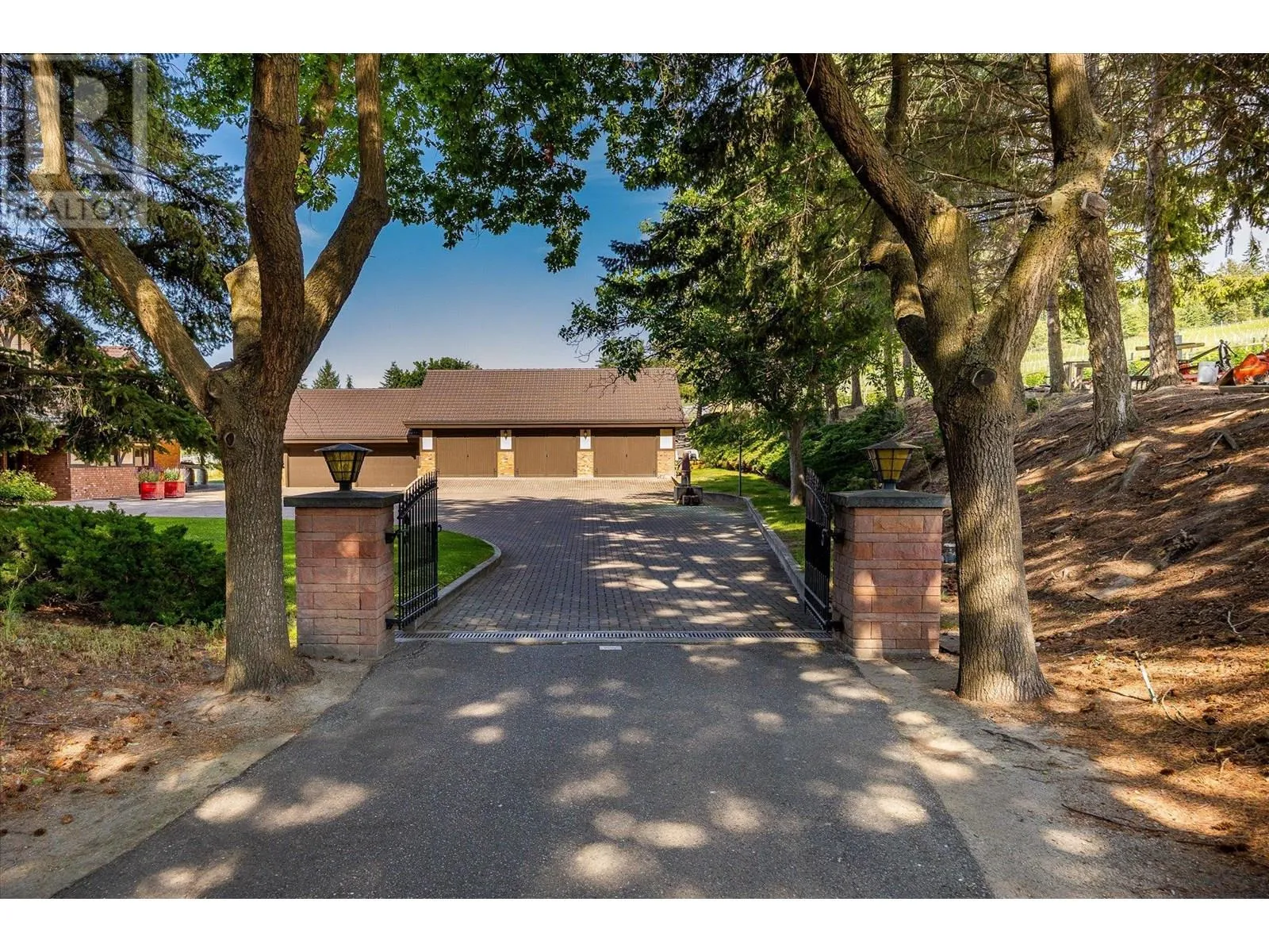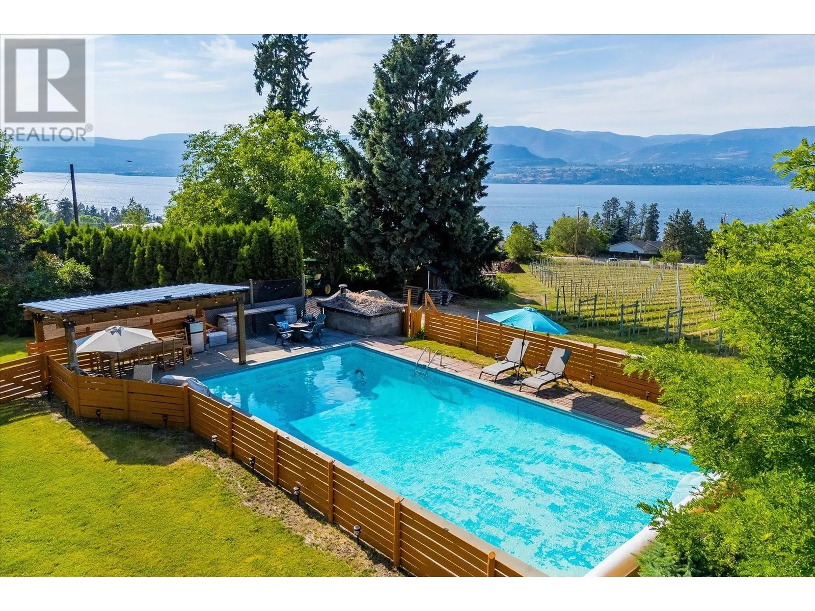 K & V Vineyards (4855 Chute Lake Rd. and 4895 Frost Rd.) is a 40-acre private estate located above Okanagan Lake, just minutes from downtown Kelowna. The property features a stunning European Craftsman residence with 7,442 SF of handcrafted living space, including 5 bedrooms, 6 bathrooms, and numerous custom details, all surrounding a spacious courtyard. An oversized garage and workshop are connected by a breezeway. The second residence is a 3,900 SF rancher with a covered backyard patio, perfect for enjoying sunset views and the natural beauty of the Okanagan. Additional structures include a renovated log cabin and a vintage red barn, adding character to the estate. The fully fenced and irrigated grounds sit on a gentle northwest-facing slope, with rows of vines aligned north-south for optimal sun exposure and mountain breezes, creating excellent growing conditions. The current plantings include 6 acres of Pinot Gris, 5 acres of Riesling, and 4 acres of Pinot Noir, established in May 2025, with plans for future plantings of Chardonnay and additional Pinot Noir. The estate is well-suited for managing and leasing to a reputable winery, offering a rare opportunity to enjoy luxurious living while operating an agricultural enterprise. (id:27476)