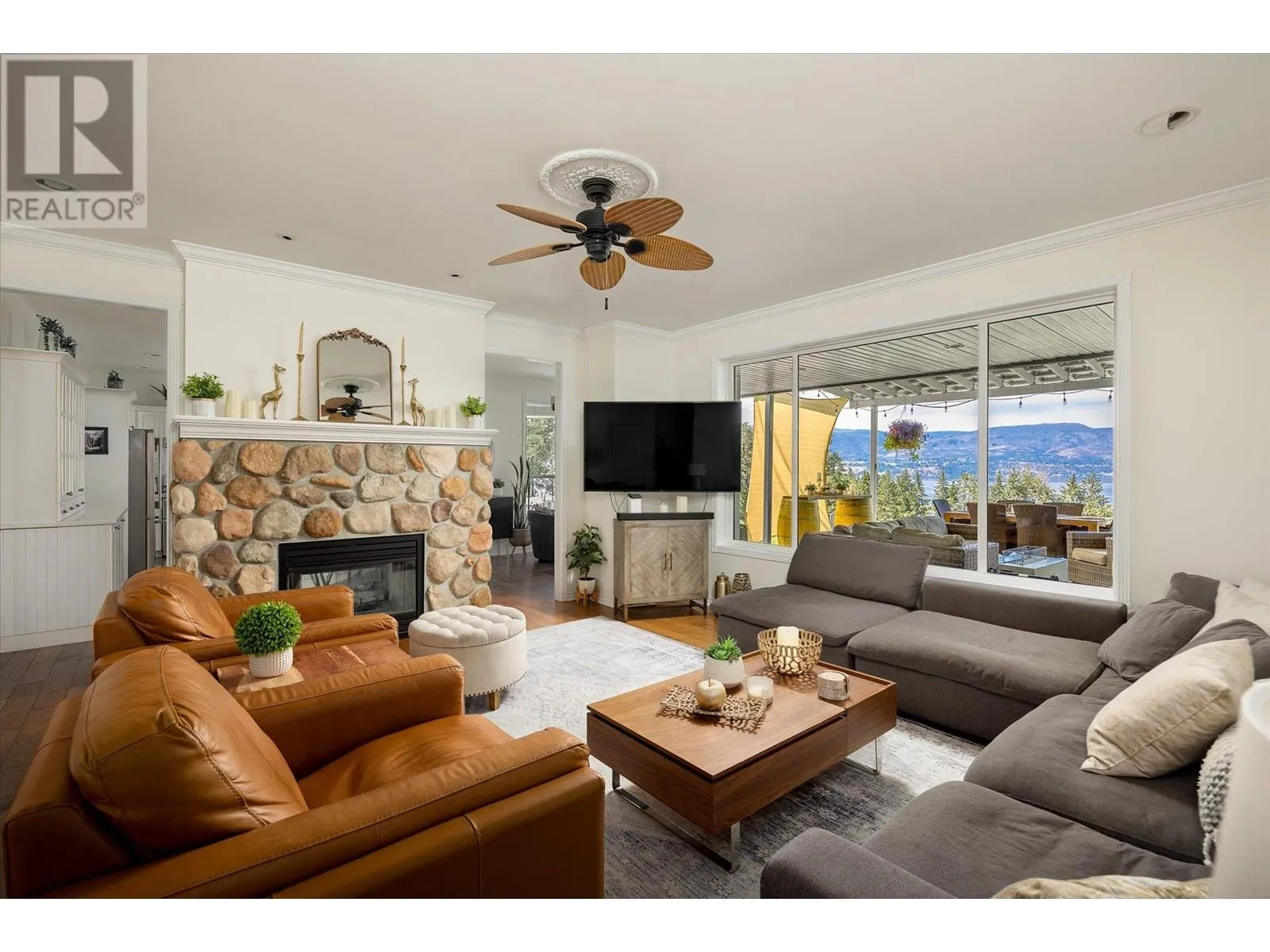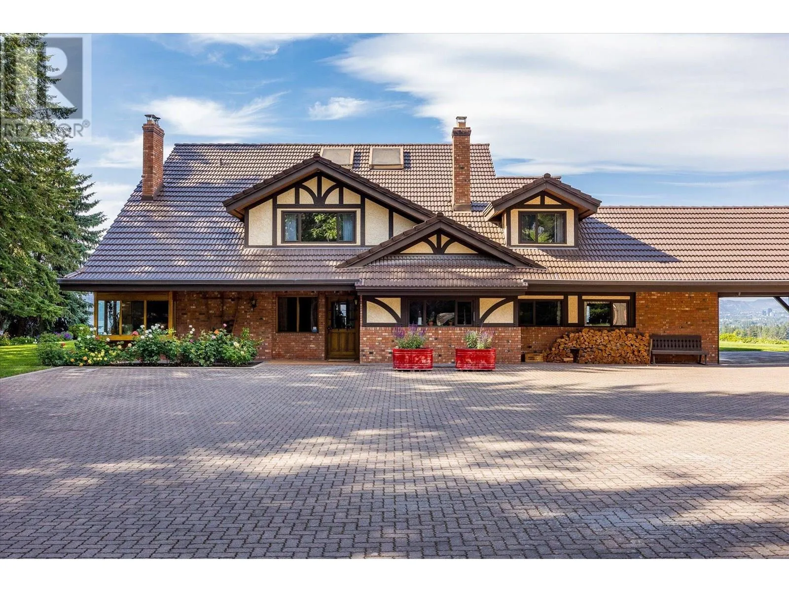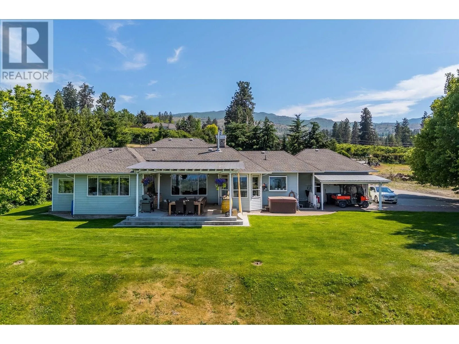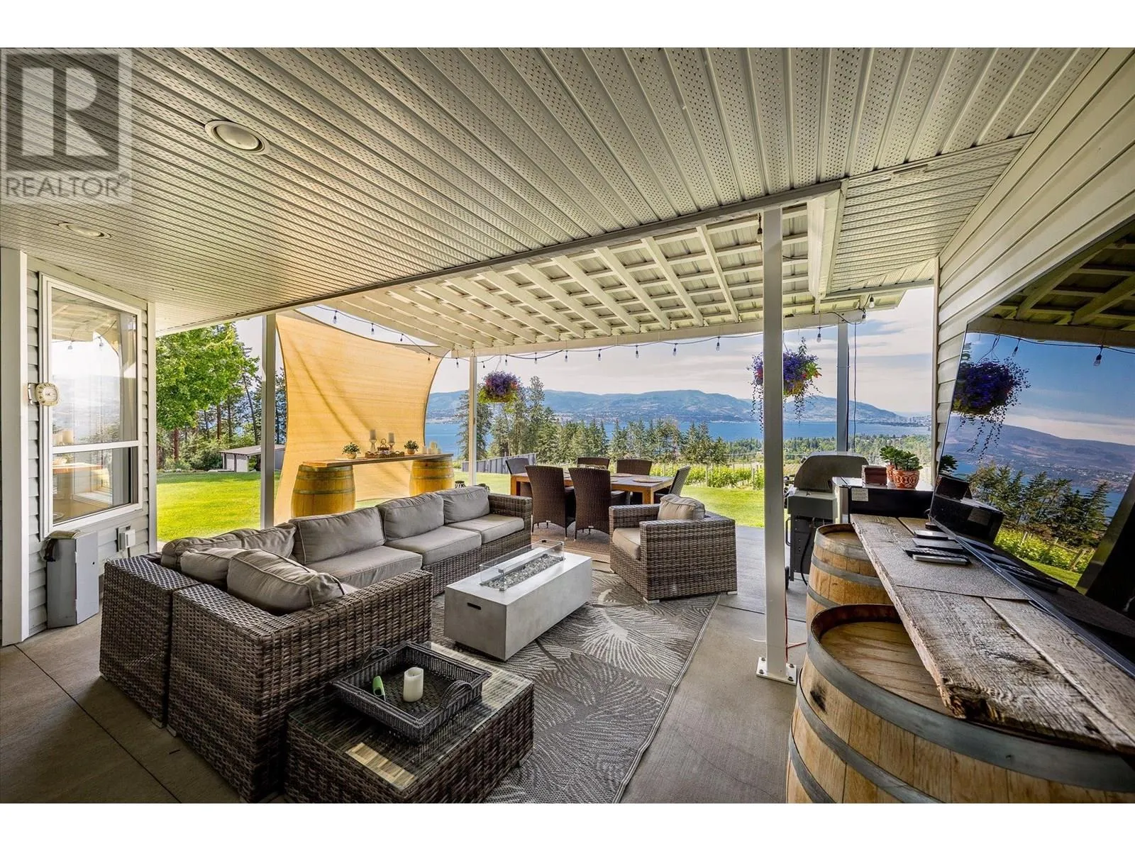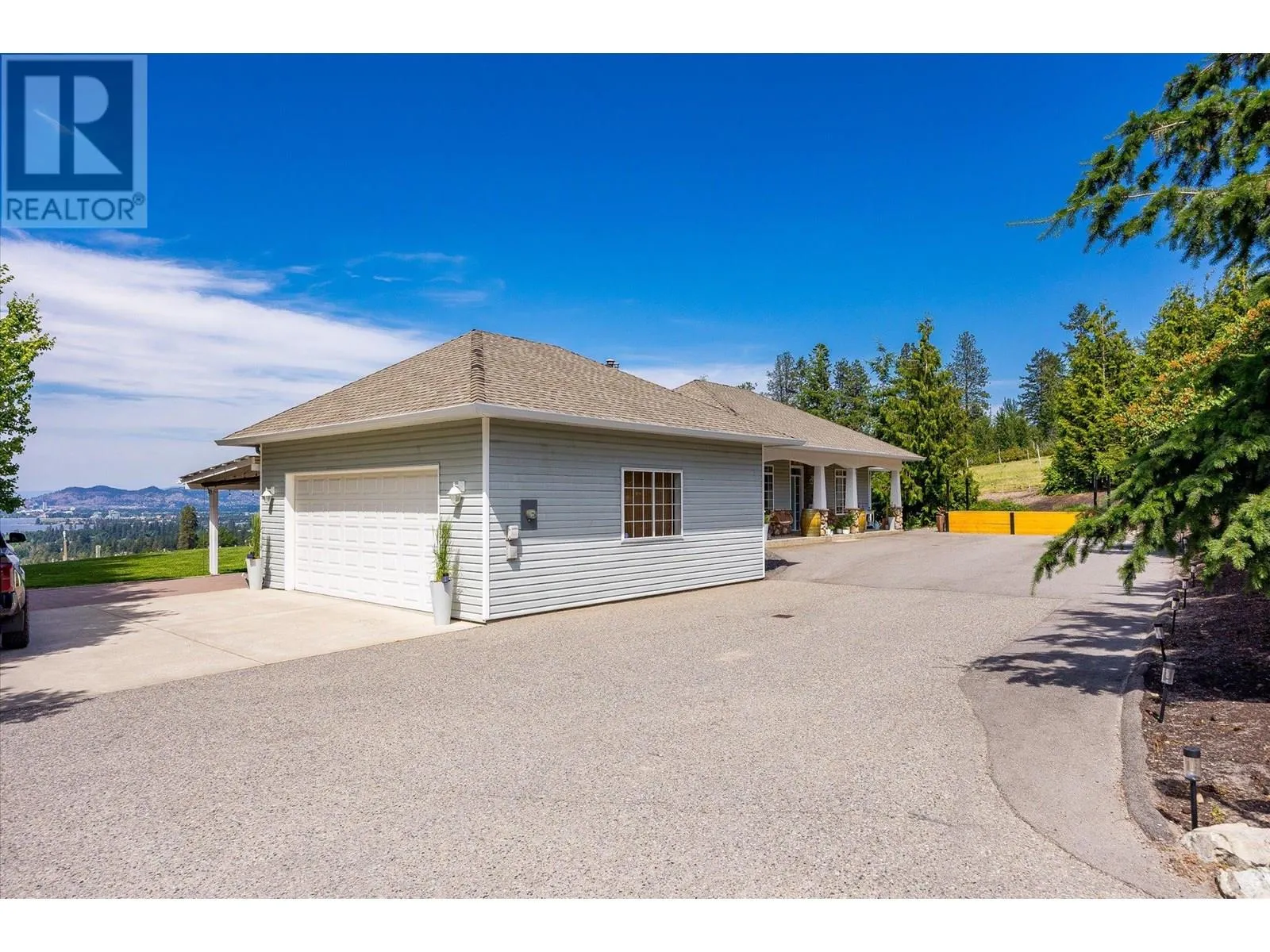 K & V Vineyards (4855 Chute Lake Rd. and 4895 Frost Rd.) is a 40-acre private estate located above Okanagan Lake, just minutes from downtown Kelowna. The property features a stunning European Craftsman residence with 7,442 SF of handcrafted living space, including 5 bedrooms, 6 bathrooms, and numerous custom details, all surrounding a spacious courtyard. An oversized garage and workshop are connected by a breezeway. The second residence is a 3,900 SF rancher with a covered backyard patio, perfect for enjoying sunset views and the natural beauty of the Okanagan. Additional structures include a renovated log cabin and a vintage red barn, adding character to the estate. The fully fenced and irrigated grounds sit on a gentle northwest-facing slope, with rows of vines aligned north-south for optimal sun exposure and mountain breezes, creating excellent growing conditions. The current plantings include 6 acres of Pinot Gris, 5 acres of Riesling, and 4 acres of Pinot Noir, established in May 2025, with plans for future plantings of Chardonnay and additional Pinot Noir. The estate is well-suited for managing and leasing to a reputable winery, offering a rare opportunity to enjoy luxurious living while operating an agricultural enterprise. (id:27476)