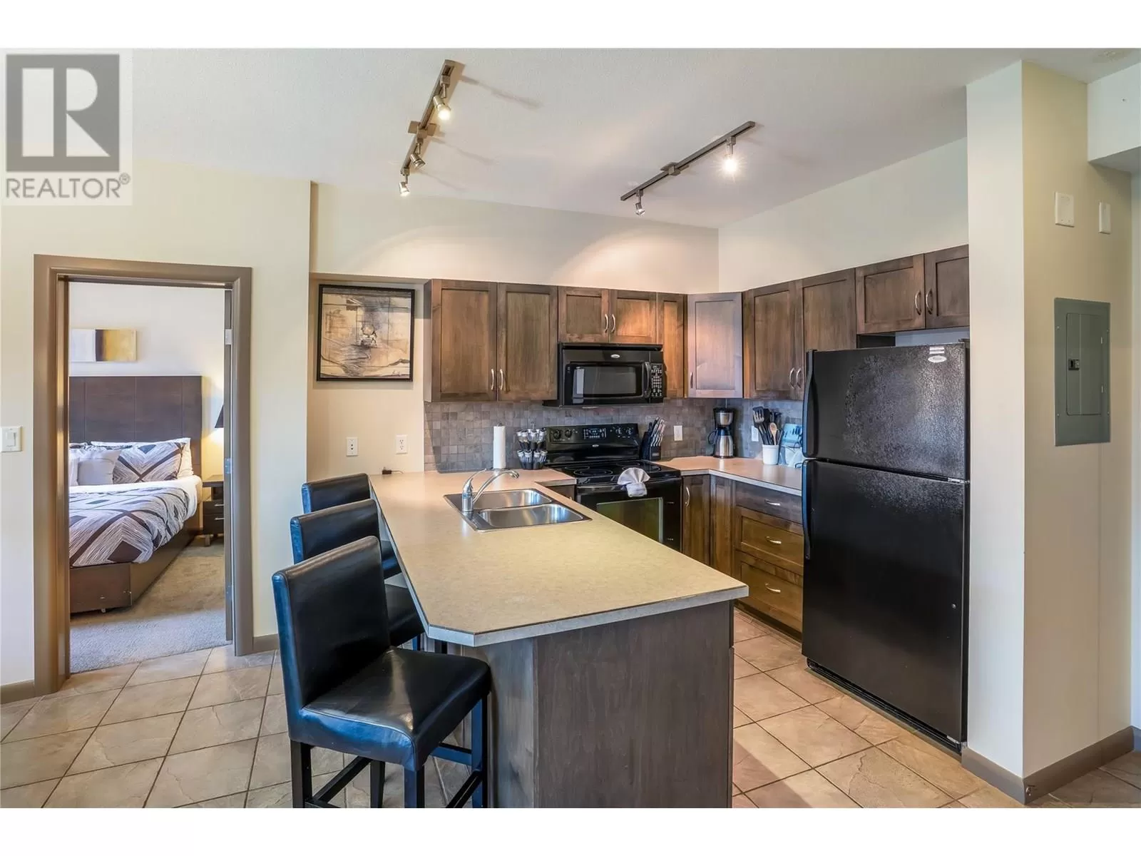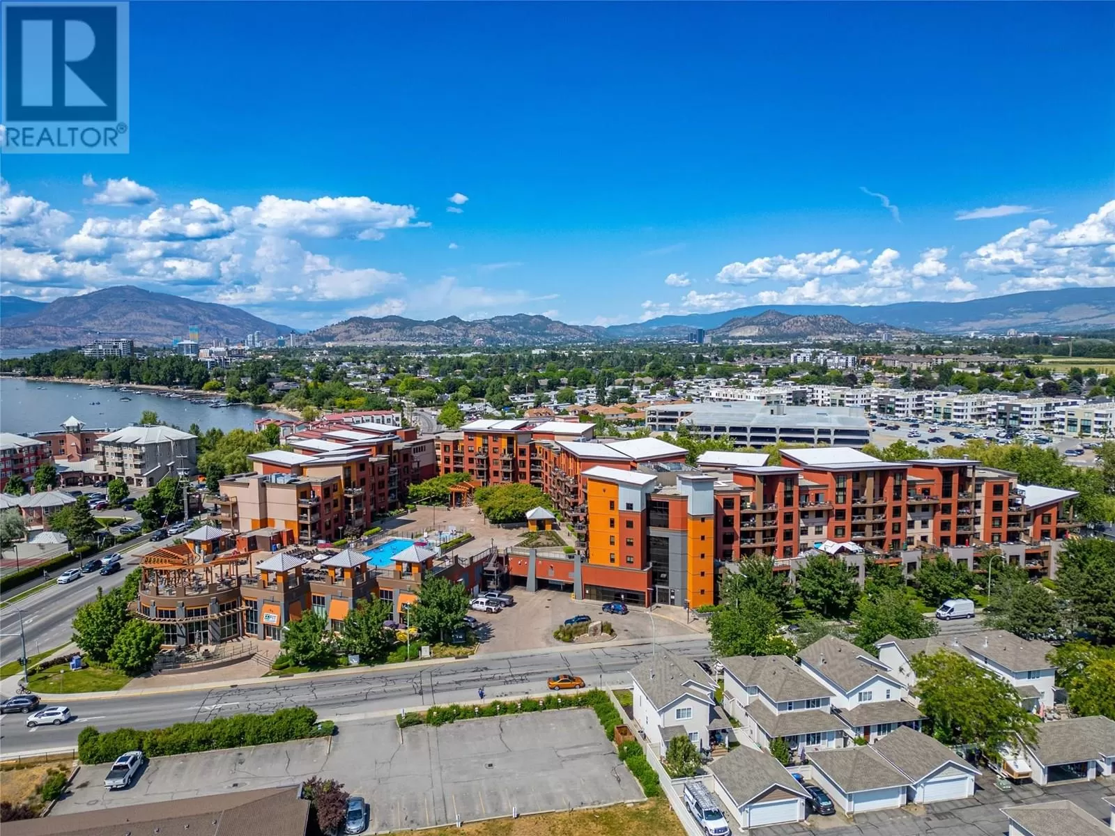 BEST VALUE for a TOP FLOOR UNIT in PLAYA DEL SOL. $50K UNDER ASSESSED value and TWO parking stalls! Sunshine, cocktails, and the ultimate vacation-vibes-only location...welcome to Playa Del Sol in the heart of Kelownaâs Lower Mission! This fully furnished 2-bedroom, 2-bath top-floor corner unit is exactly what your lifestyle has been waiting for. Soaring ceilings, extra windows, lake views from the best poolside deck in town, and no stompy upstairs neighbors? Yes please! Inside: a bright open layout, two spacious bedrooms on opposite sides for privacy, full-sized kitchen, a legit DEN (not a closet), in-suite laundry, and a private balcony for sunset sips or espresso filled people watching. Outside: heated outdoor pool, hot tub, gym, BBQ areas, and vibes for days. Youâre just steps to Gyro Beach, the Eldorado, Cabana, H2O, paddleboard rentals, and more patios than your liver can handle. Bonus: 2 secure underground parking stalls (rare!), and pets allowed (yep-even your 15â tall floofs)...this the perfect vacation spot. Think the strata fees look spicy? Relax -they cover your heating, cooling, water, and more... basically everything but your late-night Netflix habit. Plus, those resort-style amenities? Chefâs kiss. Worth every penny. Whether you're locking and leaving, living the dream, or waiting for the Airbnb rules to chill out...this place is a certified vibe. (id:27476)