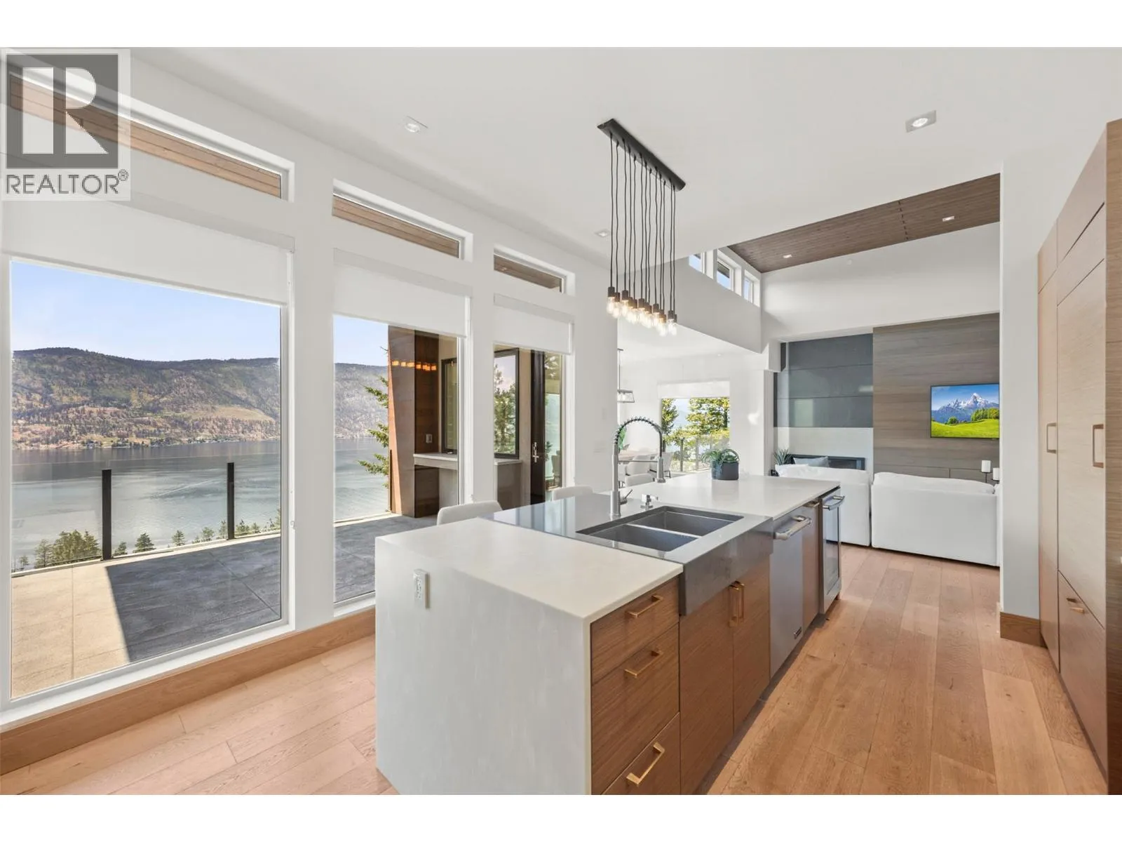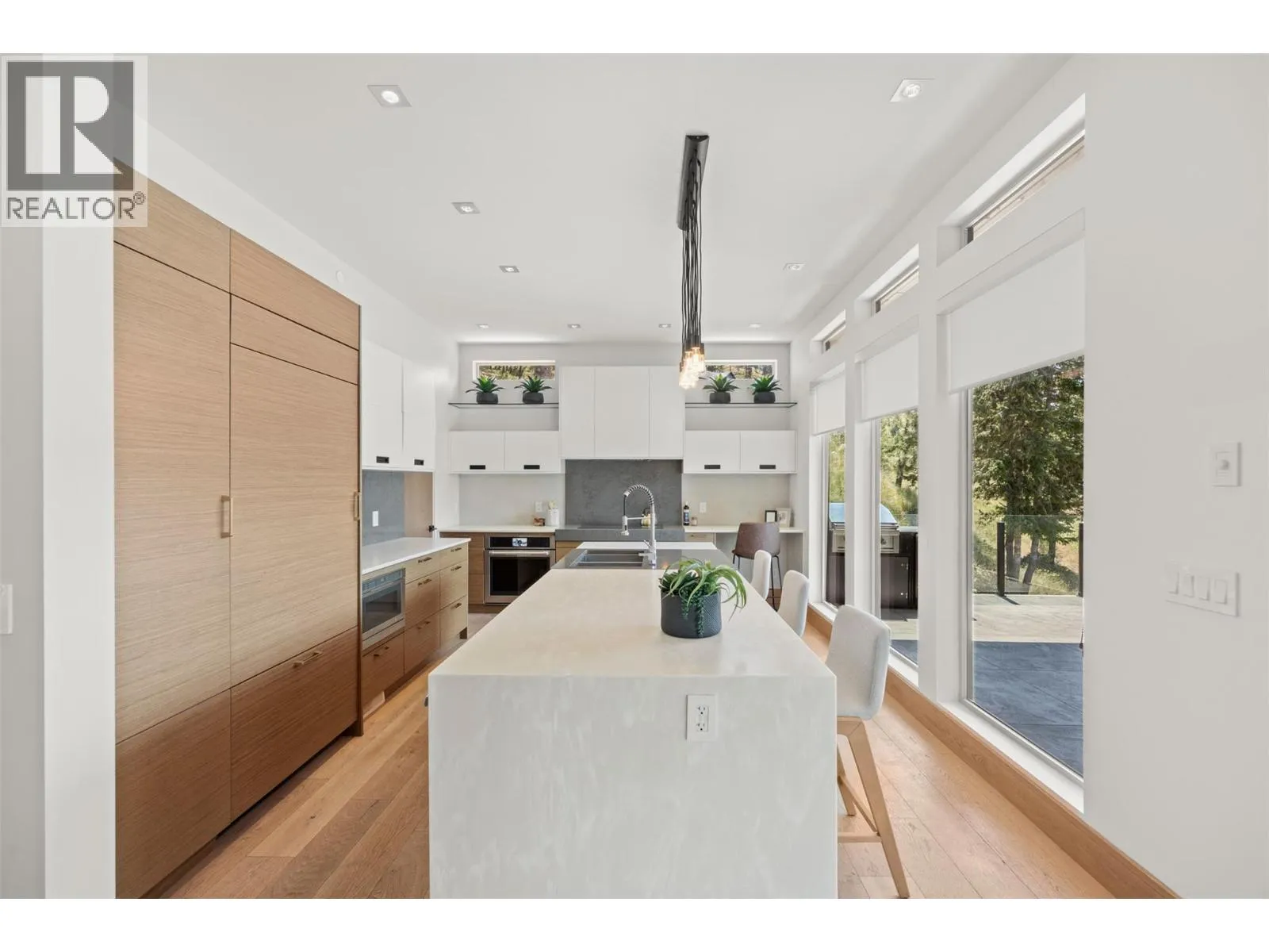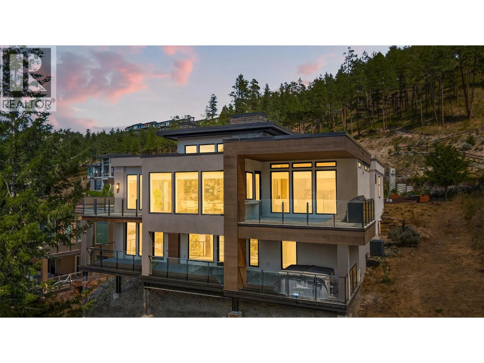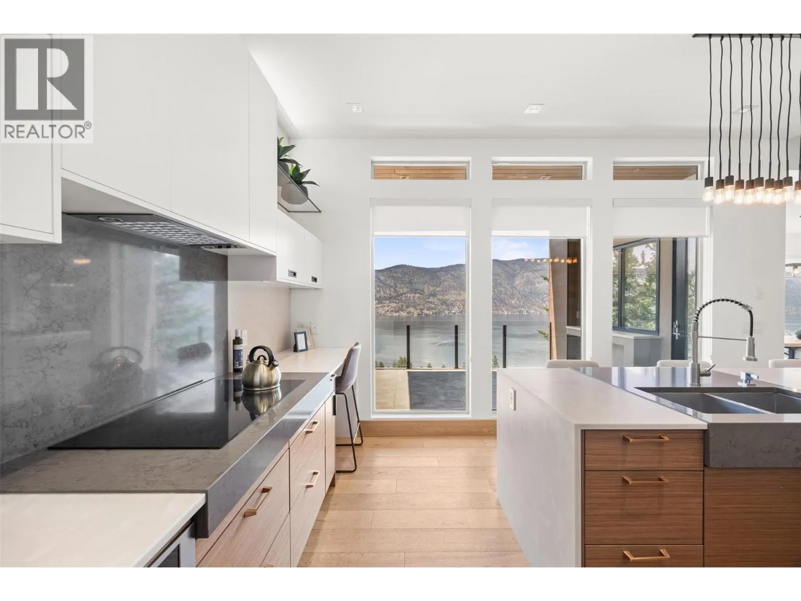 This masterpiece is a West Coast Contemporary home located in McKinley Beach. This former showhome combines thoughtful design and quality craftsmanship in one of Kelownaâs most desirable settings. With more than 3,400 square feet of living space across two levels, the layout is bright and open, designed to take full advantage of the lake views with expansive windows throughout. The home features four bedrooms, three full bathrooms, and a walk-out lower level. The kitchen includes a panel-ready built-in fridge, top end appliances, a wine fridge, and a walk-in wine room beside a fully finished bar area. An outdoor kitchen setup is in place, perfect for enjoying the west-facing lake views over Okanagan Lake, the marina, and the beach. Soak in the hot tub while taking in sweeping, unobstructed lake views that stretch across the horizonâan unforgettable backdrop for sunset evenings or starlit nights. This is luxury living at its most serene.Located in a vibrant waterfront community and lakeside living with everything close at hand. (id:27476)