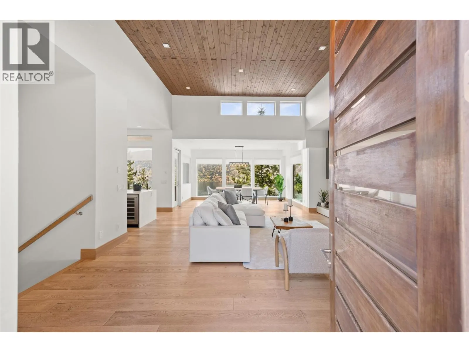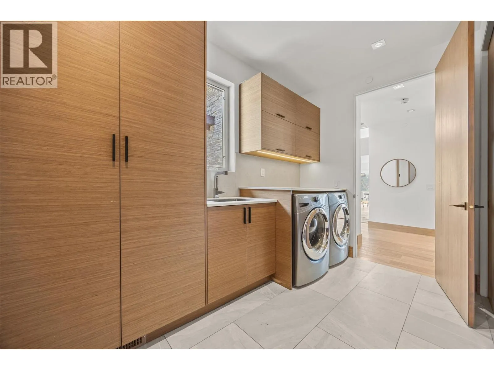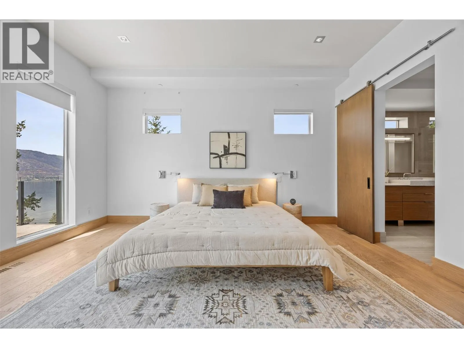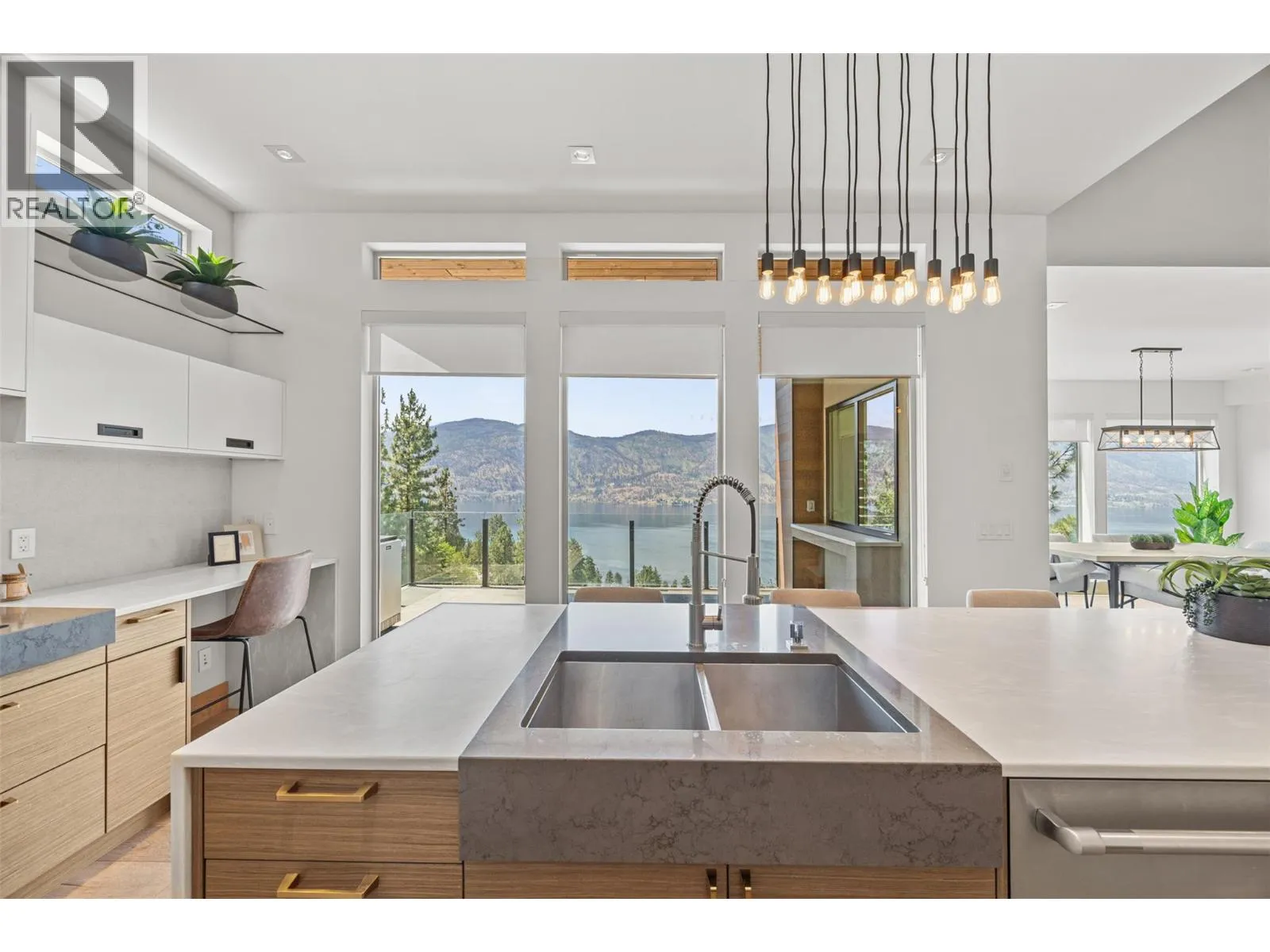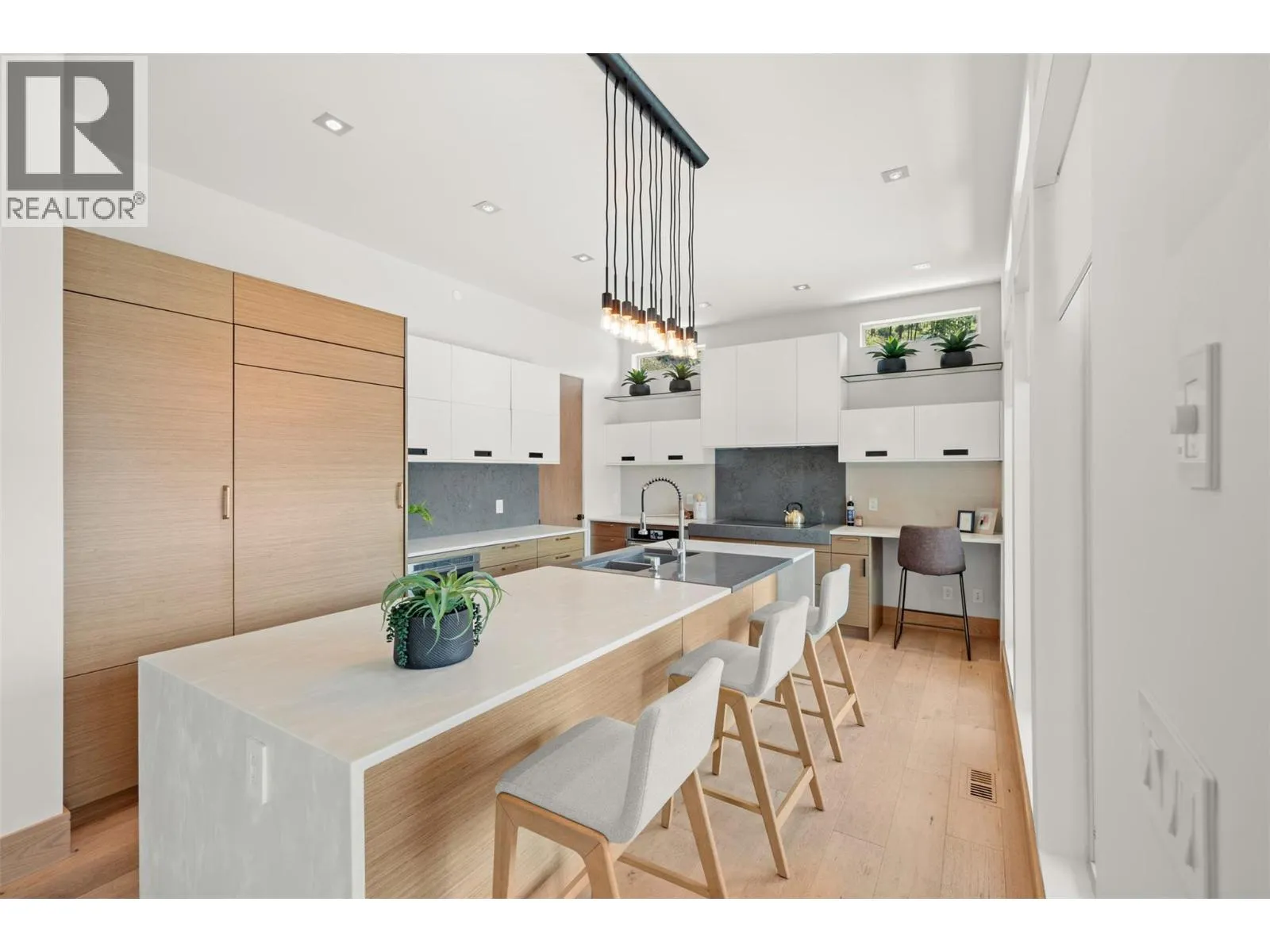 This masterpiece is a West Coast Contemporary home located in McKinley Beach. This former showhome combines thoughtful design and quality craftsmanship in one of Kelownaâs most desirable settings. With more than 3,400 square feet of living space across two levels, the layout is bright and open, designed to take full advantage of the lake views with expansive windows throughout. The home features four bedrooms, three full bathrooms, and a walk-out lower level. The kitchen includes a panel-ready built-in fridge, top end appliances, a wine fridge, and a walk-in wine room beside a fully finished bar area. An outdoor kitchen setup is in place, perfect for enjoying the west-facing lake views over Okanagan Lake, the marina, and the beach. Soak in the hot tub while taking in sweeping, unobstructed lake views that stretch across the horizonâan unforgettable backdrop for sunset evenings or starlit nights. This is luxury living at its most serene.Located in a vibrant waterfront community and lakeside living with everything close at hand. (id:27476)