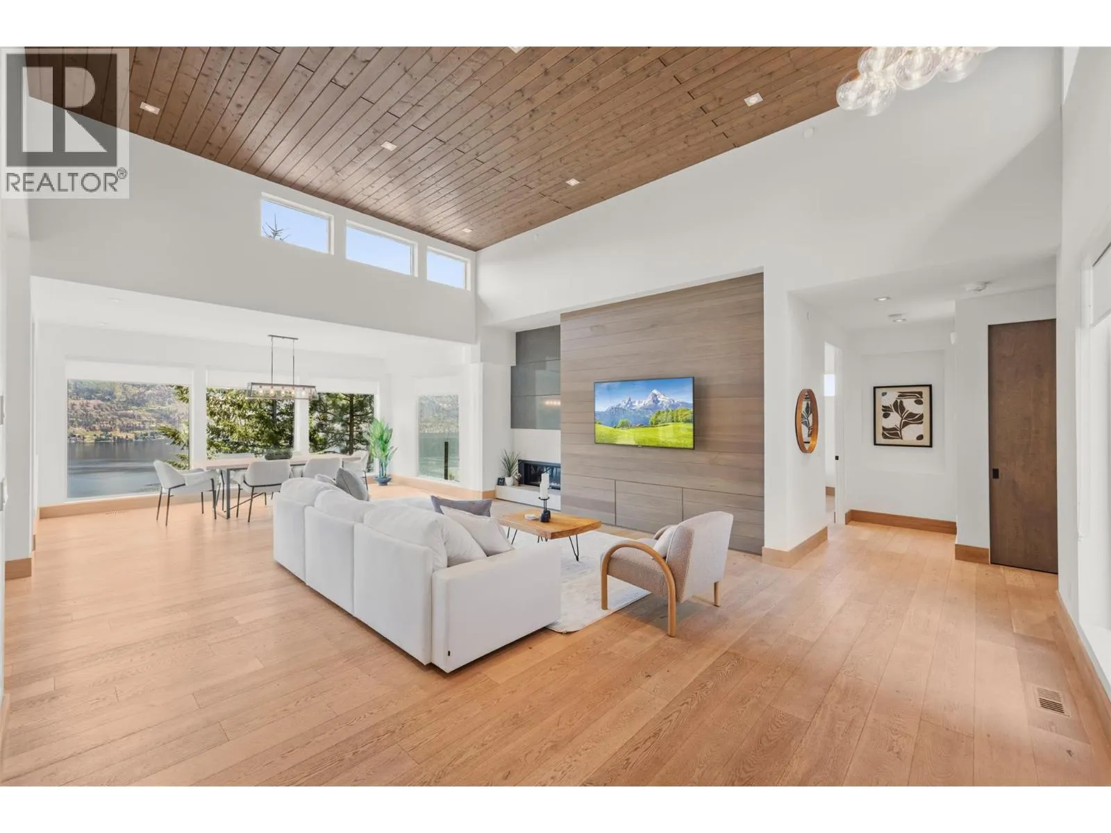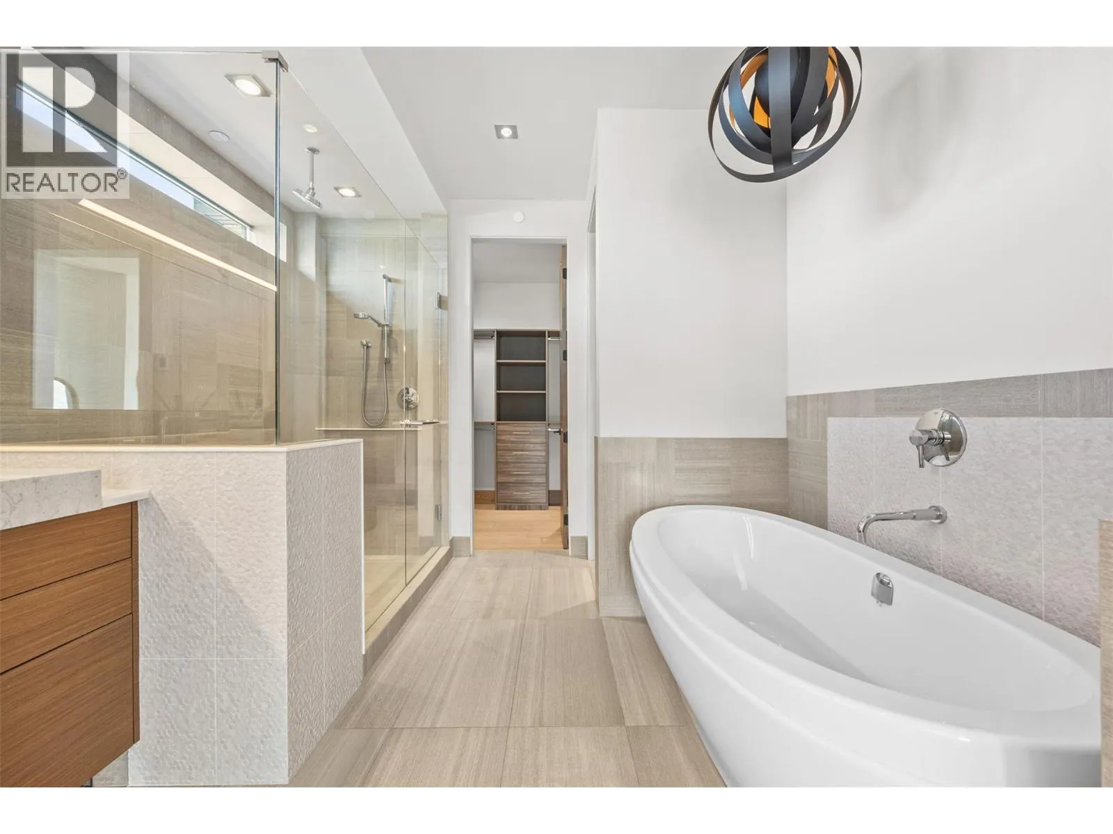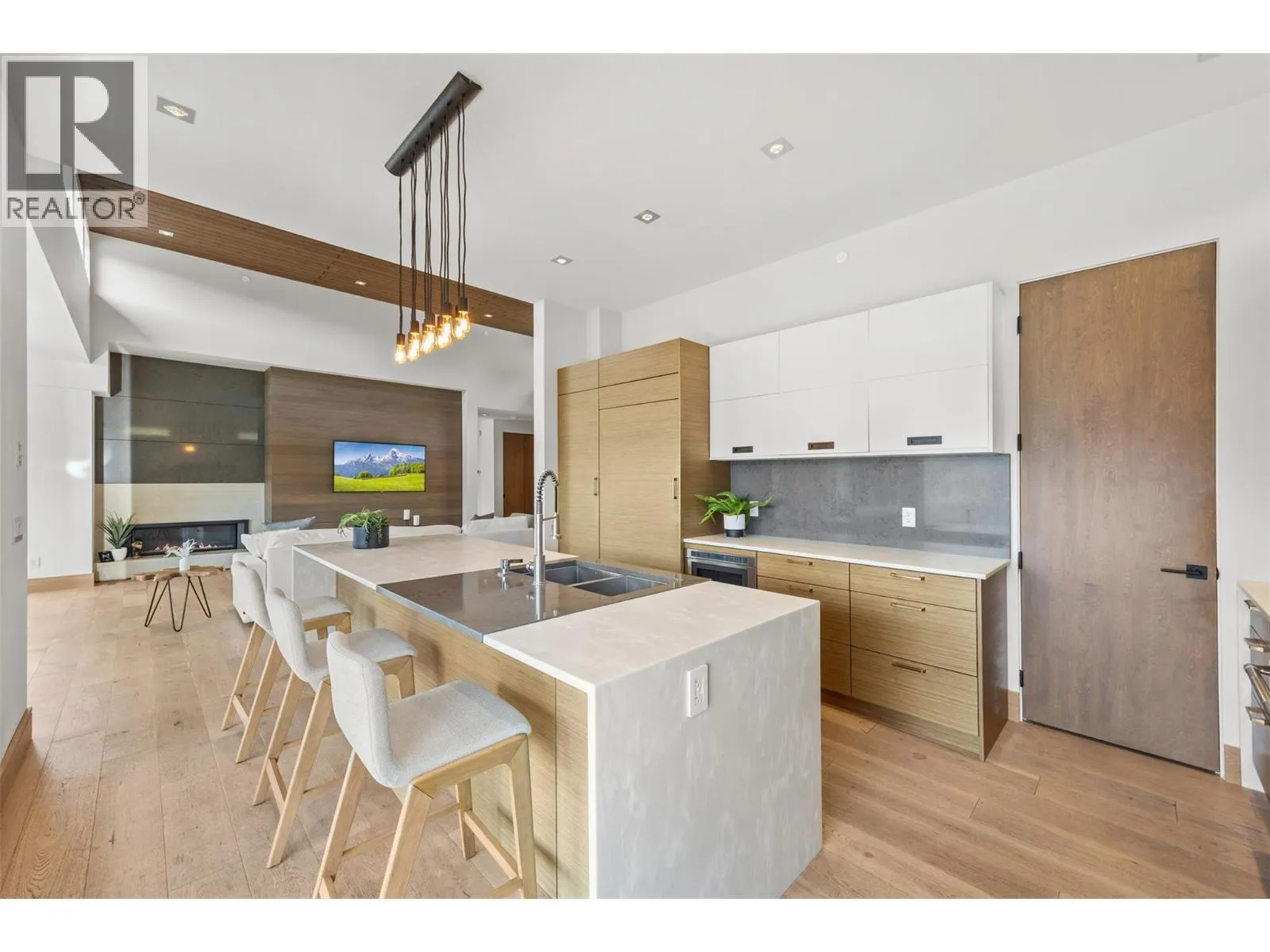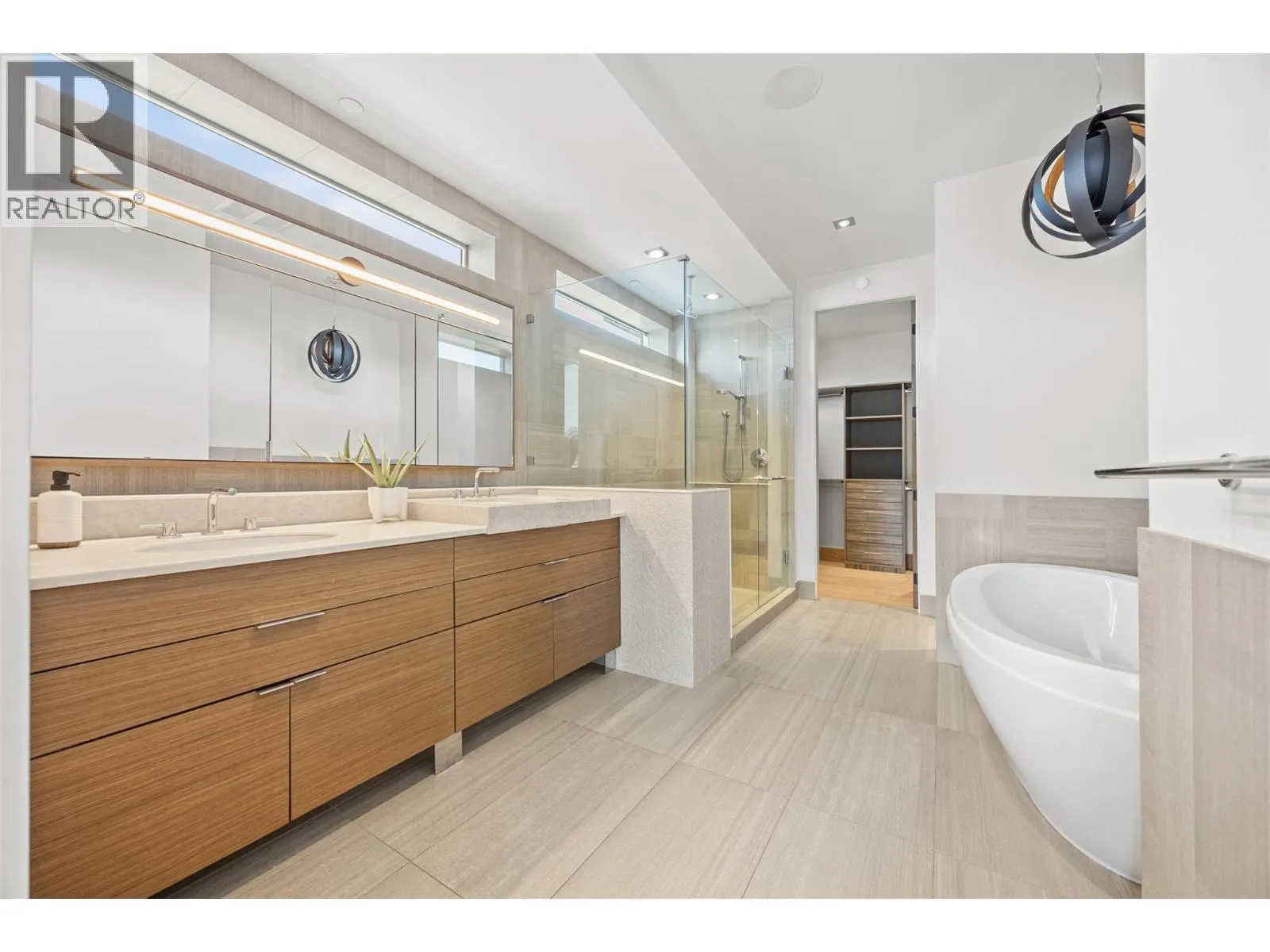 This masterpiece is a West Coast Contemporary home located in McKinley Beach. This former showhome combines thoughtful design and quality craftsmanship in one of Kelownaâs most desirable settings. With more than 3,400 square feet of living space across two levels, the layout is bright and open, designed to take full advantage of the lake views with expansive windows throughout. The home features four bedrooms, three full bathrooms, and a walk-out lower level. The kitchen includes a panel-ready built-in fridge, top end appliances, a wine fridge, and a walk-in wine room beside a fully finished bar area. An outdoor kitchen setup is in place, perfect for enjoying the west-facing lake views over Okanagan Lake, the marina, and the beach. Soak in the hot tub while taking in sweeping, unobstructed lake views that stretch across the horizonâan unforgettable backdrop for sunset evenings or starlit nights. This is luxury living at its most serene.Located in a vibrant waterfront community and lakeside living with everything close at hand. (id:27476)