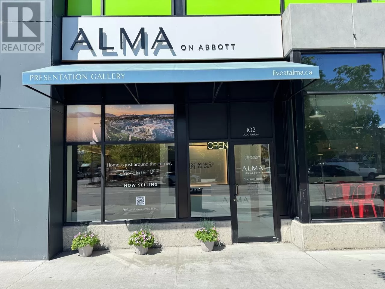 Take advantage of this exceptional opportunity to sub-lease a high-profile, finished showroom/office space in SOPA Square, situated in Kelownaâs highly desirable Pandosy Village area in Lower Mission. Unit 102 provides an opportunity to sub-lease 1,524 square feet of prime retail space, offering a perfect location just steps away from the beautiful lake, charming coffee shops, and a variety of popular restaurants. This versatile unit is suitable for a wide range of business uses, making it an excellent choice for any business owner looking to establish a presence in a vibrant community. Additionally, it features a rare and prominent signage opportunity right on Pandosy Street, ensuring excellent visibility. Donât miss out on the chance to establish your business in this vibrant and sought-after location. (id:27476)