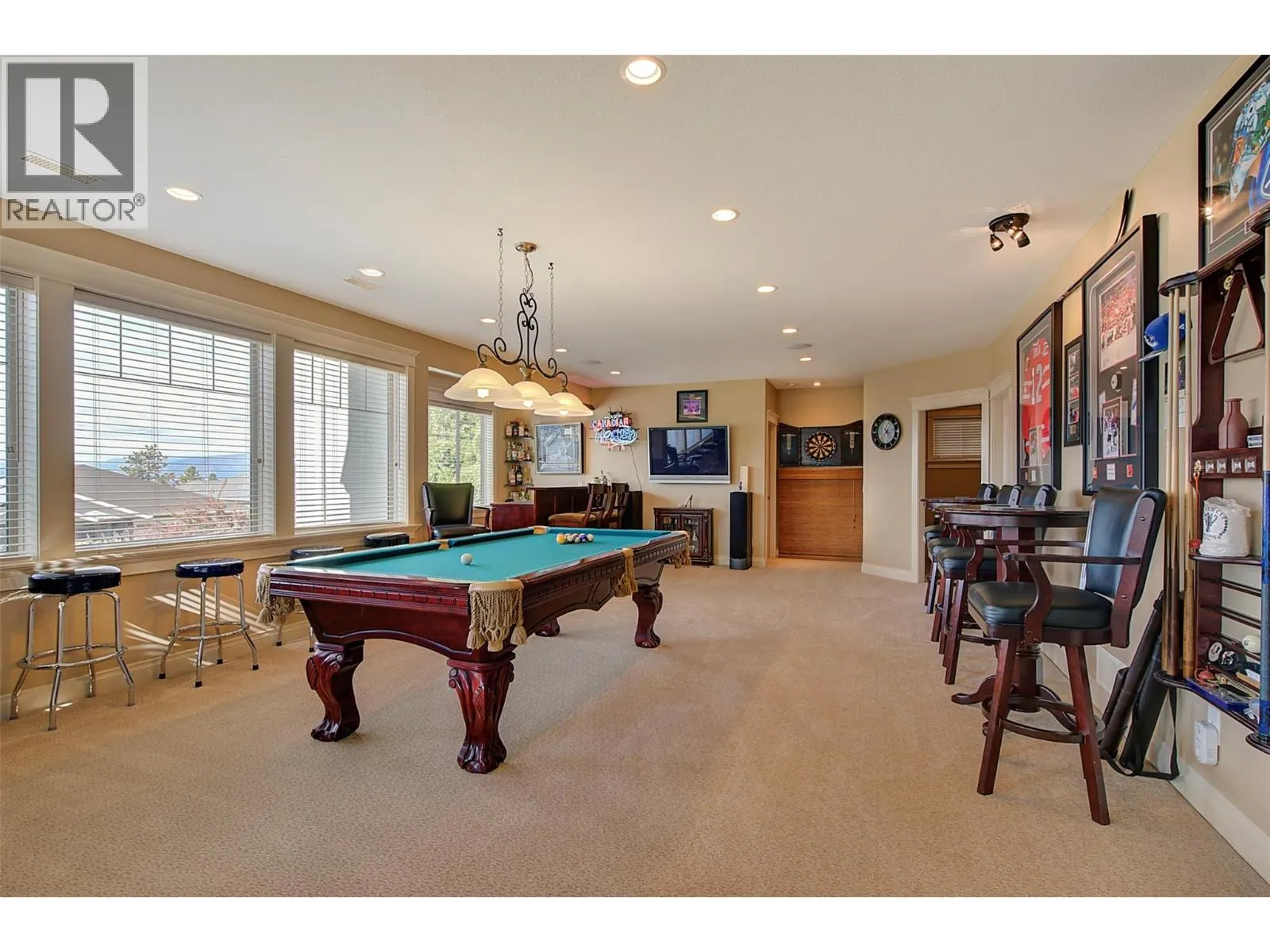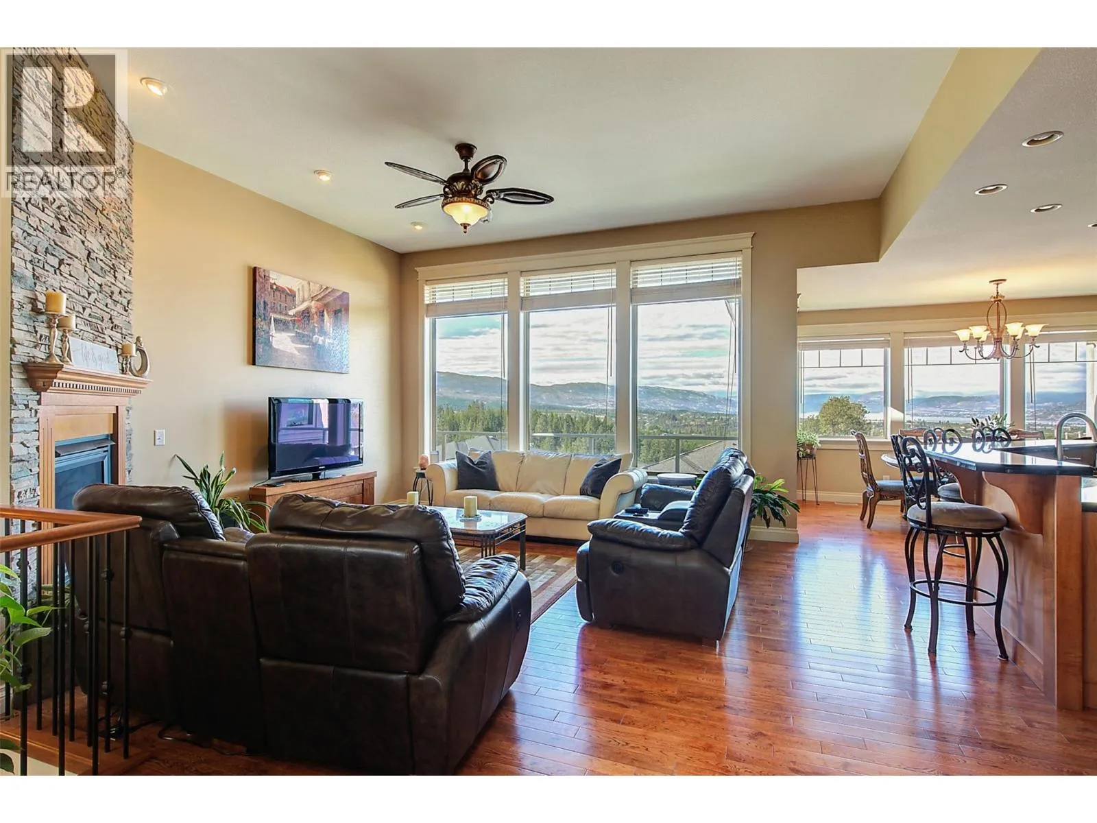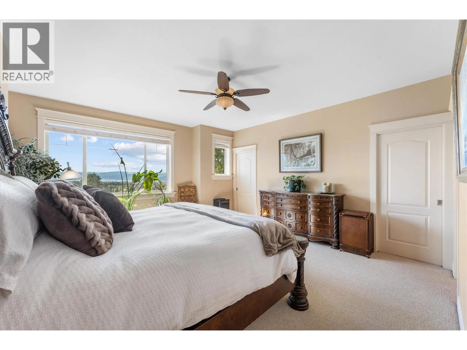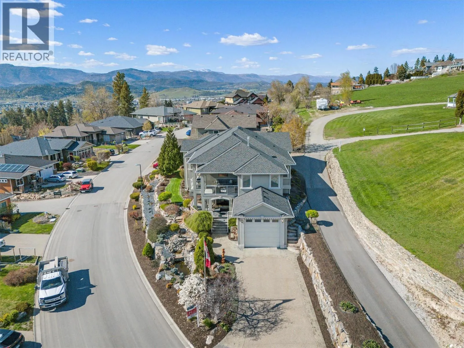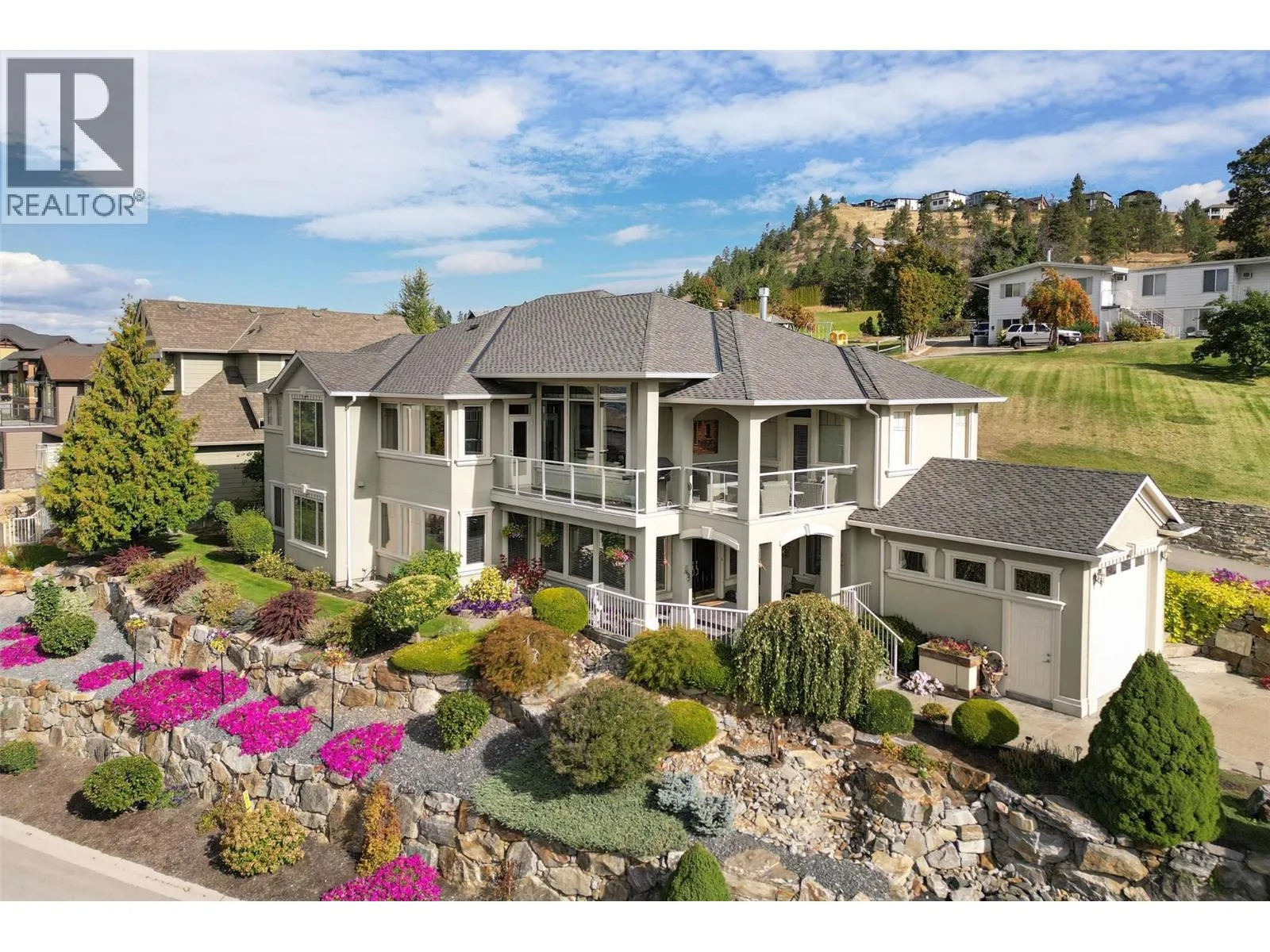 Best valued home in Black Mountain with triple garage and lake views! Now priced $170k below assessed value! This custom built home is situated on a meticulously landscaped corner lot with tiered rock walls its curb appeal is exceptional. This property boasts two distinct garages: an oversized double garage accessing the upper level, and a separate single garage leading to the lower level perfect for a potential suite conversion (with plans for a second kitchen). The expansive REC room featuring in-floor heating, a wet bar, and a versatile gym/media room, all with captivating city and lake views. This level also includes two guest bedrooms, a 4-piece bathroom, and abundant storage, ideal for entertaining or extended family. The upper level, bathed in natural light from large windows, showcases 11-foot ceilings and an open-concept living area framing stunning lake, mountain, and city vistas. The gourmet kitchen is a chef's dream, with a Wolf six-burner range, dual wall ovens, and pantry, flowing seamlessly into the living and dining areas. The wrap-around covered deck is perfect for year-round BBQs and sunsets. A flexible library space can be a formal dining room or home office. The expansive primary suite offers a spa-like ensuite with a soaker tub, steam shower, double vanity, and a dual-entry walk-in closet. A 2nd bdrm with a Murphy bed, a 2-piece powder room, and a full laundry room with garage access complete this level. With 2 driveways and 2 garages, there's abundant parking, including RV or boat space. (id:27476)