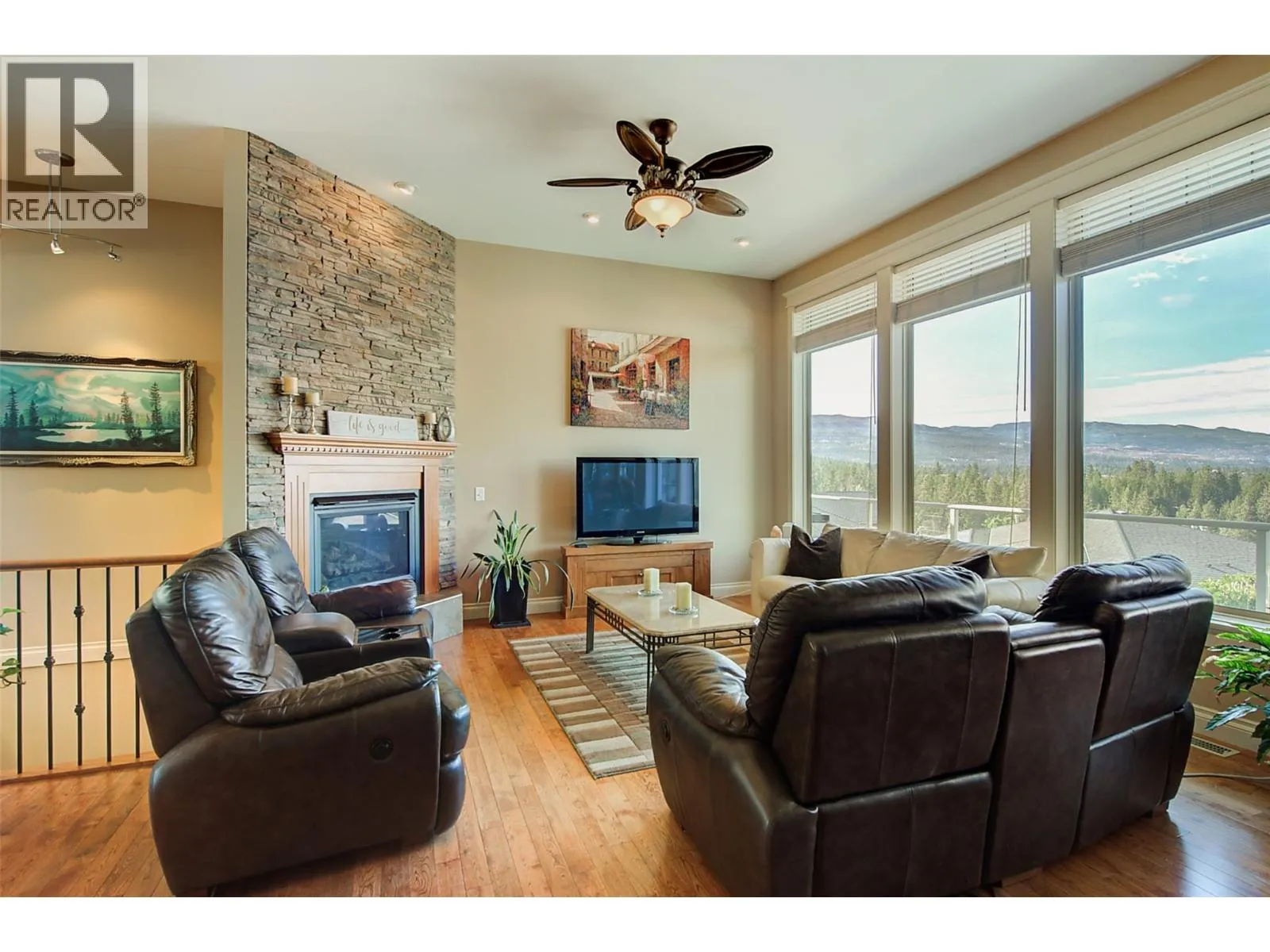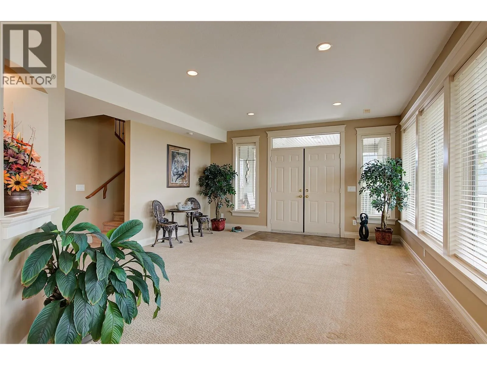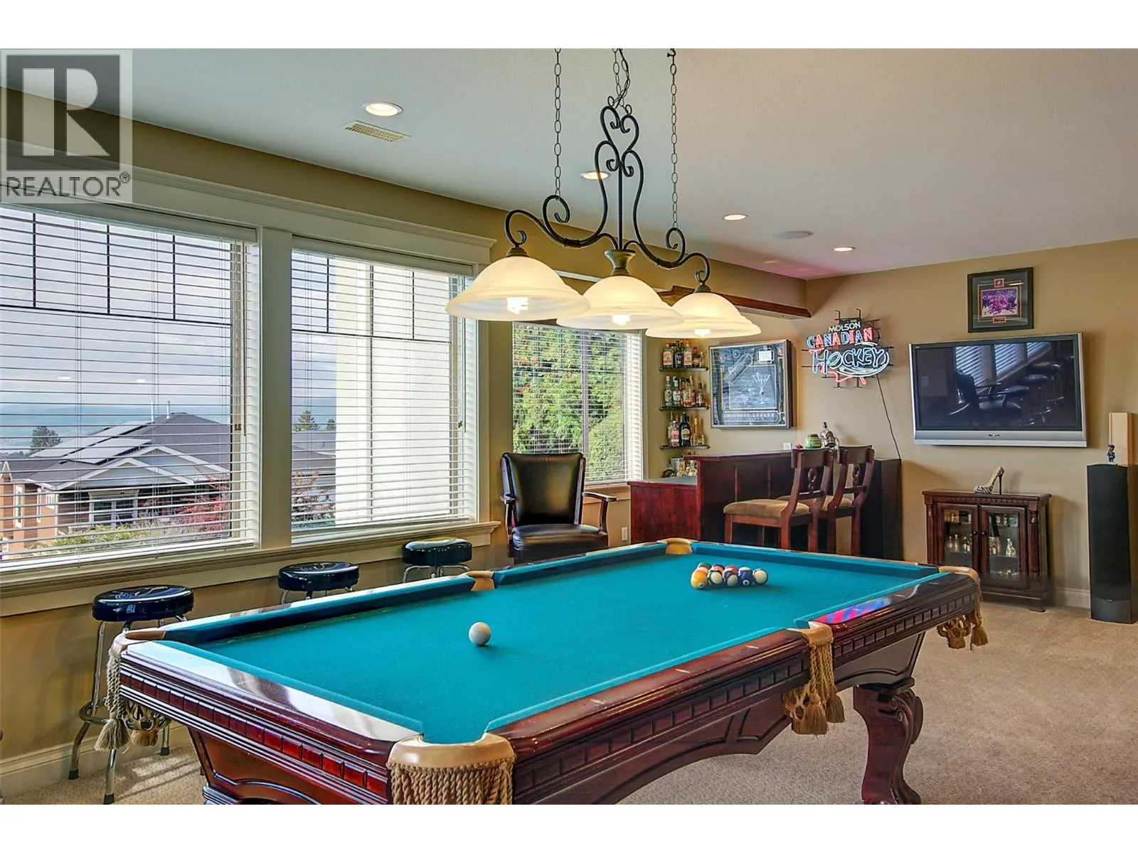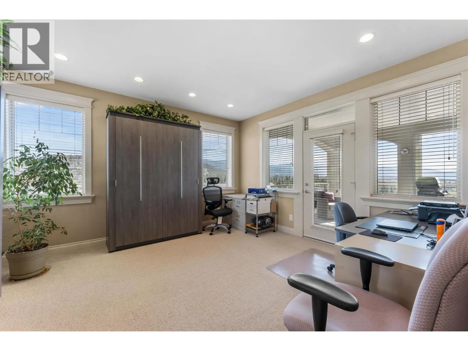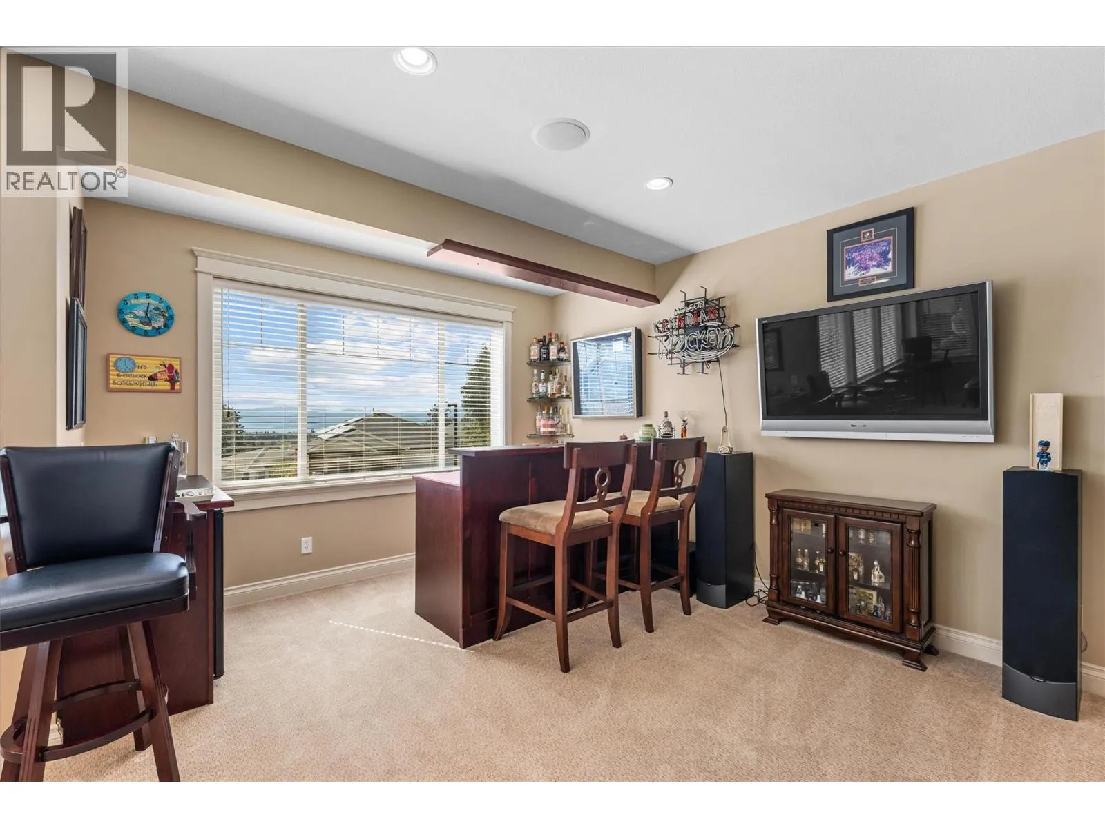 Best valued home in Black Mountain with triple garage and lake views! Now priced $170k below assessed value! This custom built home is situated on a meticulously landscaped corner lot with tiered rock walls its curb appeal is exceptional. This property boasts two distinct garages: an oversized double garage accessing the upper level, and a separate single garage leading to the lower level perfect for a potential suite conversion (with plans for a second kitchen). The expansive REC room featuring in-floor heating, a wet bar, and a versatile gym/media room, all with captivating city and lake views. This level also includes two guest bedrooms, a 4-piece bathroom, and abundant storage, ideal for entertaining or extended family. The upper level, bathed in natural light from large windows, showcases 11-foot ceilings and an open-concept living area framing stunning lake, mountain, and city vistas. The gourmet kitchen is a chef's dream, with a Wolf six-burner range, dual wall ovens, and pantry, flowing seamlessly into the living and dining areas. The wrap-around covered deck is perfect for year-round BBQs and sunsets. A flexible library space can be a formal dining room or home office. The expansive primary suite offers a spa-like ensuite with a soaker tub, steam shower, double vanity, and a dual-entry walk-in closet. A 2nd bdrm with a Murphy bed, a 2-piece powder room, and a full laundry room with garage access complete this level. With 2 driveways and 2 garages, there's abundant parking, including RV or boat space. (id:27476)