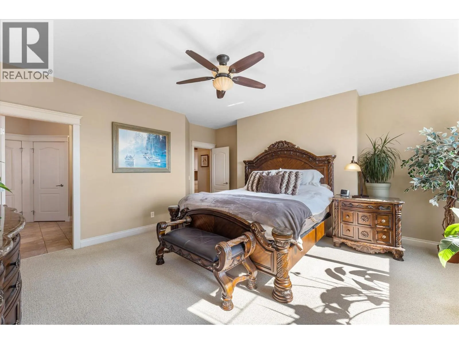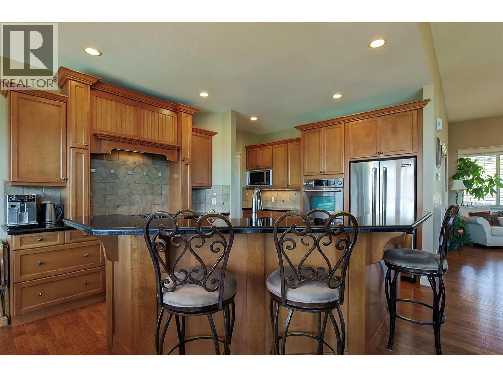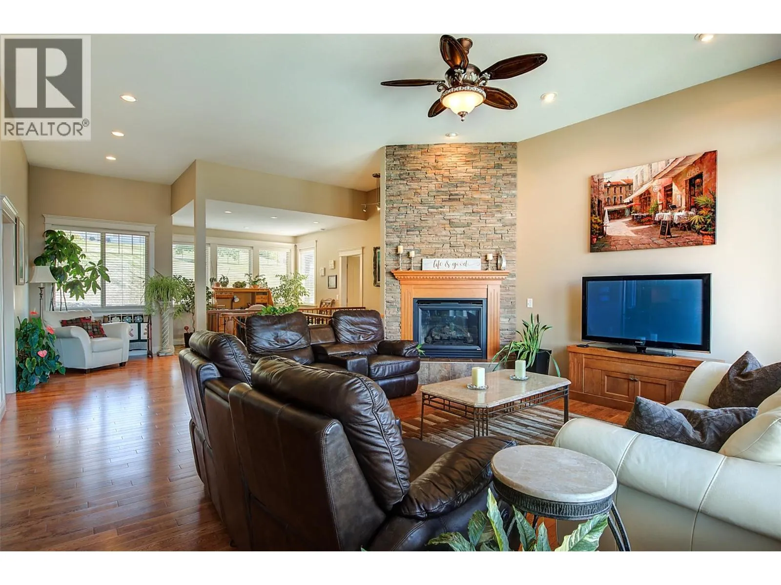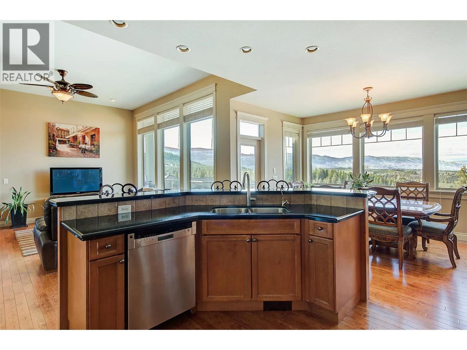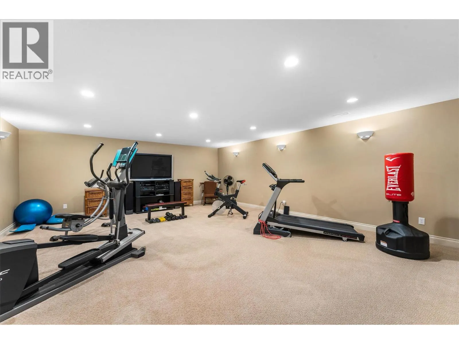 Best valued home in Black Mountain with triple garage and lake views! Now priced $170k below assessed value! This custom built home is situated on a meticulously landscaped corner lot with tiered rock walls its curb appeal is exceptional. This property boasts two distinct garages: an oversized double garage accessing the upper level, and a separate single garage leading to the lower level perfect for a potential suite conversion (with plans for a second kitchen). The expansive REC room featuring in-floor heating, a wet bar, and a versatile gym/media room, all with captivating city and lake views. This level also includes two guest bedrooms, a 4-piece bathroom, and abundant storage, ideal for entertaining or extended family. The upper level, bathed in natural light from large windows, showcases 11-foot ceilings and an open-concept living area framing stunning lake, mountain, and city vistas. The gourmet kitchen is a chef's dream, with a Wolf six-burner range, dual wall ovens, and pantry, flowing seamlessly into the living and dining areas. The wrap-around covered deck is perfect for year-round BBQs and sunsets. A flexible library space can be a formal dining room or home office. The expansive primary suite offers a spa-like ensuite with a soaker tub, steam shower, double vanity, and a dual-entry walk-in closet. A 2nd bdrm with a Murphy bed, a 2-piece powder room, and a full laundry room with garage access complete this level. With 2 driveways and 2 garages, there's abundant parking, including RV or boat space. (id:27476)