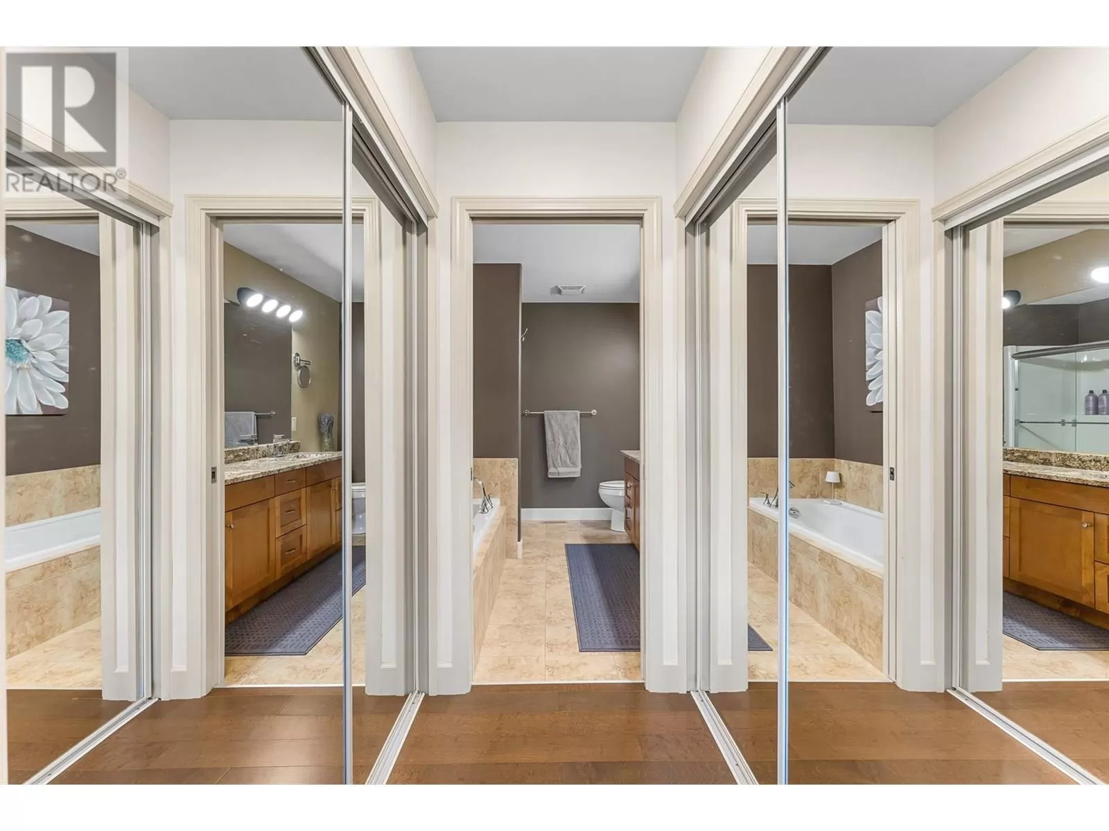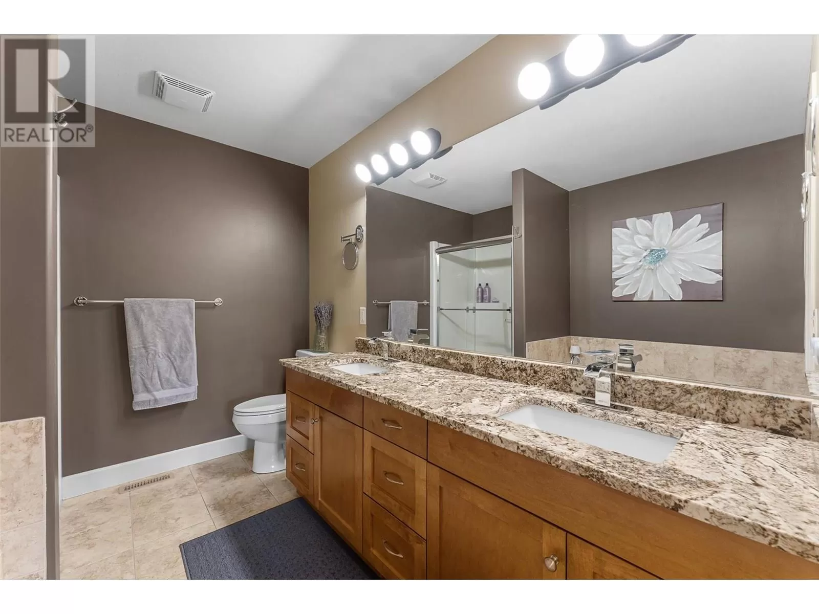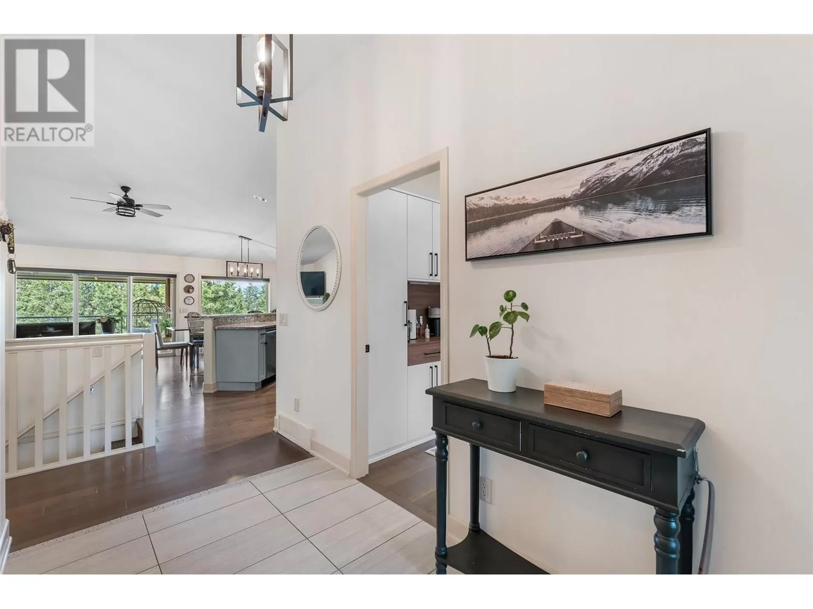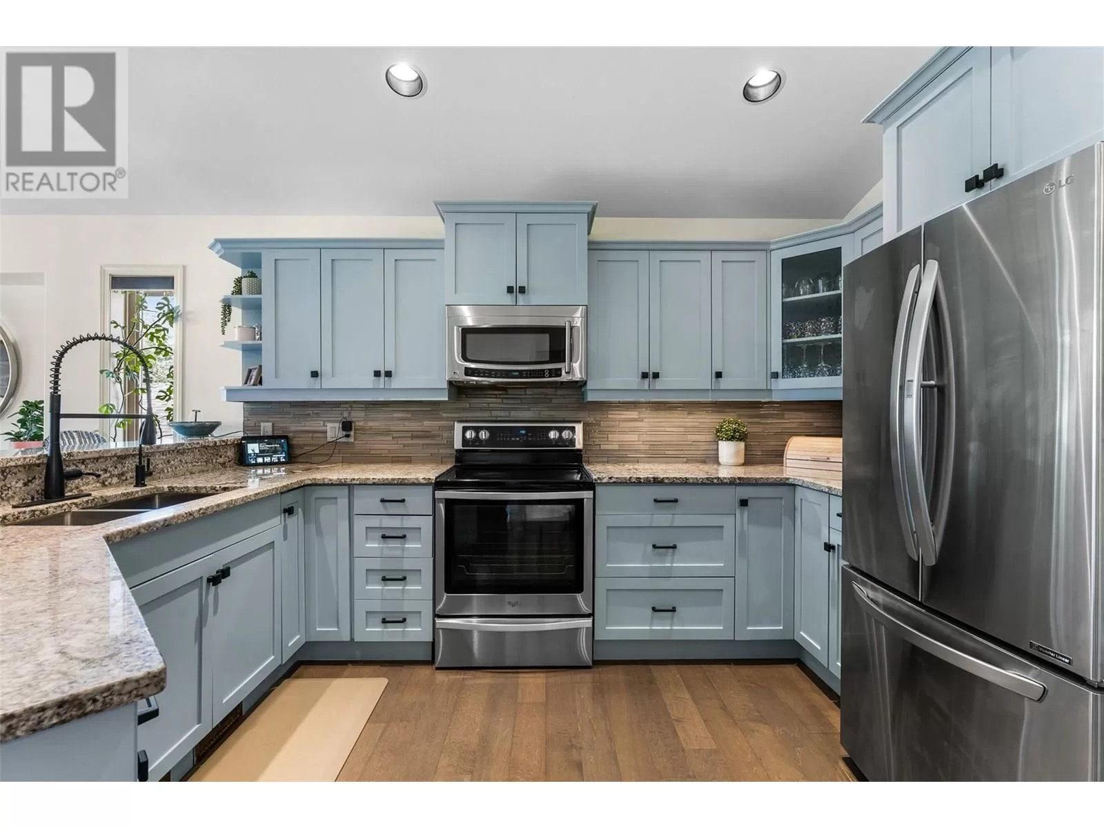 Stylishly updated and perfectly positioned on the 2nd and 13th green at Sunset Ranch, this golf-side villa offers the ideal blend of privacy, luxury, and low-maintenance living. Bathed in natural light, the main level showcases an open-concept layout with vaulted ceilings, warm toned hardwood floors, and a freshly updated kitchen with granite counters, stainless steel appliances, and soft blue cabinetry that adds a designer touch. Enjoy seamless indoor-outdoor living with a spacious dining area and covered balcony overlooking the lush greenway complete with electric privacy shades and tranquil golf course views. A custom-designed office by Taylor Living, elegant lighting upgrades, and a professionally installed putting green with ambient lighting. The main level includes a generous primary suite with walk-in closet and ensuite, while the lower level offers a large family room, guest bedrooms, and ample space for entertaining or extended family stays. Bonus opportunity: the neighbouring unit is also available an incredibly rare chance to purchase side-by-side homes for multi-generational living in one of Kelownaâs most scenic gated communities. (id:27476)
