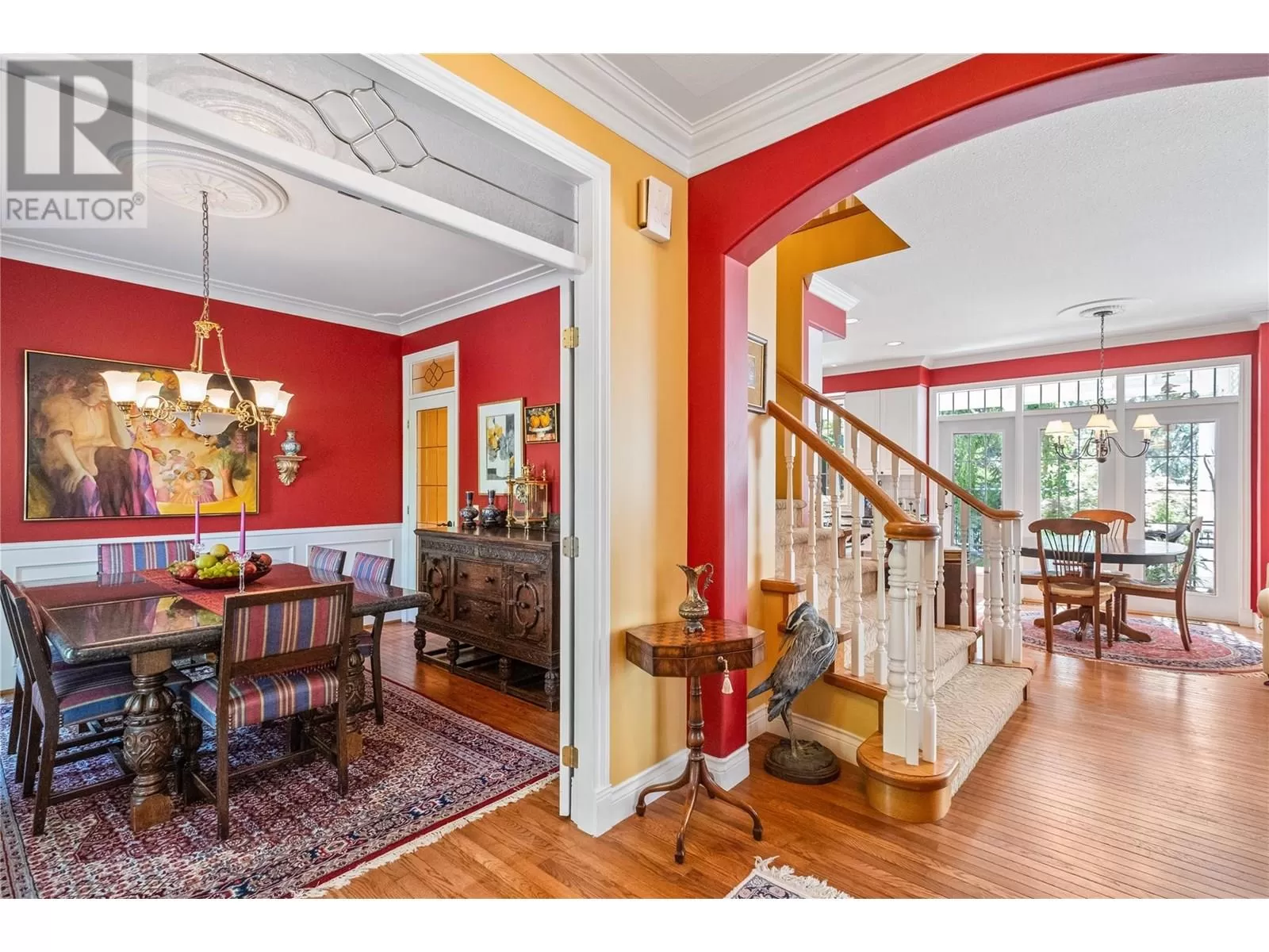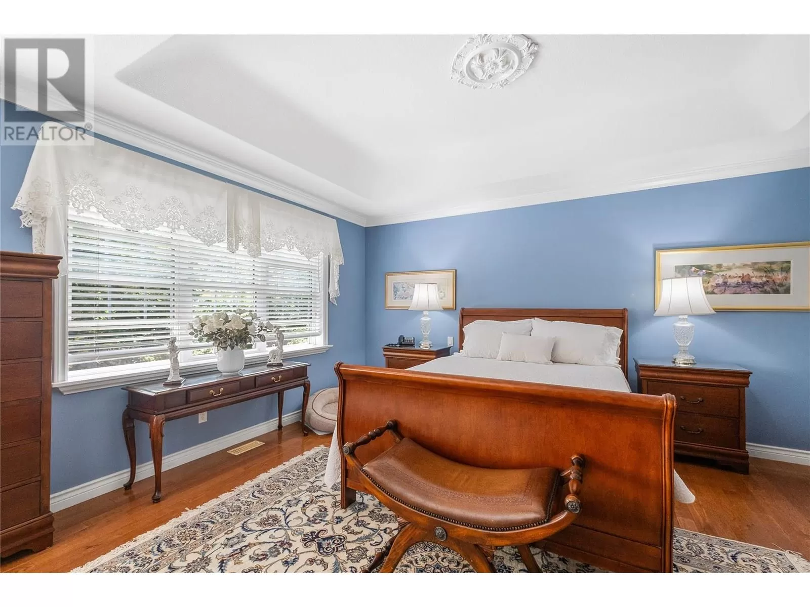 Welcome to 2087 Lillooet Court â""MUST SEE"" an elegant and impeccably maintained three-story French Provençal-style home, tucked away in a quiet cul-de-sac in the prestigious Dilworth Mountain community. Offering over 3,800 sq. ft. of bright, refined living space, this 5-bedroom, 4-bath home features four bedrooms and two full bathrooms on the upper level, including a luxurious master suite with breathtaking mountain views. The main level boasts gorgeous hardwood floors, a spacious living room, a cozy family room with a gas fireplace, and a formal dining area ideal for entertaining. The chef-inspired kitchen includes granite countertops, custom cabinetry, premium appliances, and a generous-sized islandâperfect for everyday living and hosting. The walk-out lower level adds versatile space with a large family room, additional bedroom and bathroom, and suite potentialâideal for guests or multigenerational living Outside, enjoy beautifully landscaped, and a backyard complete with calming gardens, peaceful waterfalls & pond, and just off the kitchen a glass-covered patio with a gas BBQ hookupâyour private oasis for relaxation and entertaining. Additional features include a welcoming wide and long driveway offering ample parking, multi-zone irrigation system, Located just minutes from downtown Kelowna, UBCO, top schools, golf courses, and renowned wineries, this exceptional property blends timeless style, comfort, and convenience. (id:27476)